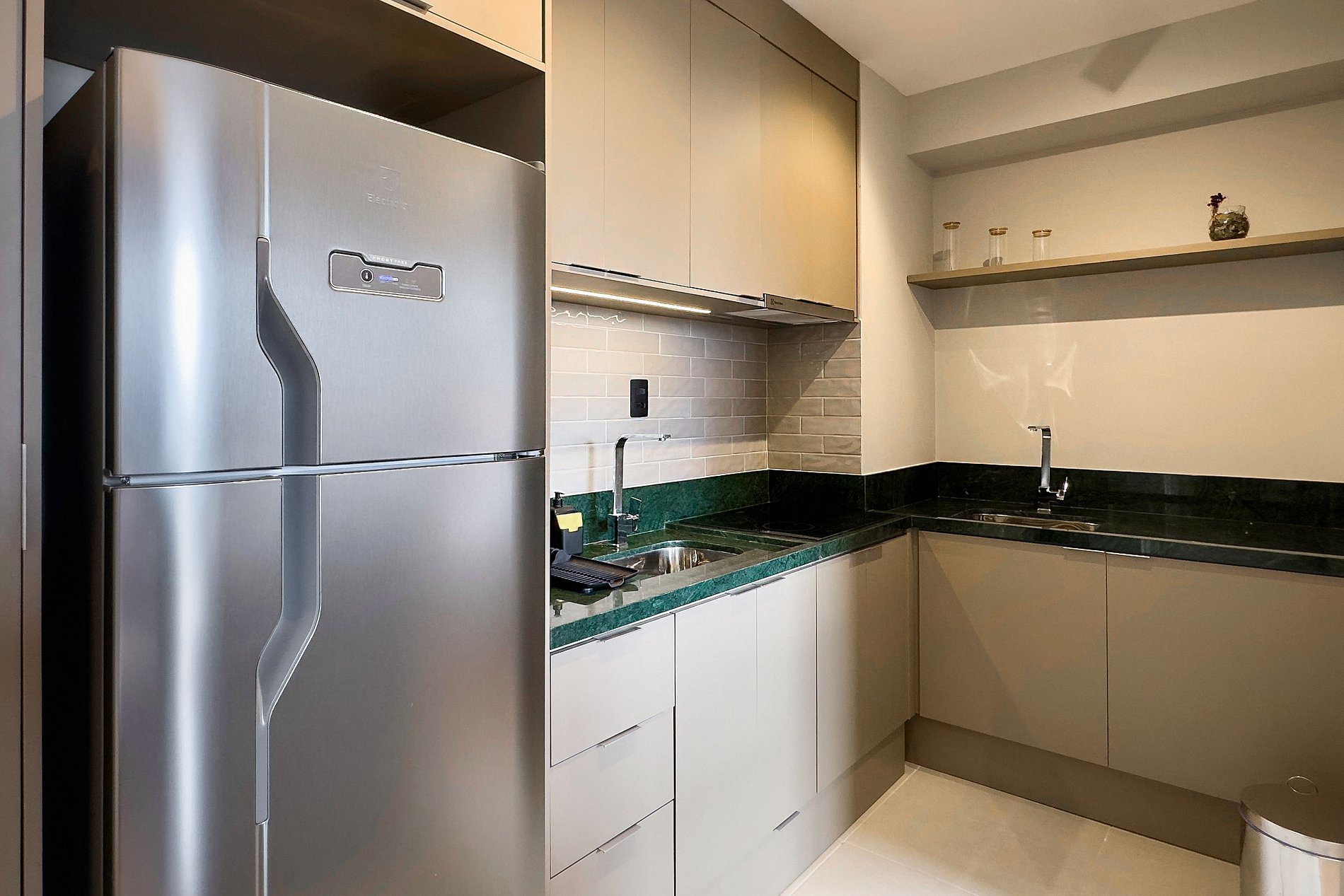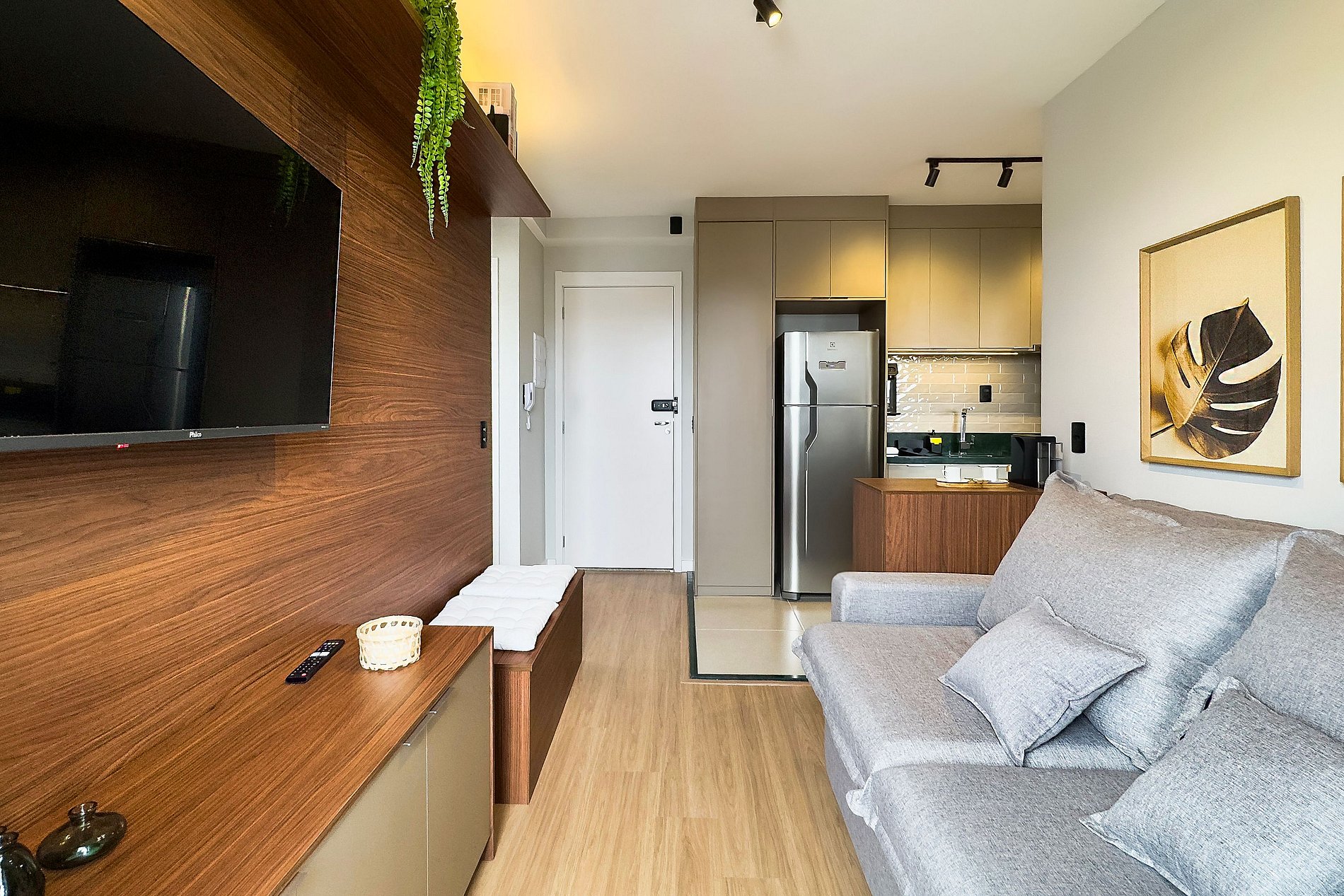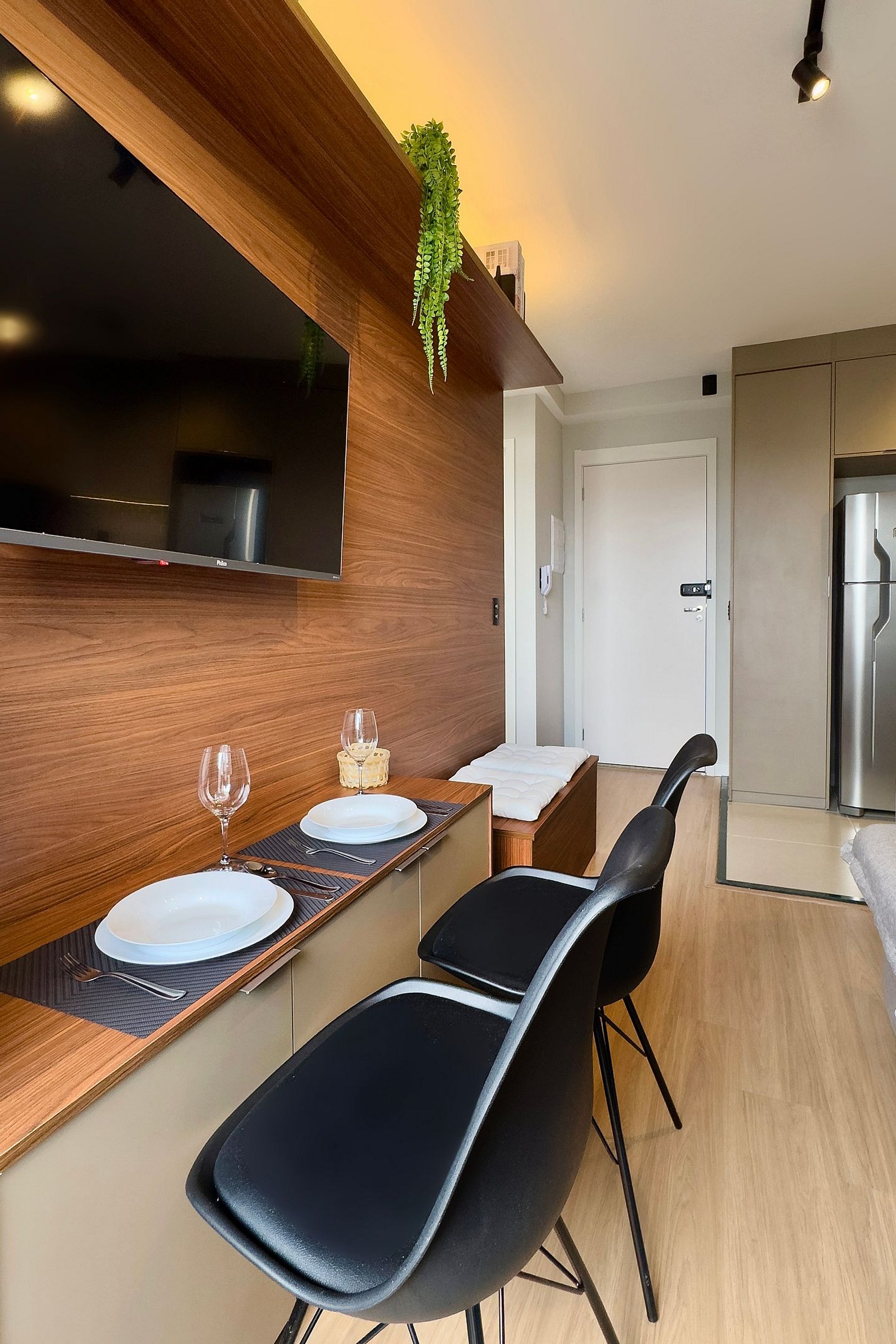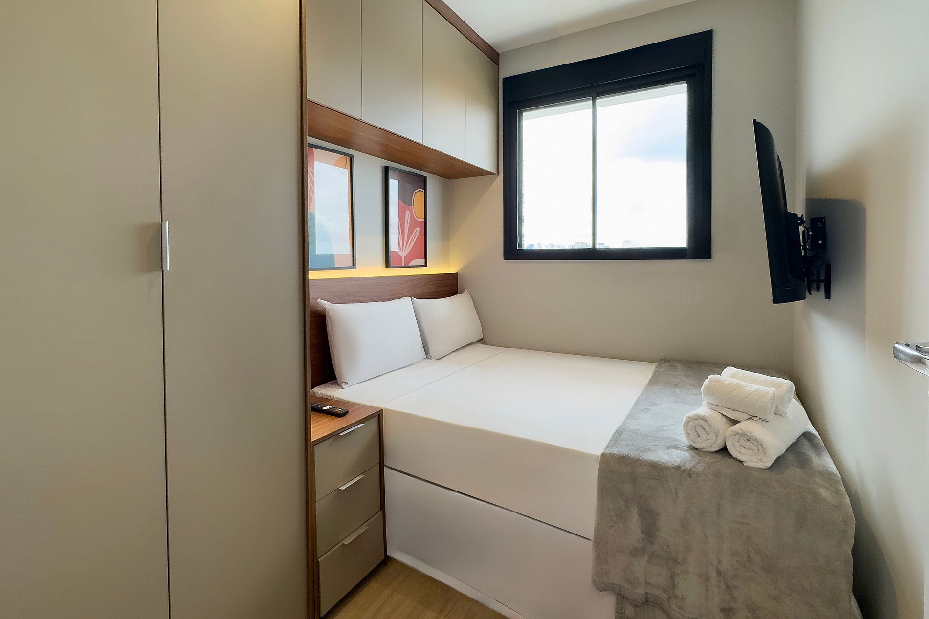 O apartamento possui 1 cama de casal padrão (1,38x1,88) no quarto um, outra cama de casal no quarto dois e um sofá cama na sala para atender até um quinto/sexto hóspede. Cozinha completa com geladeira, freezer, micro-ondas, fogão de (4 bocas), Nespresso, bancada para home office, guarda-roupa, secador de cabelo, ferro de passar, TV e banheiro com ótimo chuveiro (água quente e fria). Será fornecido um jogo de enxoval (lençóis, travesseiros, fronhas e toalhas de banho e rosto) por hóspede. Não há trocas durante a permanência. Outras observações Ao redor do endereço Alameda dos Nhambiquaras, 1990 em Moema, você encontrará uma variedade de opções para tornar sua estadia mais agradável.