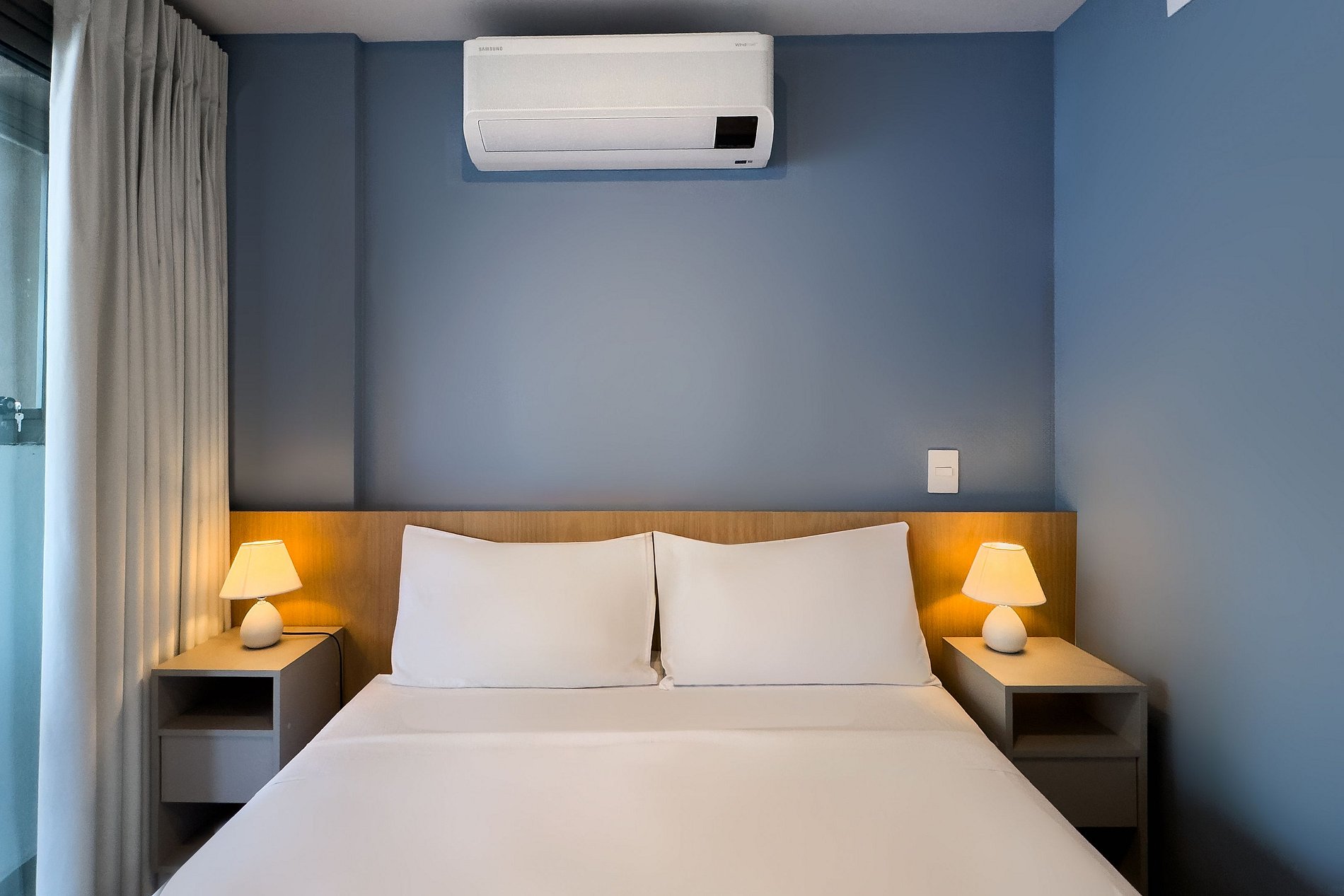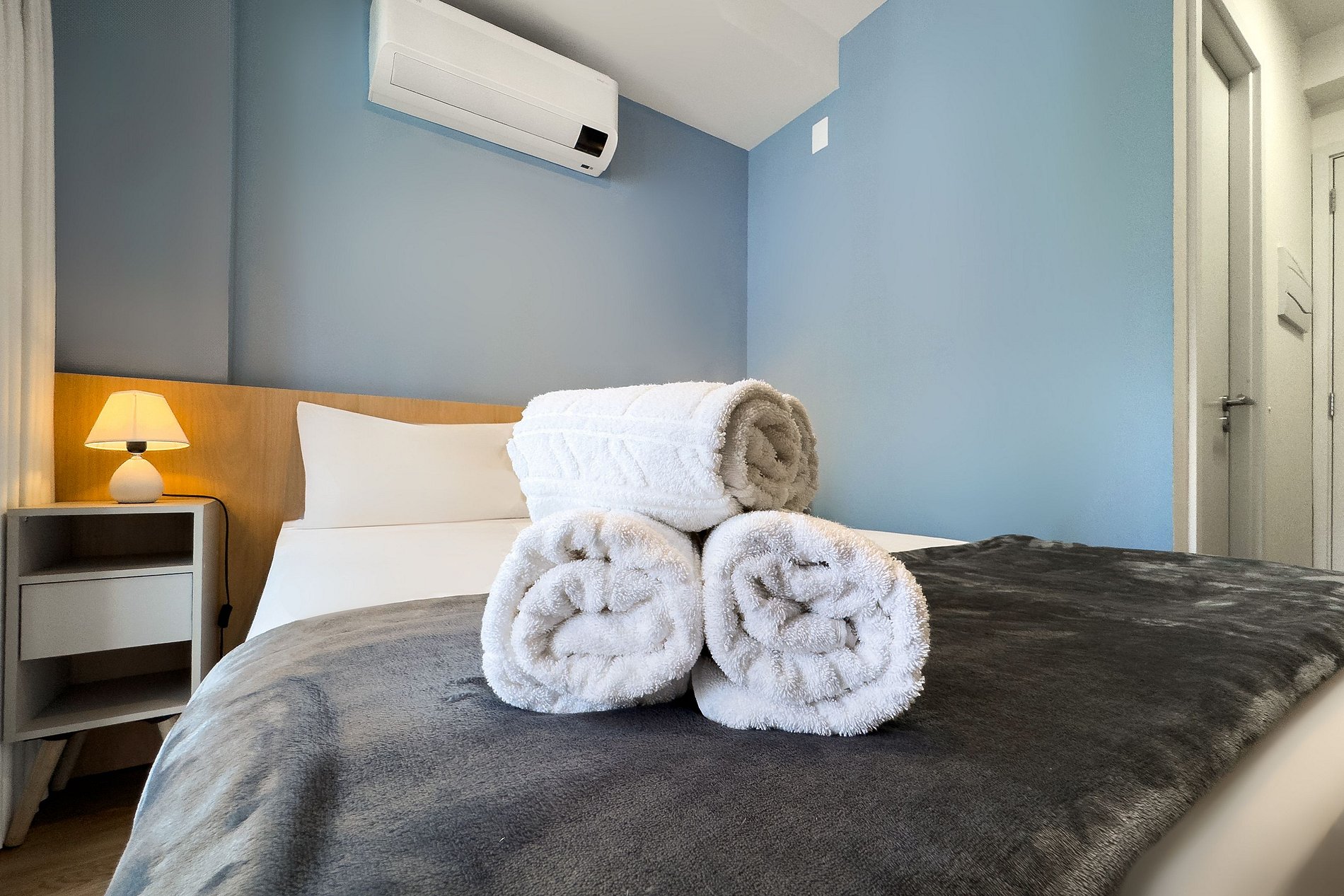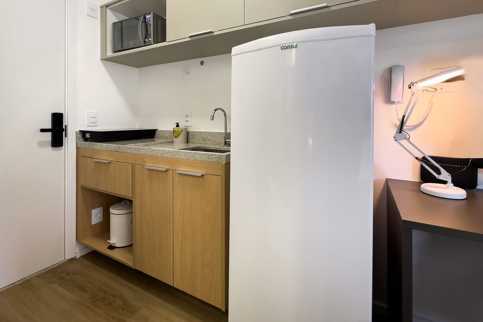 O apartamento possui 1 cama de casal (1,38x1,88) Cozinha completa com geladeira, freezer, micro-ondas, fogão de (2 bocas), Nespresso, bancada para home office, guarda-roupa, secador de cabelo, ferro de passar, TV e banheiro com ótimo chuveiro (água quente e fria). Será fornecido um jogo de enxoval (lençóis, travesseiros, fronhas e toalhas de banho e rosto) por hóspede. Não há trocas durante a permanência.