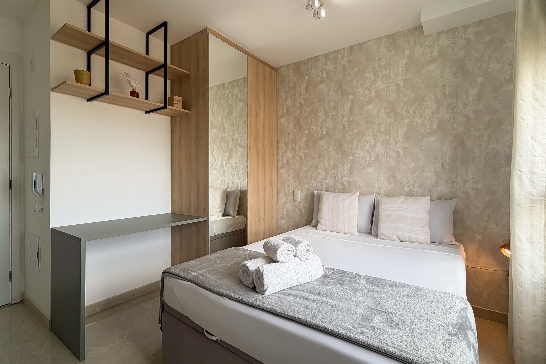 O apartamento possui 1 cama Queen (1,58x1,98), e ar-condicionado. Cozinha completa com frigobar , freezer, micro-ondas, fogão de indução, jogo de talheres, cafeteira nespresso para home office , filtro de agua potável, guarda-roupa, secador de cabelo, ferro de passar ,mesa, 2 Cadeira Interna, Cortina Black out TV , banheiro com ótimo chuveiro (água quente e fria). Será fornecido um jogo de enxoval (lençóis, travesseiros, fronhas e toalhas de banho) por hóspede. Outras observações Ao redor do endereço R. Iperoig você encontrará uma variedade de opções para tornar sua estadia cada vez mais agradável;