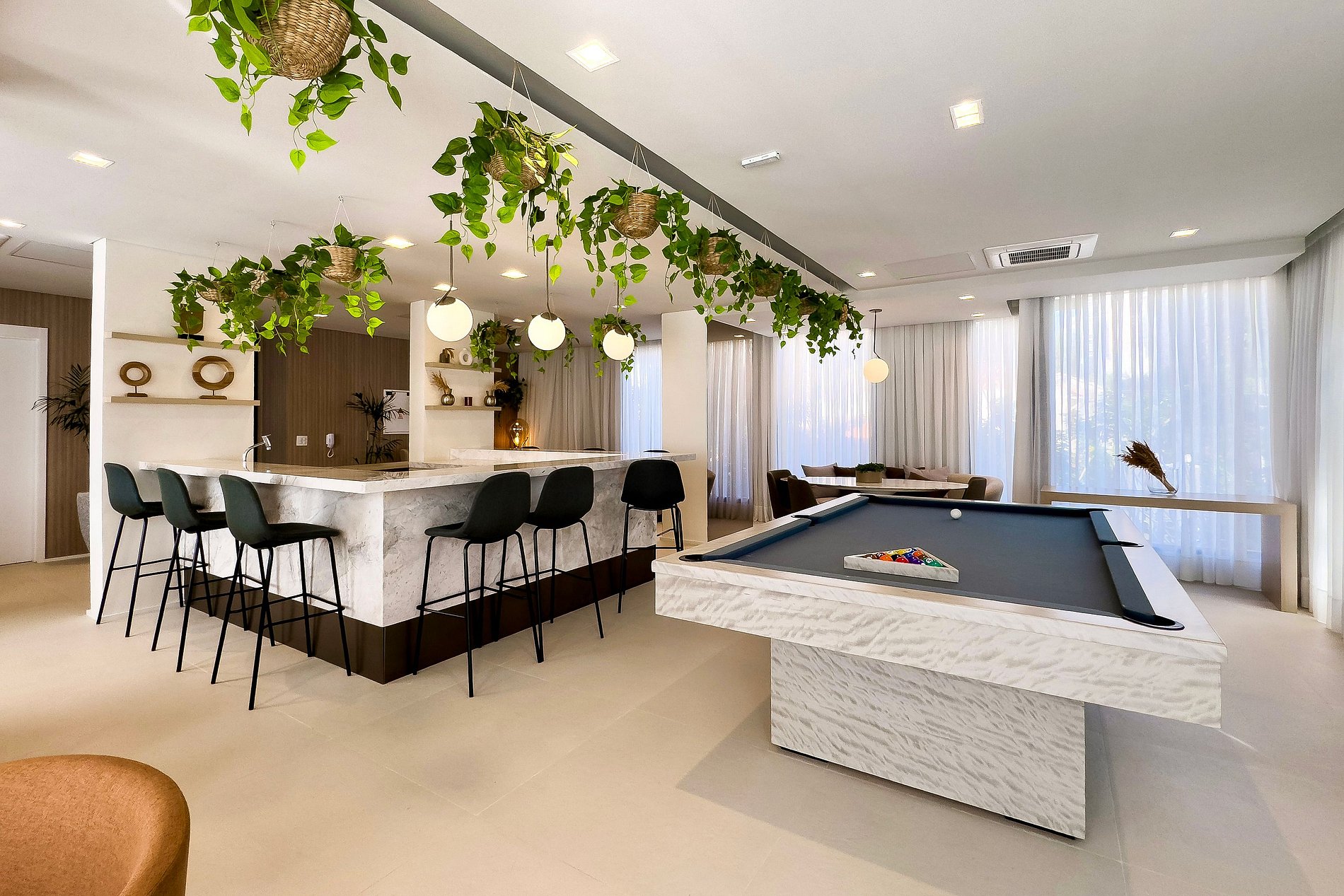 O condomínio oferece , academia, coworking, lavanderia e mercadinho (Market4u).