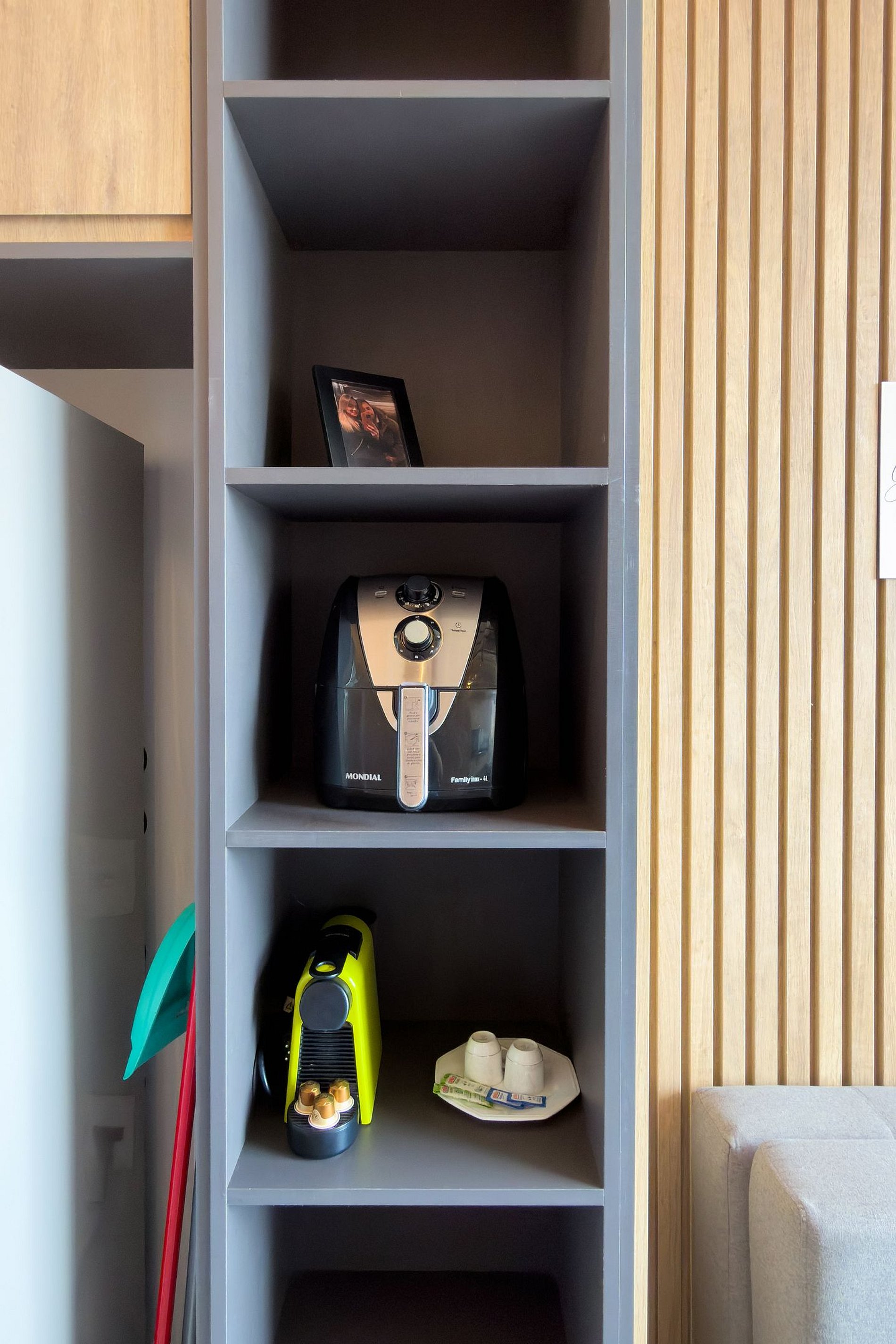 • Cozinha completa com frigobar/freezer, micro-ondas, fogão por indução, cafeteira Nespresso, talheres, utensílios e filtro de água potável