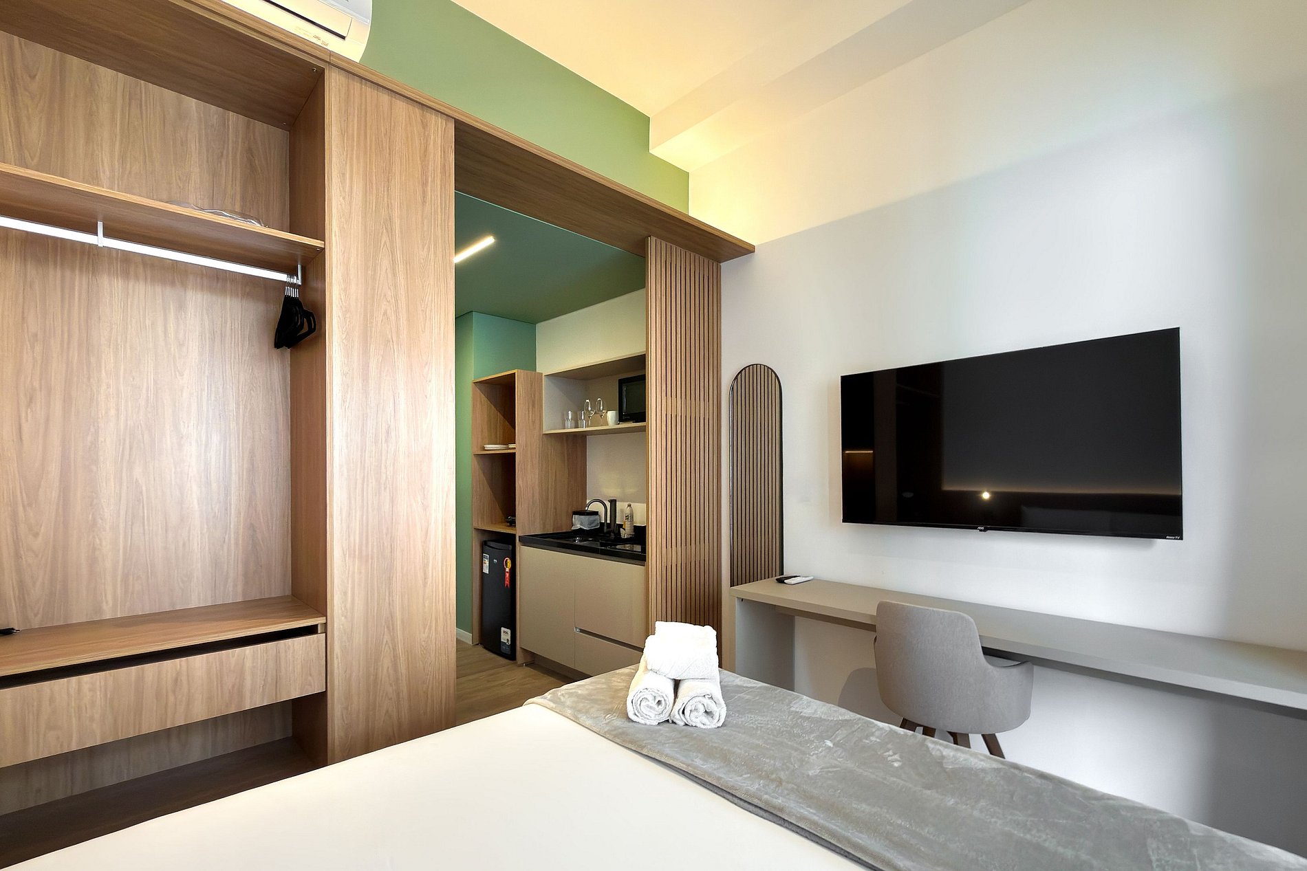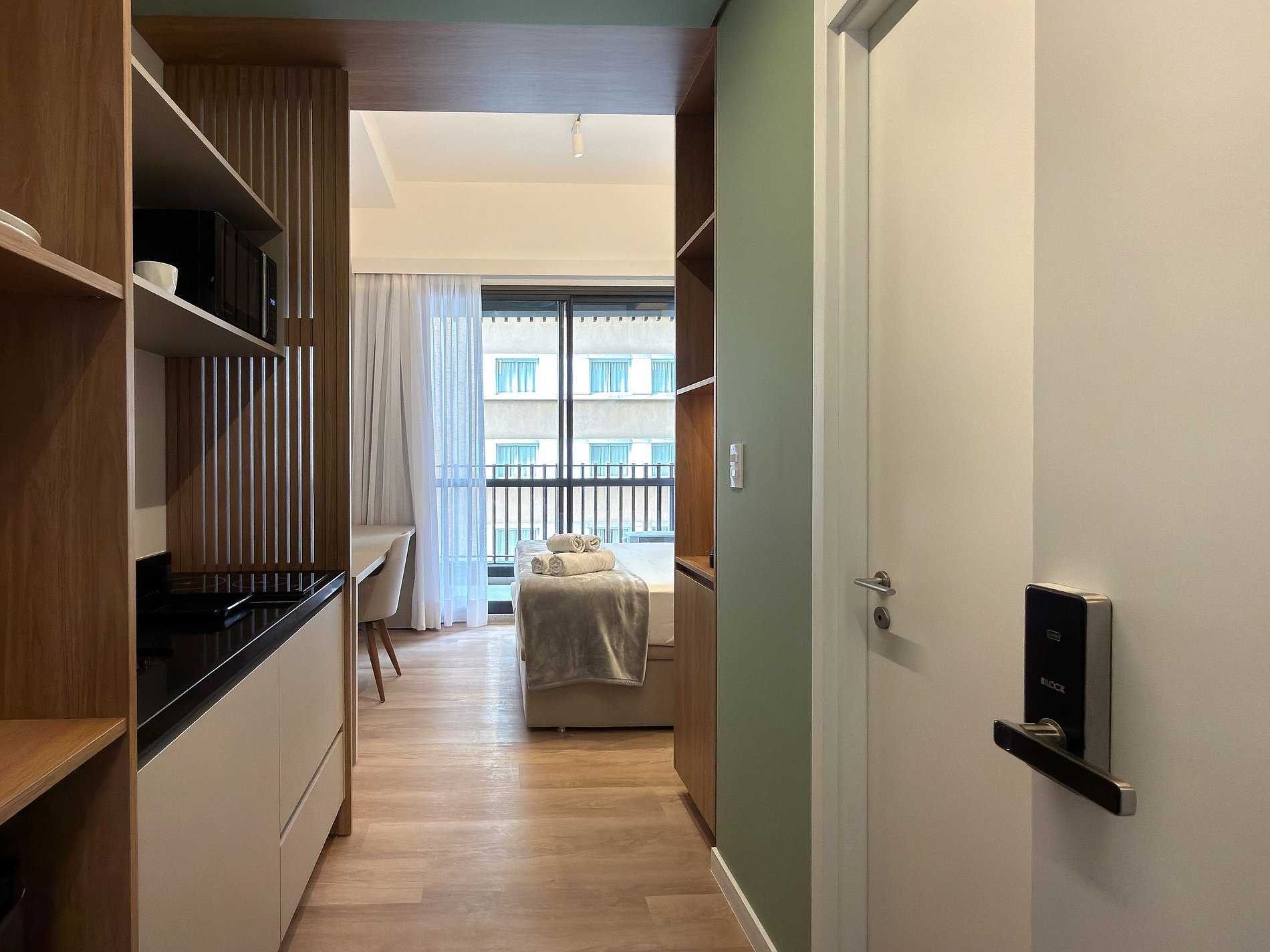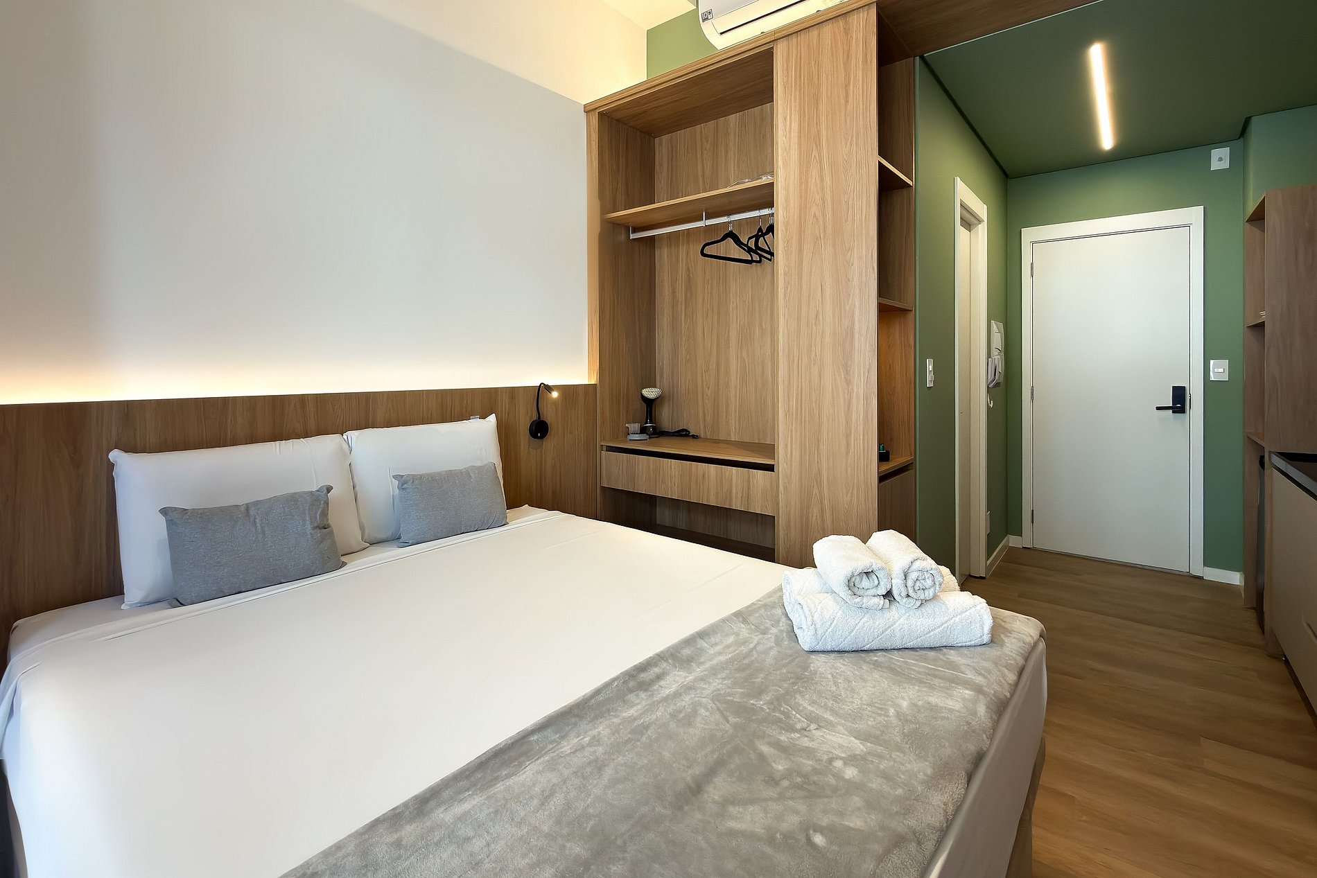 O Edifício V3rso Jardins, localizado no coração dos Jardins, na Alameda Santos, é o mais novo conceito de luxo e conectividade. Esse Studio moderno é ideal para acomodar até 2 pessoas. Ele foi projetado para oferecer conforto e funcionalidade em sua estadia em São Paulo.