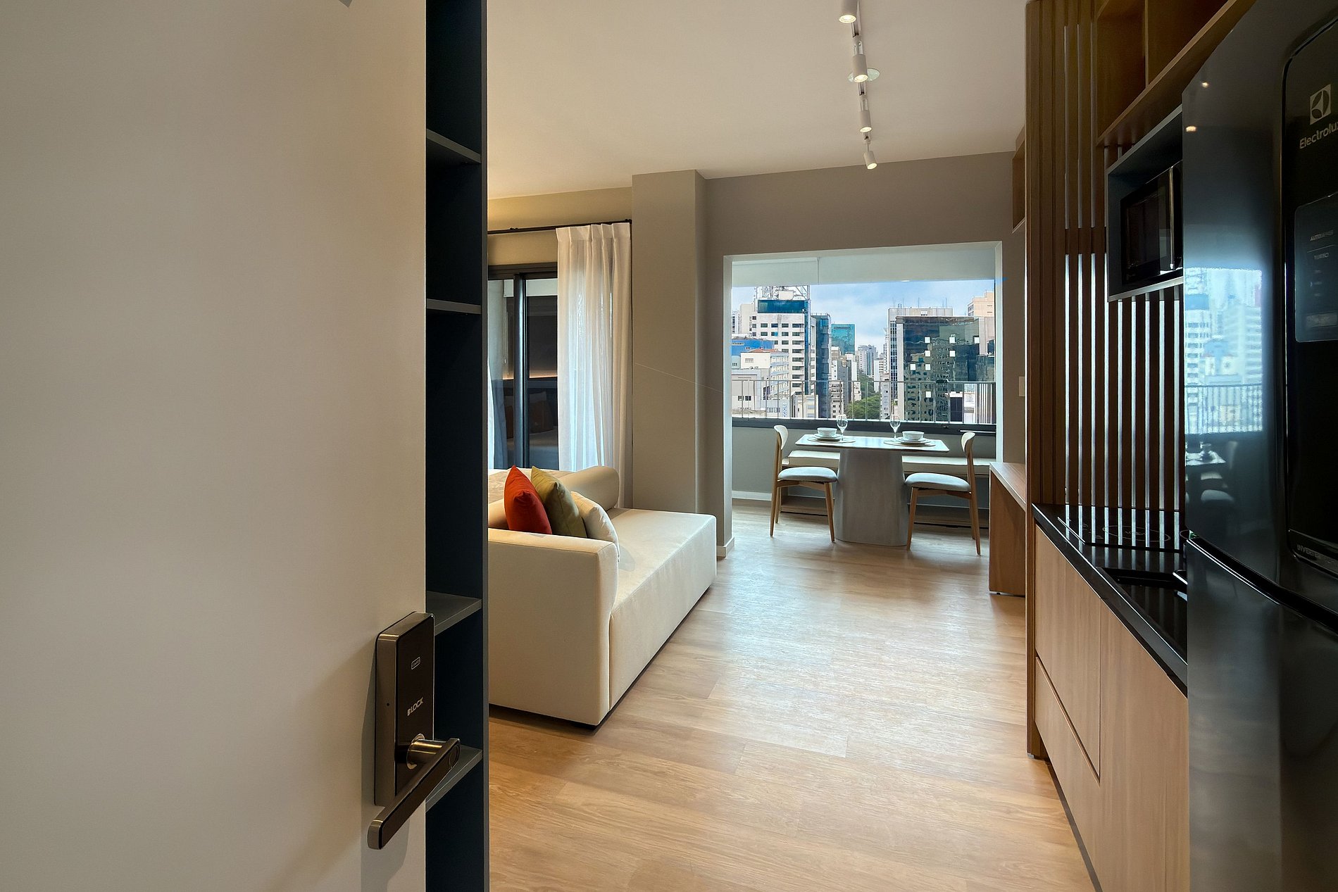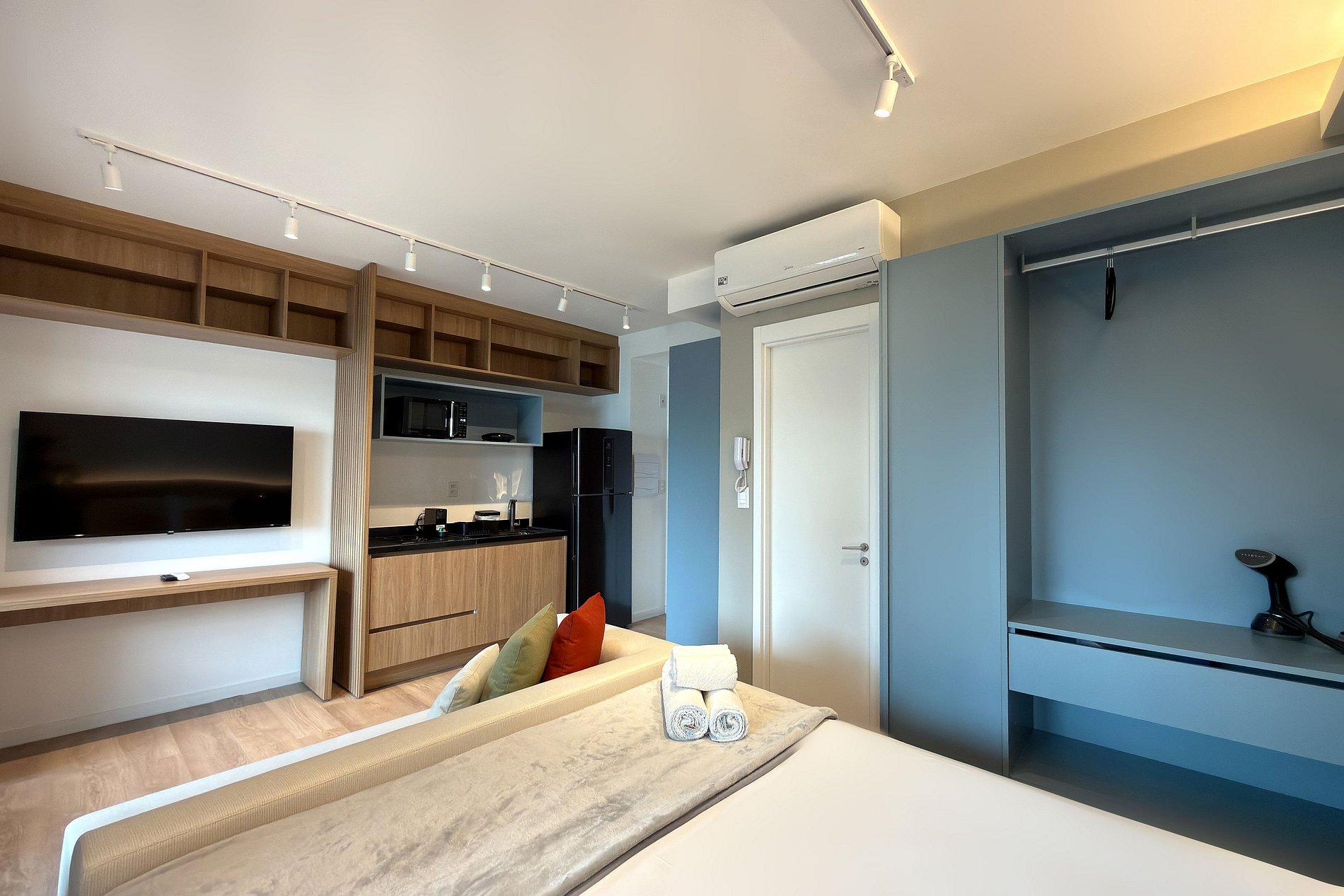 O Edifício V3rso Jardins, localizado no coração dos Jardins, na Alameda Santos, é o mais novo conceito de luxo e conectividade. Esse Studio moderno é ideal para acomodar até 2 pessoas. Ele foi projetado para oferecer conforto e funcionalidade em sua estadia em São Paulo.