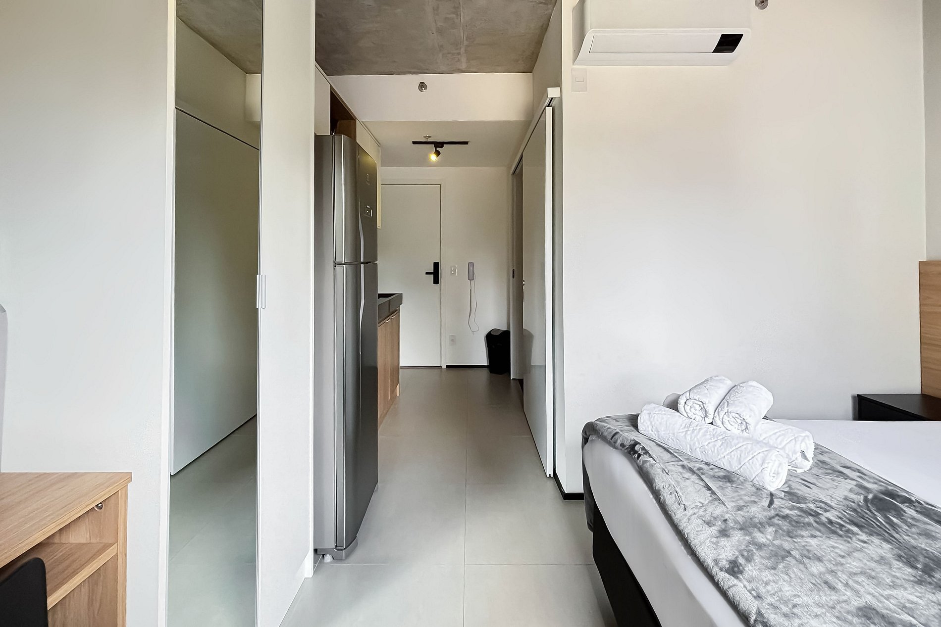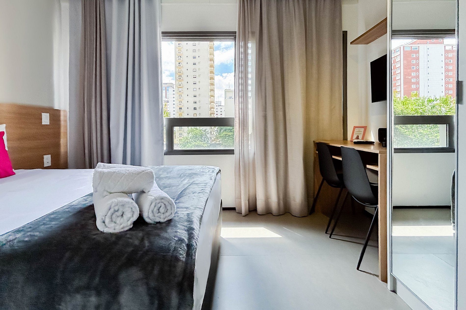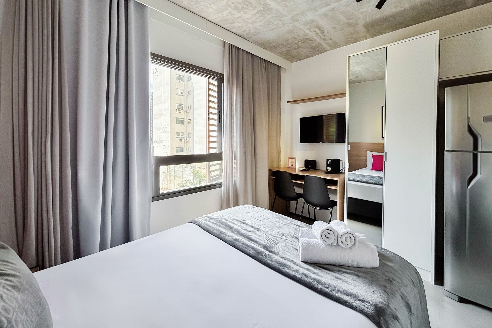 O apartamento conta com uma confortável cama de casal (1,38 x 1,88), ar-condicionado e uma cozinha completa equipada com geladeira, freezer, micro-ondas, fogão de indução ,jogo de talheres e cafeteira Nespresso. Ideal para home office, o espaço dispõe de guarda-roupa, mesa de trabalho com dois banco. Também estão disponíveis secador de cabelo, ferro de passar, TV e um banheiro com ótimo chuveiro (com água quente e fria). Será fornecido um jogo de enxoval por hóspede, incluindo lençóis, travesseiros, fronhas e toalhas de banho. Outras Observações Localizado na Rua Augusta 2854, o apartamento está cercado por uma ampla variedade de opções que tornam a estadia ainda mais agradável: