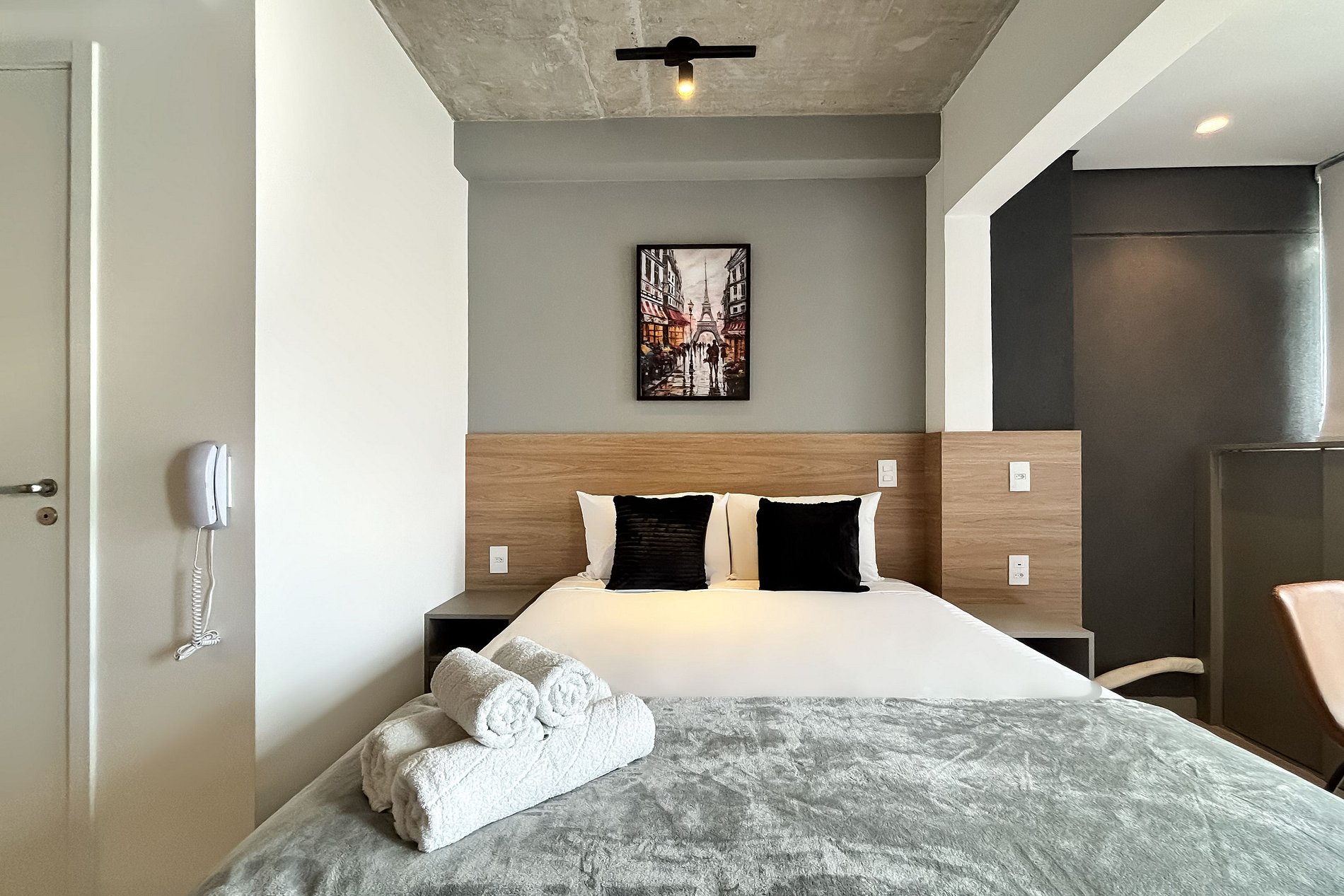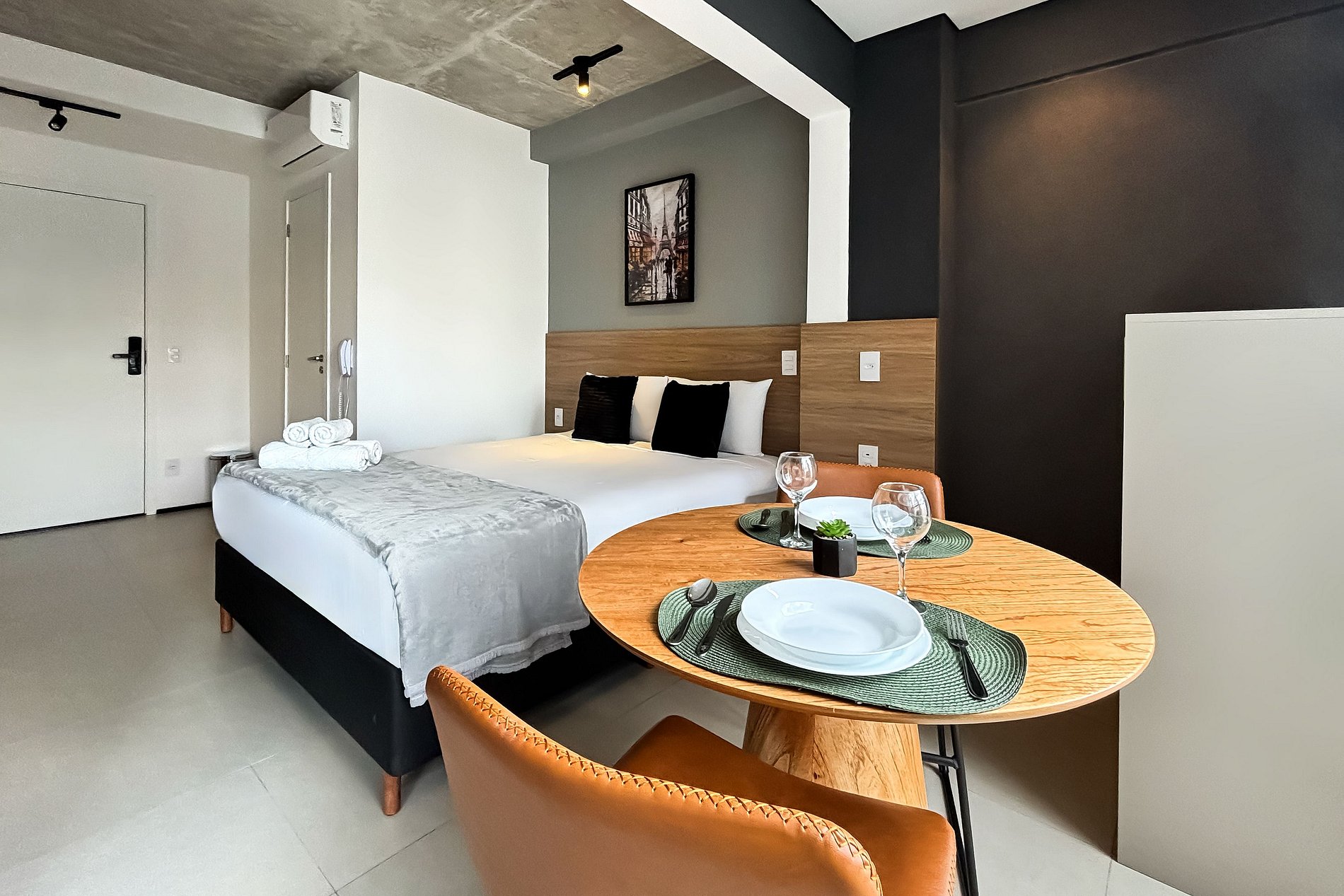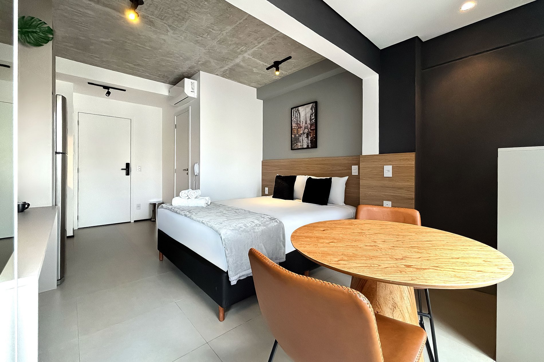 O apartamento conta com uma confortável cama queen, ar-condicionado e uma cozinha completa equipada com geladeira, freezer, micro-ondas, fogão de indução ,jogo de talheres e cafeteira Nespresso. Ideal para home office, o espaço dispõe de guarda-roupa, mesa de trabalho com dois banco. Também estão disponíveis secador de cabelo, ferro de passar, TV e um banheiro com ótimo chuveiro (com água quente e fria). Será fornecido um jogo de enxoval por hóspede, incluindo lençóis, travesseiros, fronhas e toalhas de banho. Outras Observações Localizado na Rua Augusta 2854, o apartamento está cercado por uma ampla variedade de opções que tornam a estadia ainda mais agradável: