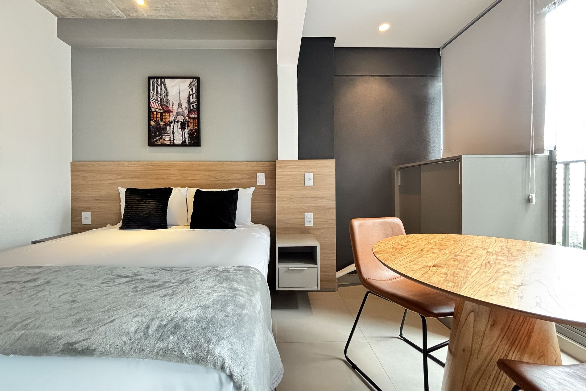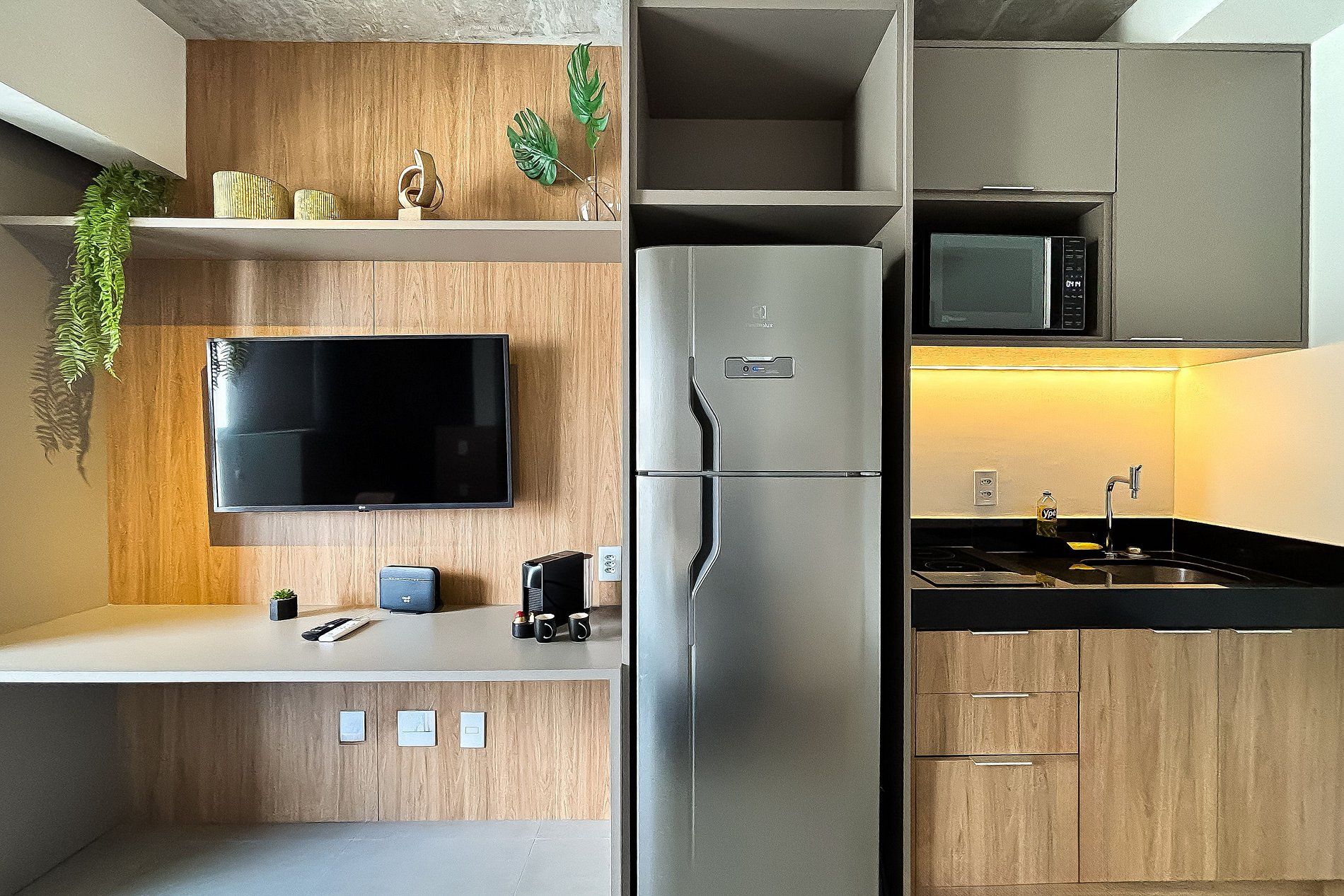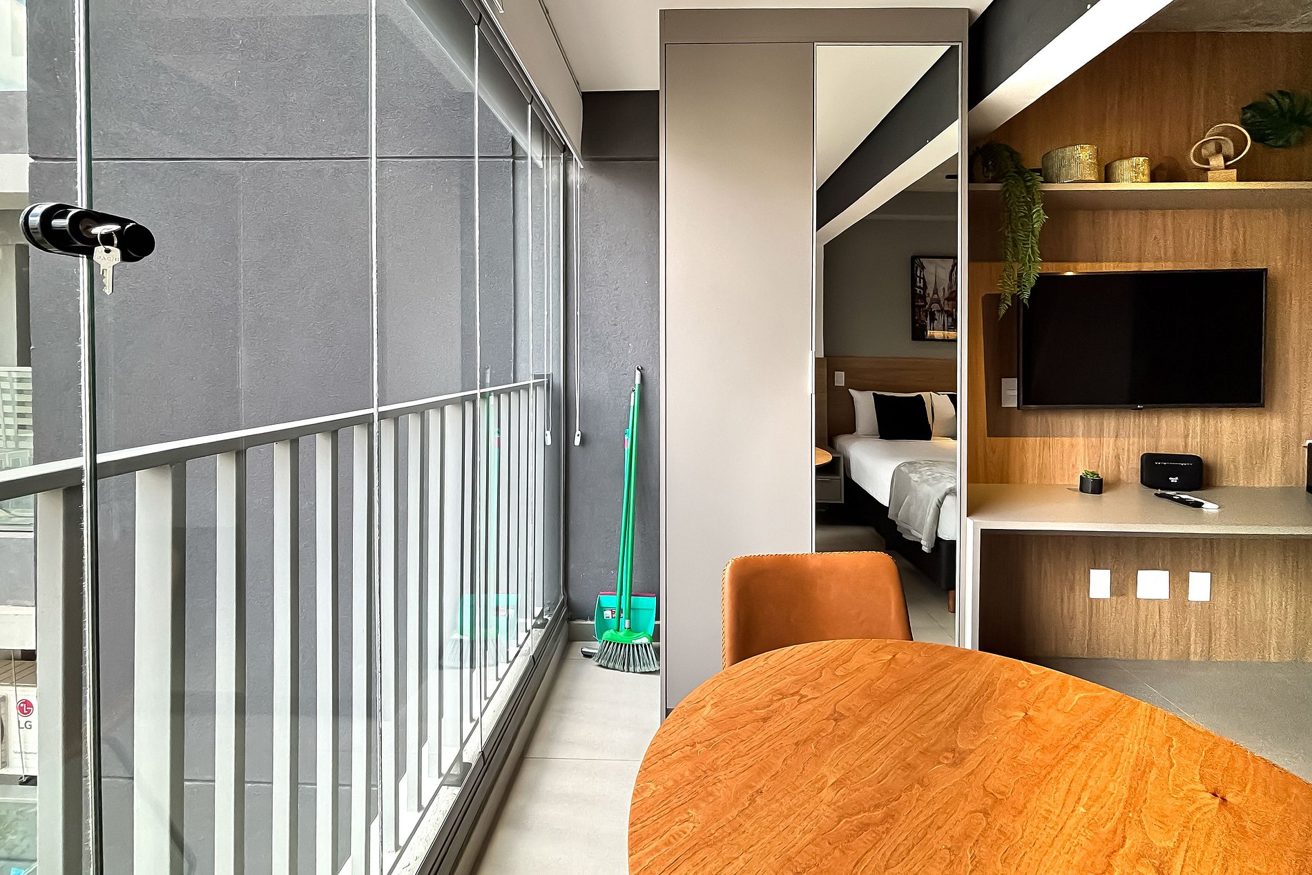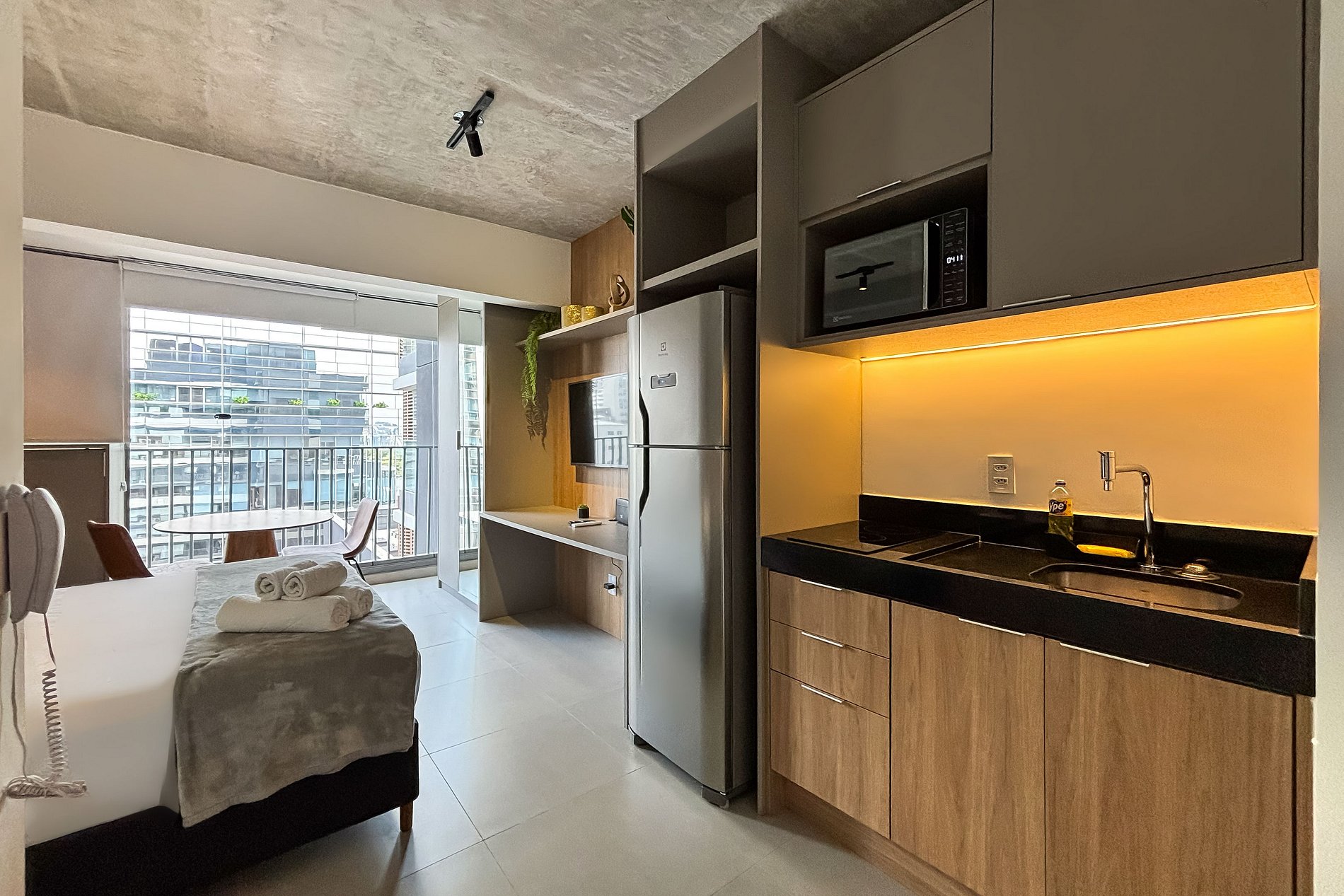 O apartamento conta com uma confortável cama queen, ar-condicionado e uma cozinha completa equipada com geladeira, freezer, micro-ondas, fogão de indução ,jogo de talheres e cafeteira Nespresso. Ideal para home office, o espaço dispõe de guarda-roupa, mesa de trabalho com dois banco. Também estão disponíveis secador de cabelo, ferro de passar, TV e um banheiro com ótimo chuveiro (com água quente e fria). Será fornecido um jogo de enxoval por hóspede, incluindo lençóis, travesseiros, fronhas e toalhas de banho. Outras Observações Localizado na Rua Augusta 2854, o apartamento está cercado por uma ampla variedade de opções que tornam a estadia ainda mais agradável: