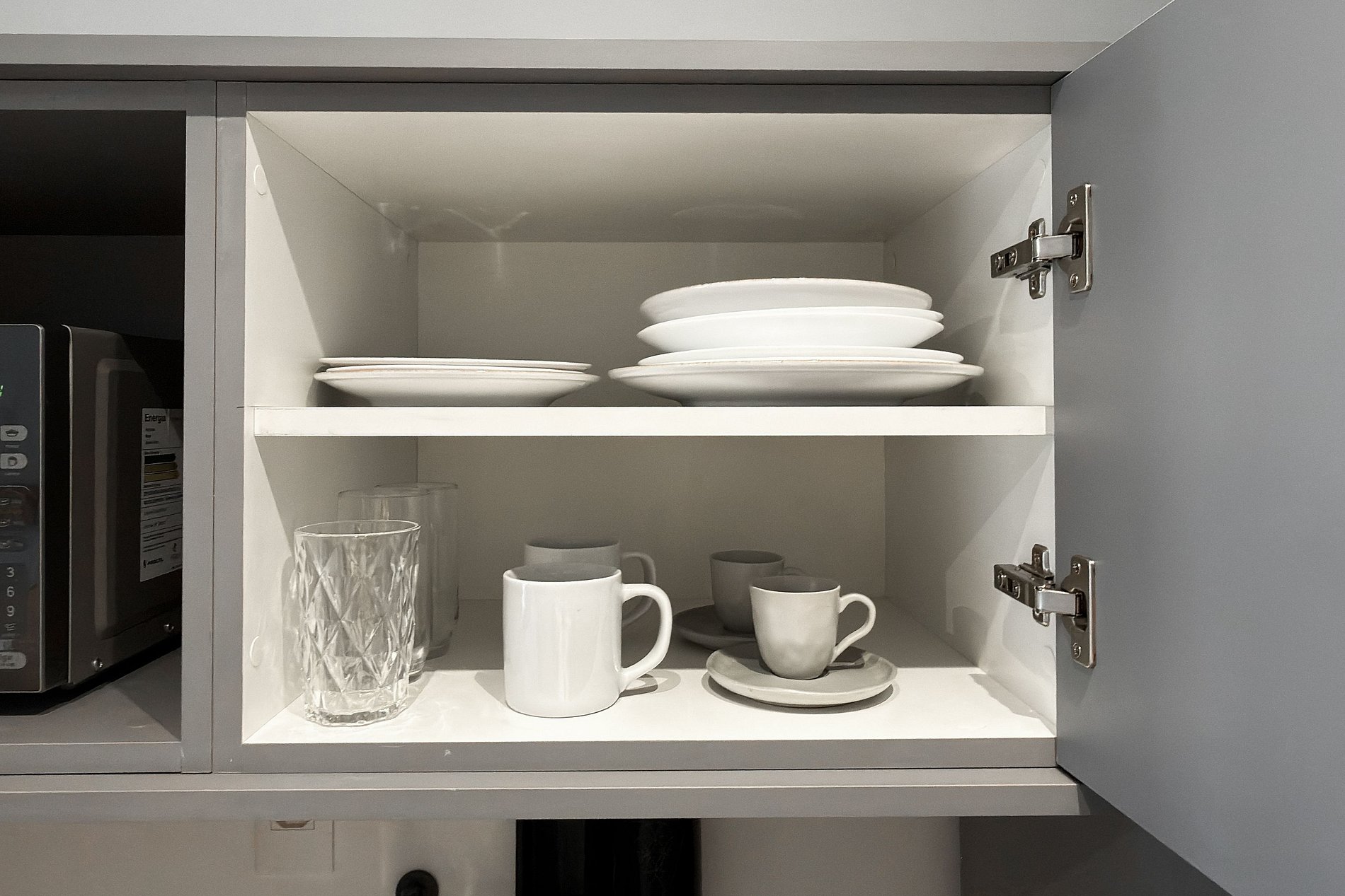 Cafeteira, panelas, talheres, copos e taças
