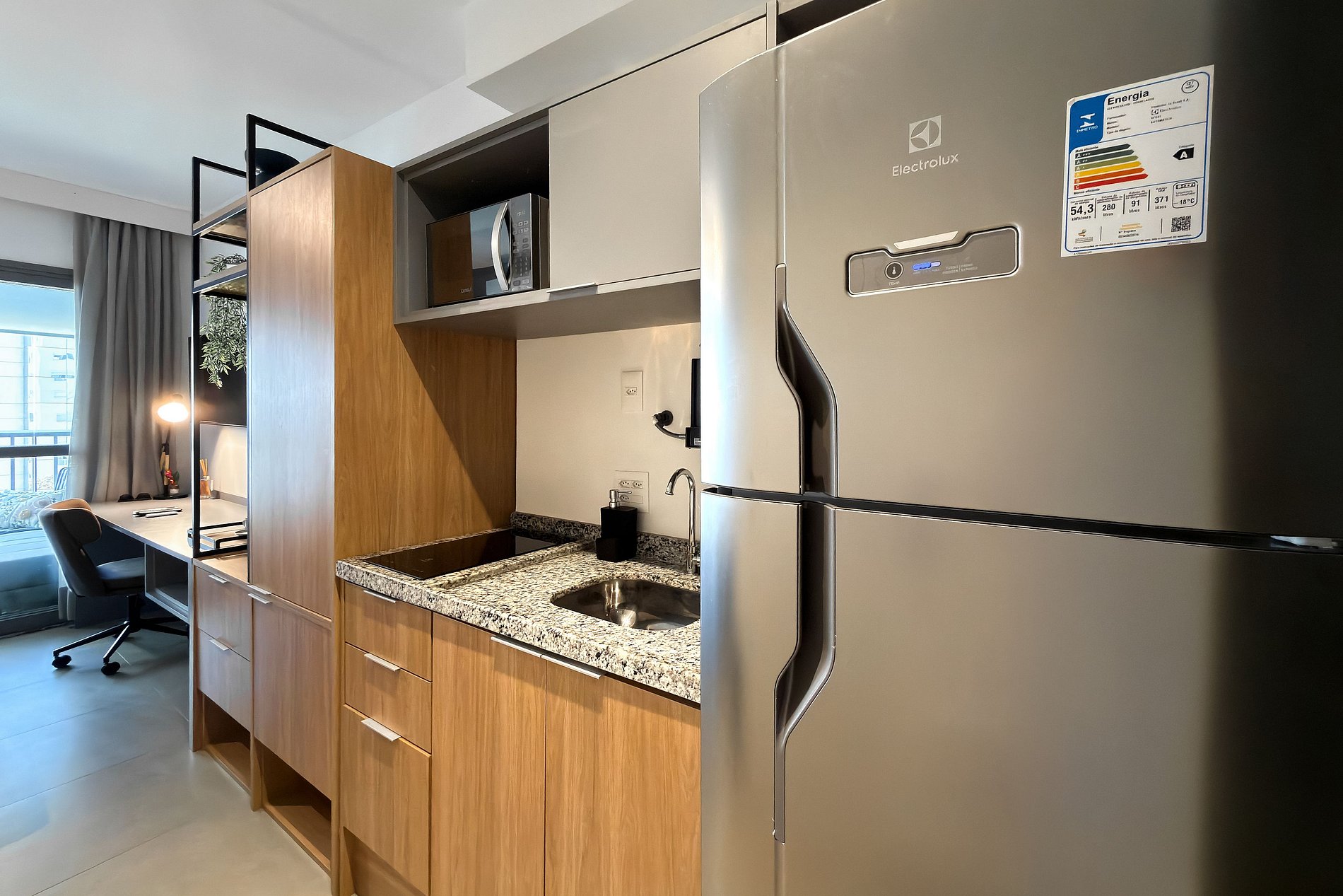 Fogão de indução, geladeira e micro-ondas