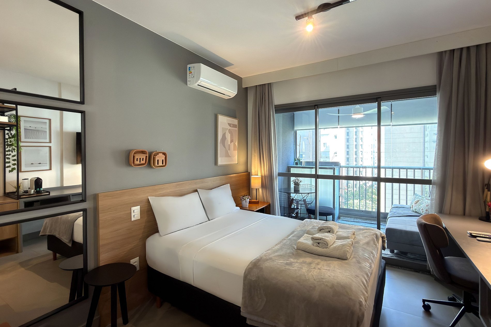 Studio planejado e bem equipado no coração de Moema — um dos bairros mais charmosos e bem localizados de São Paulo. A 6 minutos a pé do Metrô Moema (Linha 5) e próximo ao Parque Ibirapuera, Shopping Ibirapuera e Parque das Bicicletas.