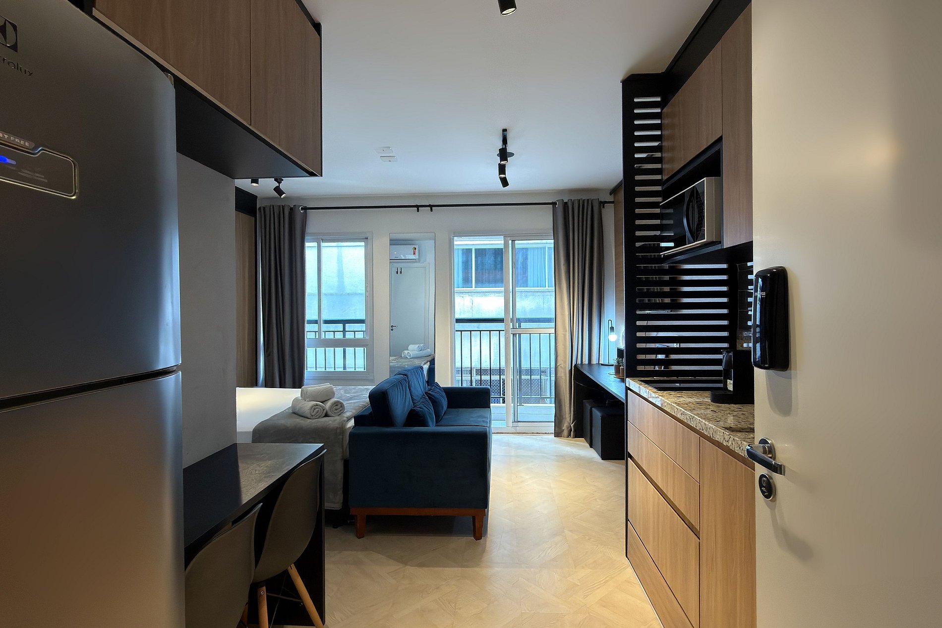 Studio bem planejado e totalmente equipado na Bela Vista — um dos bairros mais completos e bem localizados de São Paulo. A 700m da Avenida Paulista e do Metrô Brigadeiro (Linha 2-Verde), com acesso fácil a toda a cidade.