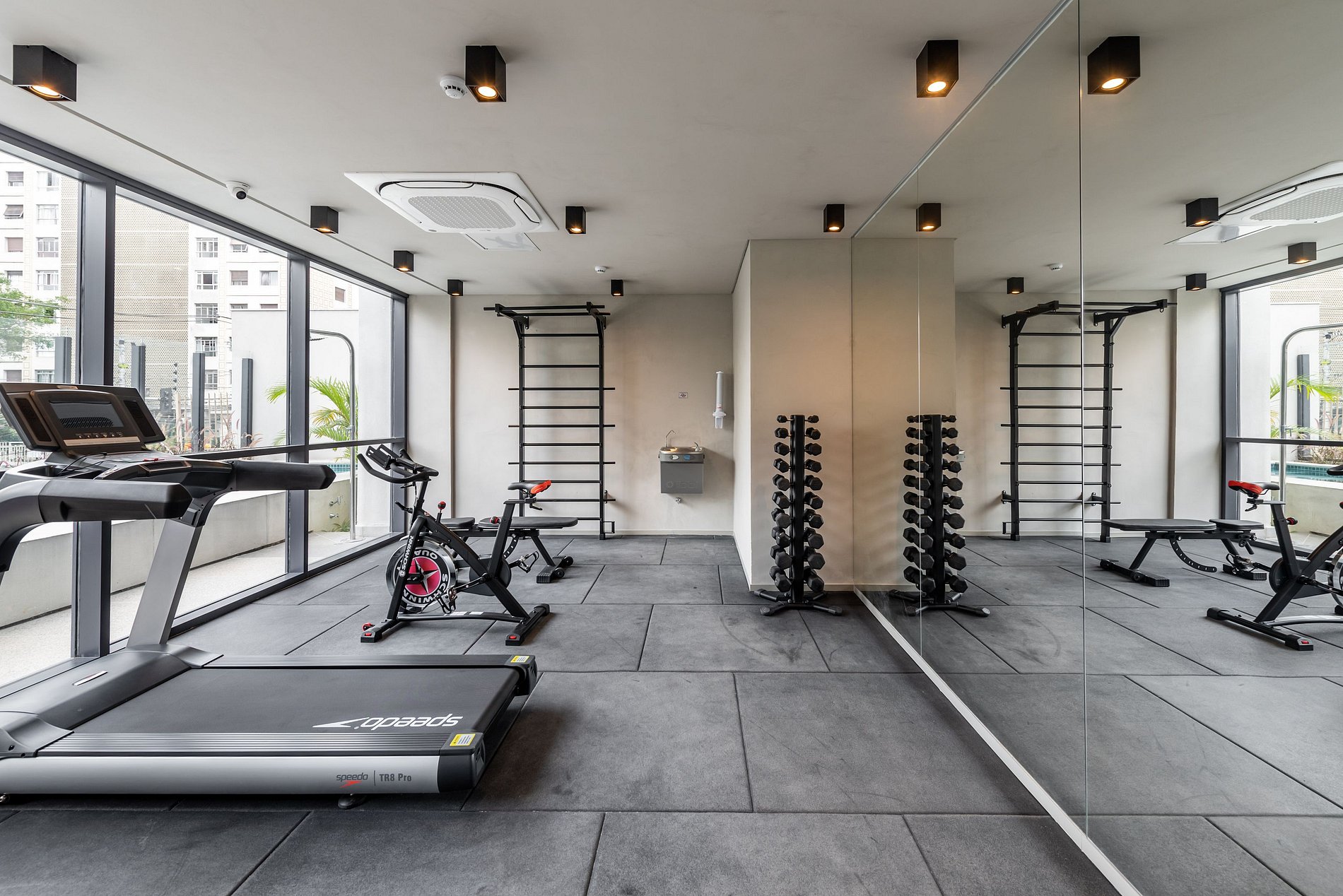-O predio lazer como: academia , piscina e coworking todos situados no andar 1