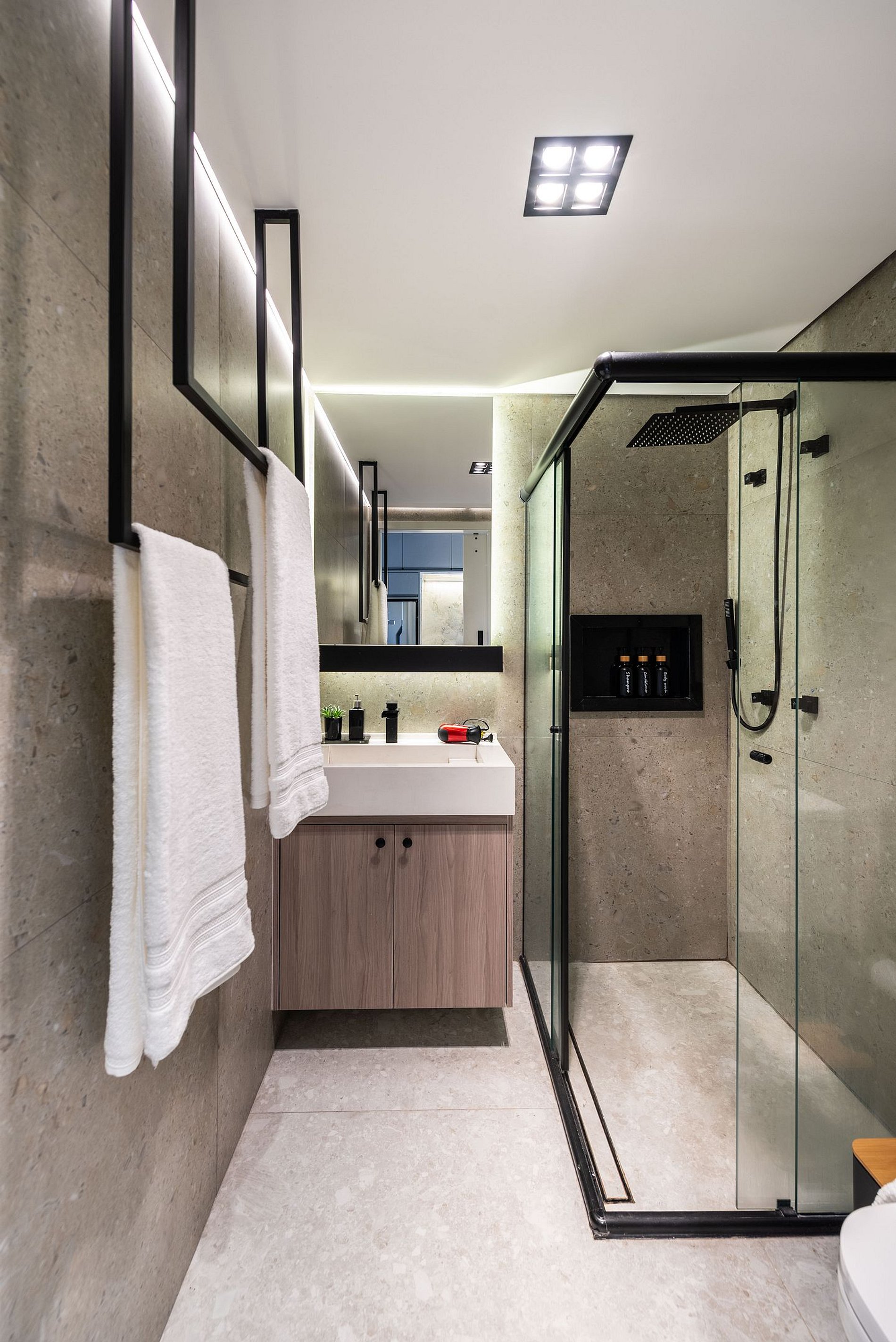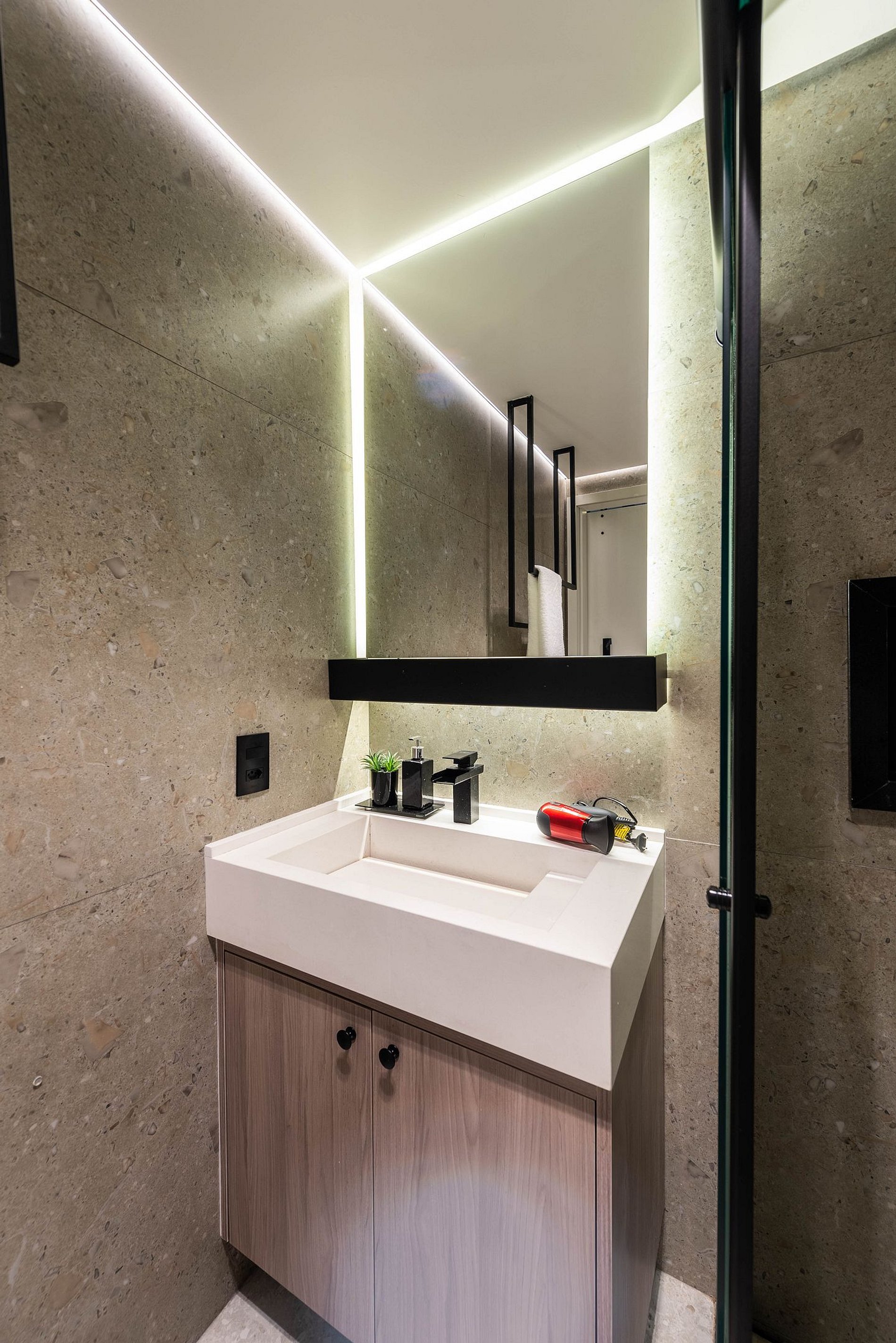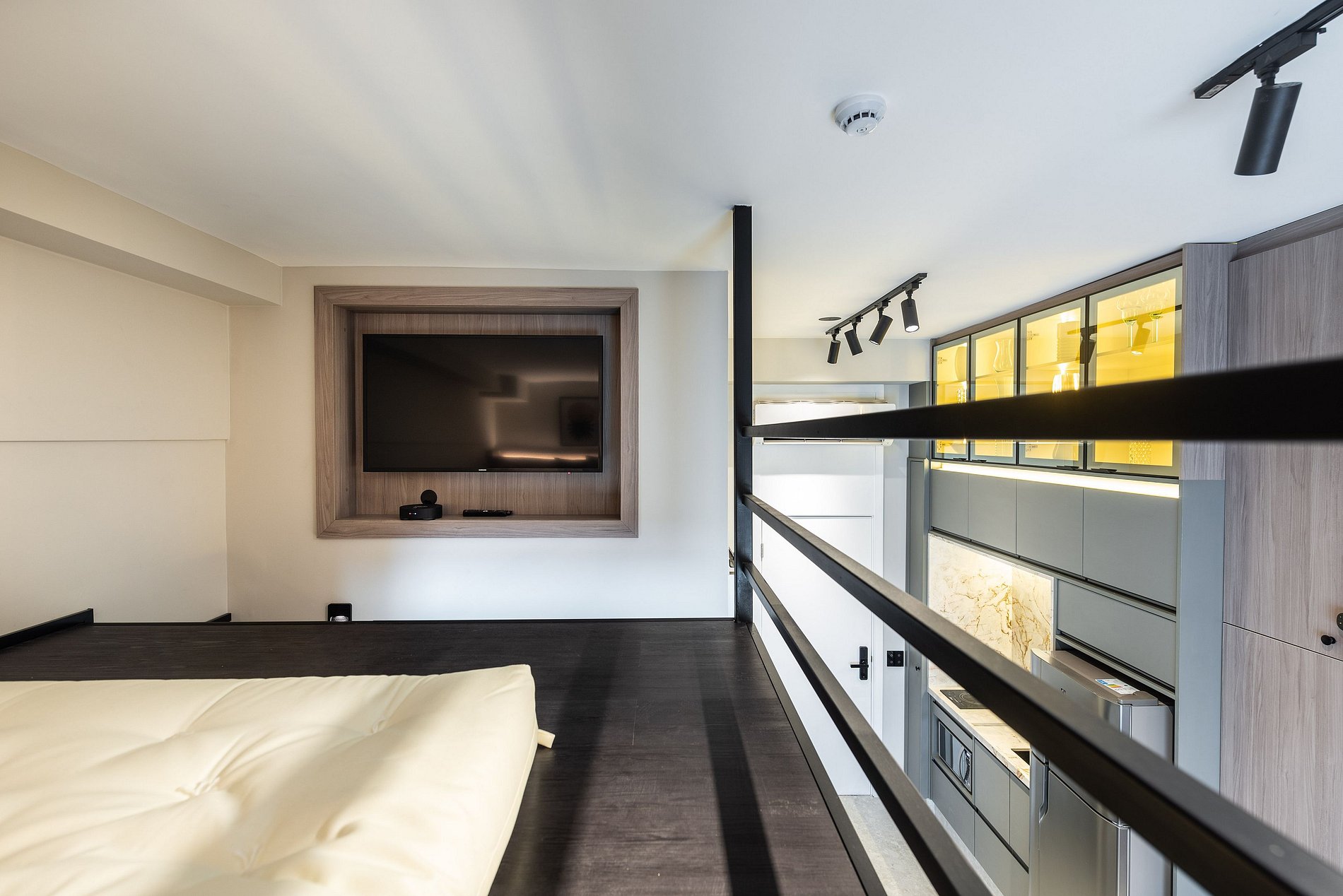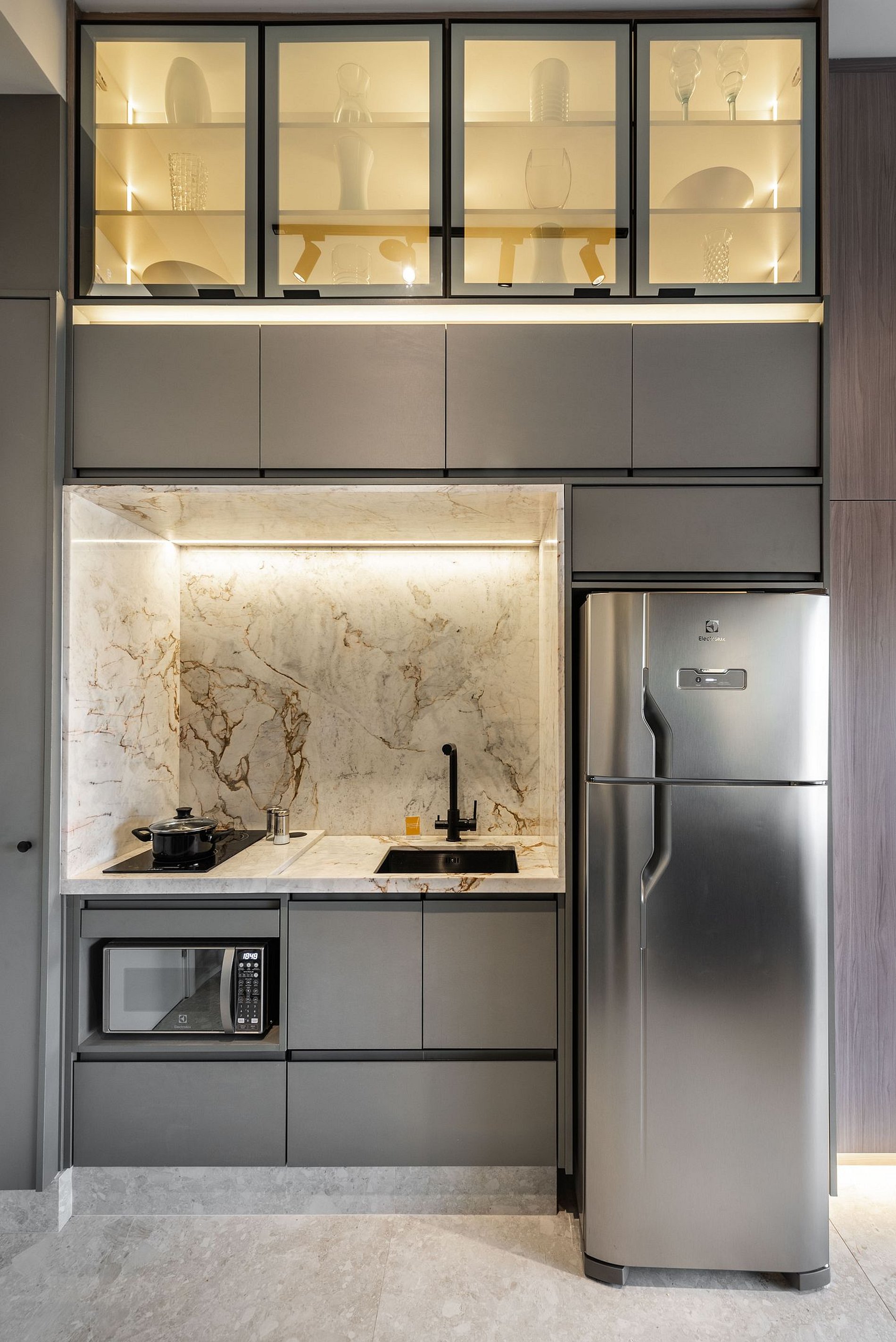 Apartamento automatizado com Alexa e snack bar para melhorar sua experiência. O espaço O estúdio é automatizado com a Alexa, oferecendo várias facilidades, como acender as luzes de forma prática com apenas um comando de voz.