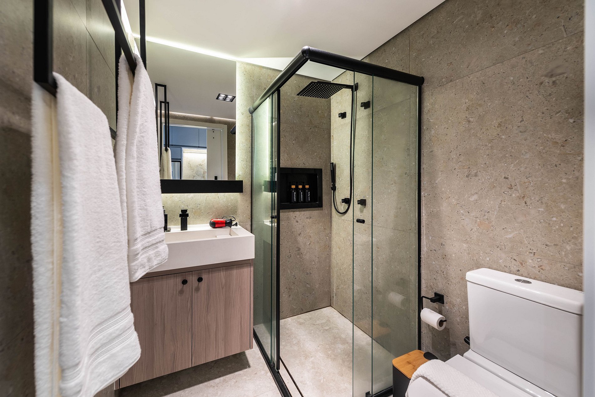 Também é possível deixar um kit de enxovais extra com o pagamento de uma taxa adicional. Acesso do hóspede O acesso de hóspedes ocorre pela portaria principal do condomínio. Cadastro realizado por biometria.