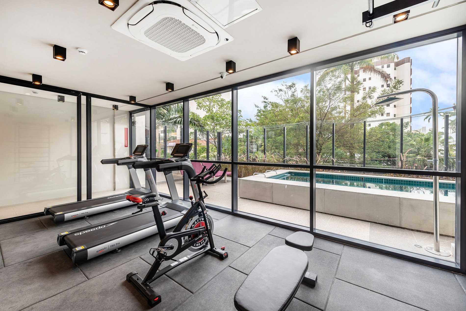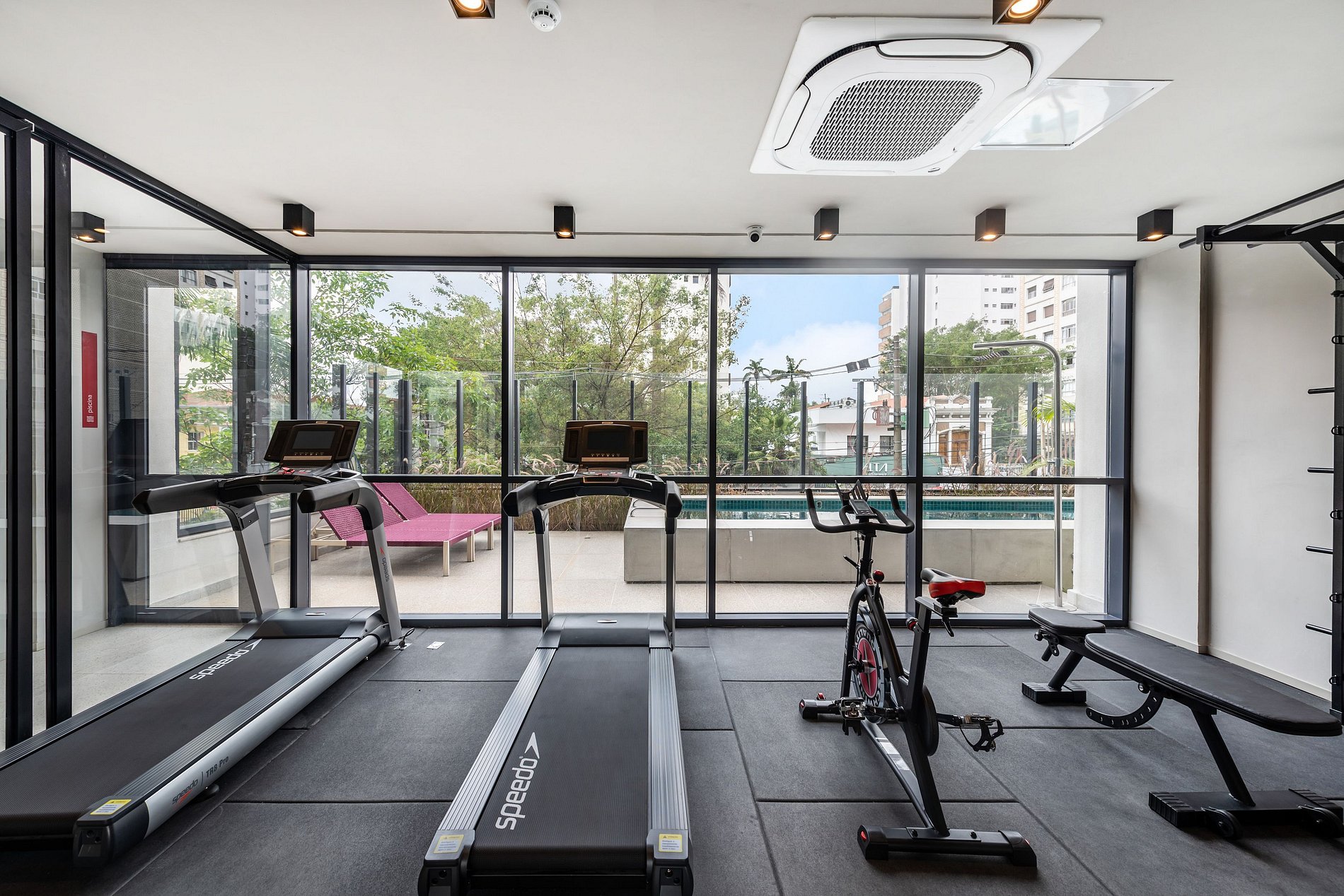 -O predio lazer como: academia , piscina e coworking todos situados no andar 1