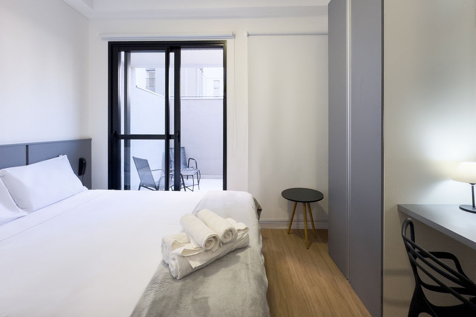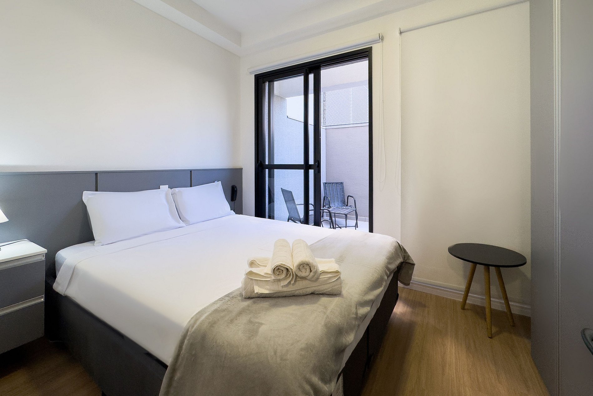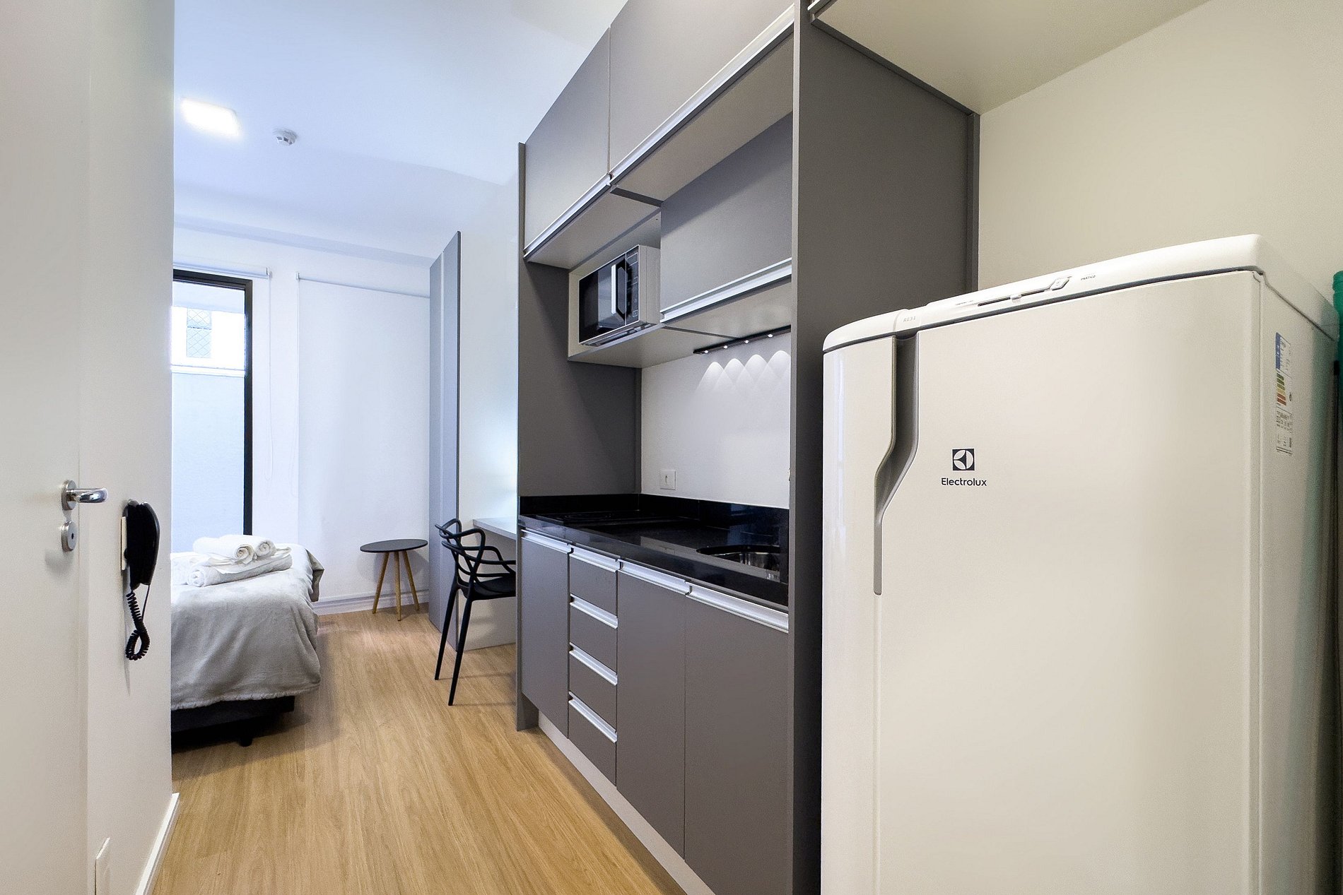 O apartamento possui 1 cama de casal padrão (1,38x1,88). Cozinha completa com geladeira, freezer, micro-ondas, fogão de indução (2 bocas), taças de vinho, cafeteira elétrica de pó para home office, guarda-roupa, Mesa, 1 Cadeira Interna, 2 Cadeiras Externas, TV e banheiro com ótimo chuveiro (água quente e fria). Será fornecido um jogo de enxoval (lençóis, travesseiros, fronhas e toalhas de banho e rosto) por hóspede. Não há trocas durante a permanência. Também é possível deixar um kit de enxovais extra com o pagamento de uma taxa adicional! Outras observações Ao redor do endereço Rua Coronel Lisboa 805 você encontrará uma variedade de opções para tornar sua estadia cada vez mais agradável.