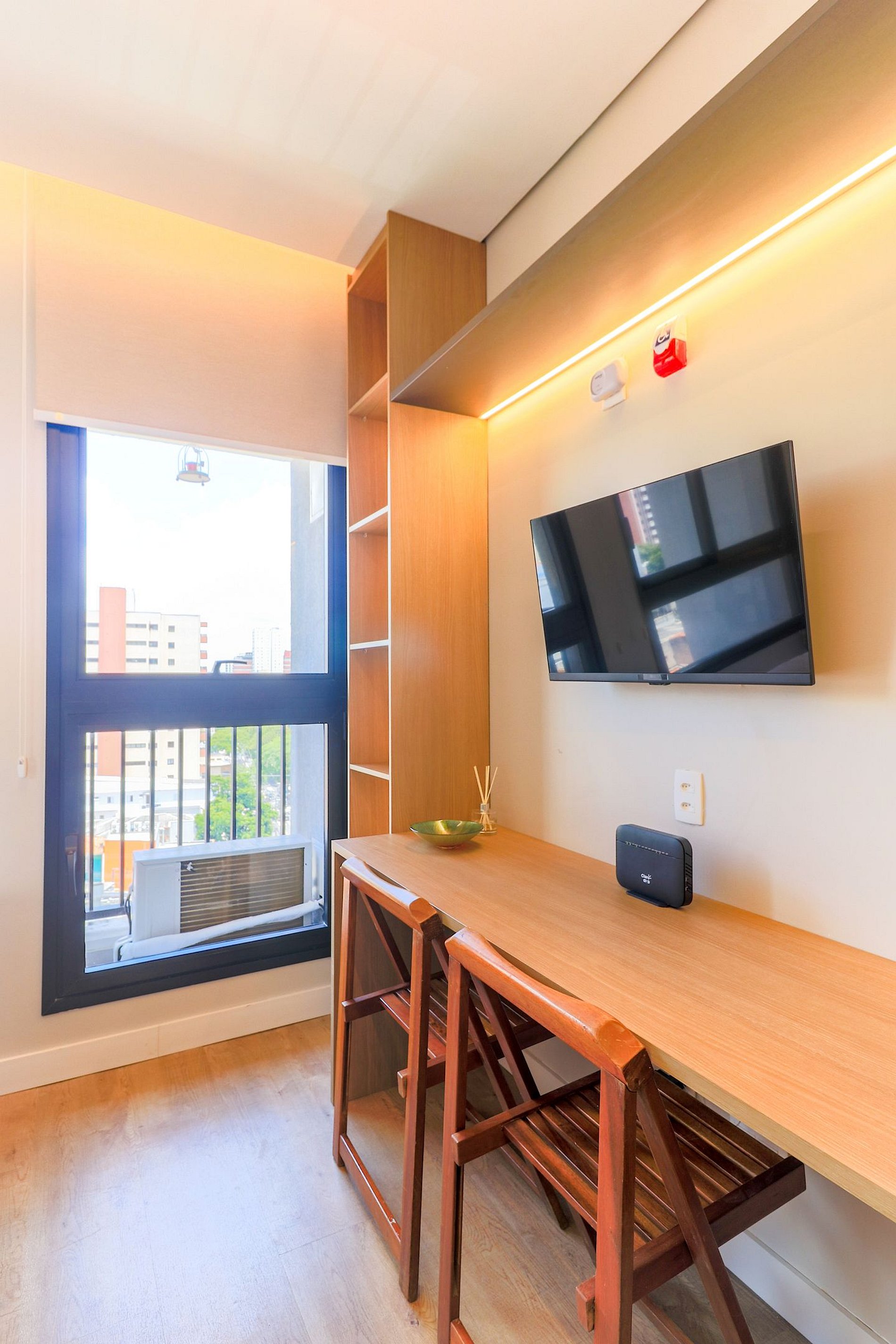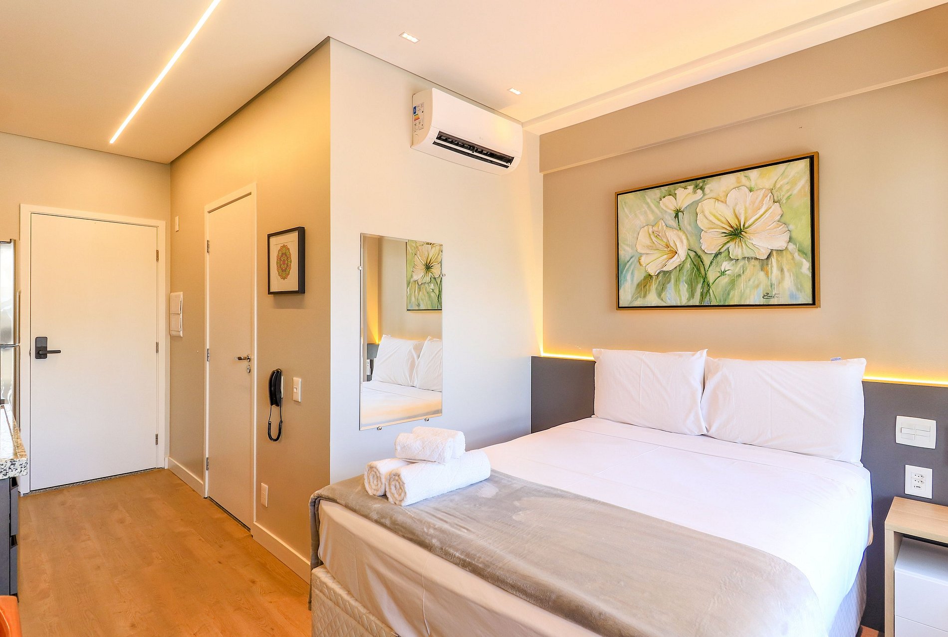 O apartamento possui 1 cama de casal Queen. Cozinha completa com geladeira, freezer, micro-ondas, fogão de indução (1 bocas), taças de vinho, cafeteira nespresso, Air fryer , guarda-roupa, TV e banheiro com ótimo chuveiro (água quente e fria). Será fornecido um jogo de enxoval (lençóis, travesseiros, fronhas e toalhas de banho e rosto) por hóspede. Não há trocas durante a permanência. Também é possível deixar um kit de enxovais extra com o pagamento de uma taxa adicional! Outras observações Ao redor do endereço Rua Coronel Lisboa 805 você encontrará uma variedade de opções para tornar sua estadia cada vez mais agradável.