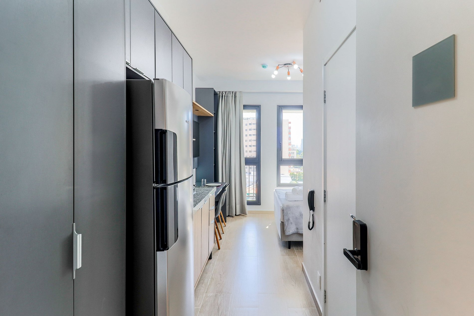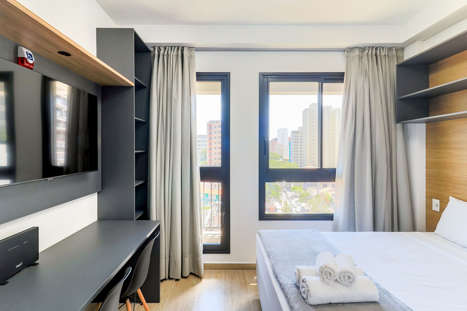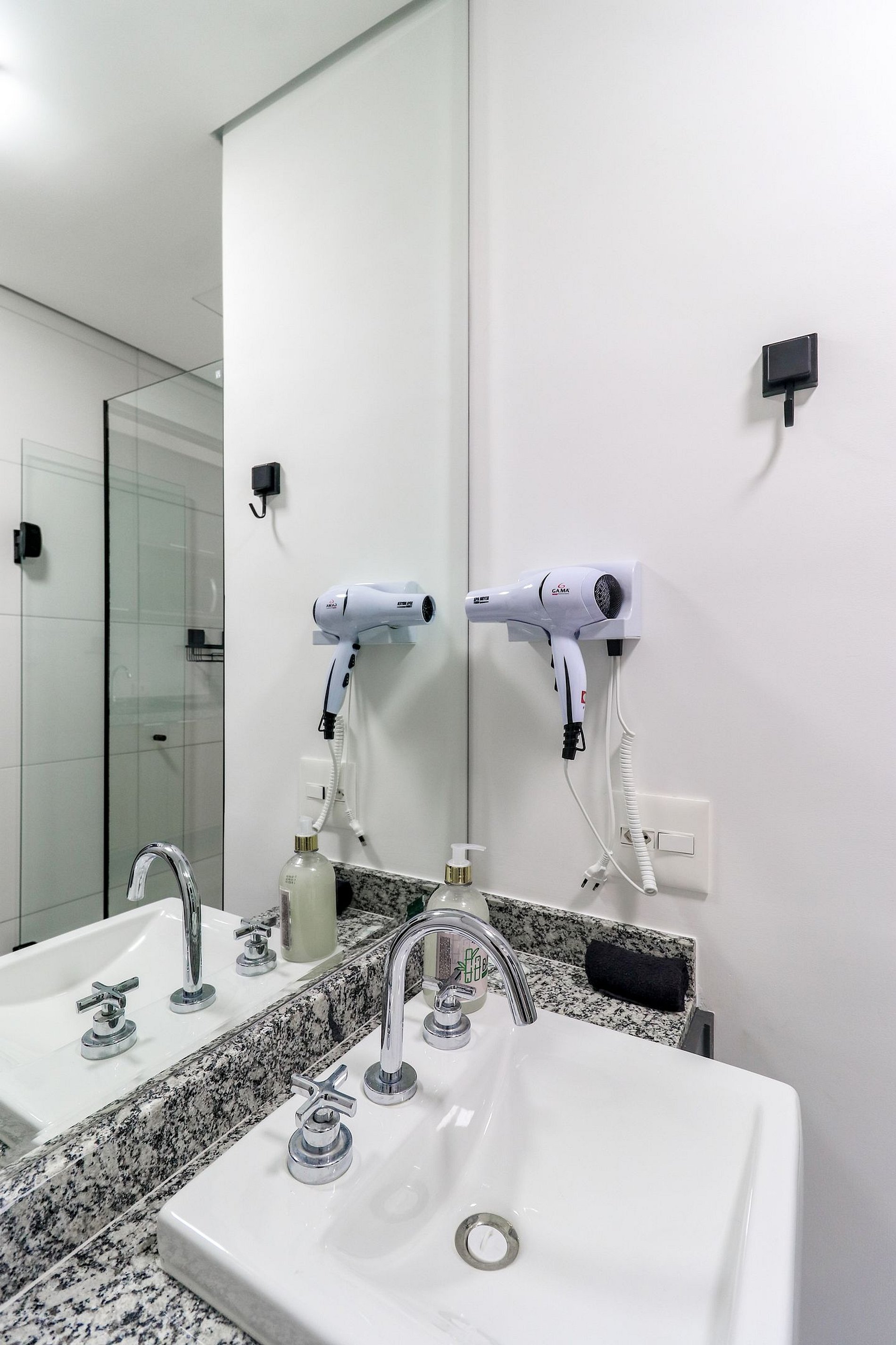 O apartamento possui 1 cama de casal padrão (1,38x1,88). Cozinha completa com geladeira, freezer, micro-ondas, fogão de indução (2 bocas), taças de vinho, cafeteira elétrica de pó para home office, guarda-roupa, Mesa, 1 Cadeira Interna, 2 Cadeiras Externas, TV e banheiro com ótimo chuveiro (água quente e fria). Será fornecido um jogo de enxoval (lençóis, travesseiros, fronhas e toalhas de banho e rosto) por hóspede. Não há trocas durante a permanência. Também é possível deixar um kit de enxovais extra com o pagamento de uma taxa adicional! Outras observações Ao redor do endereço Rua Coronel Lisboa 805 você encontrará uma variedade de opções para tornar sua estadia cada vez mais agradável.