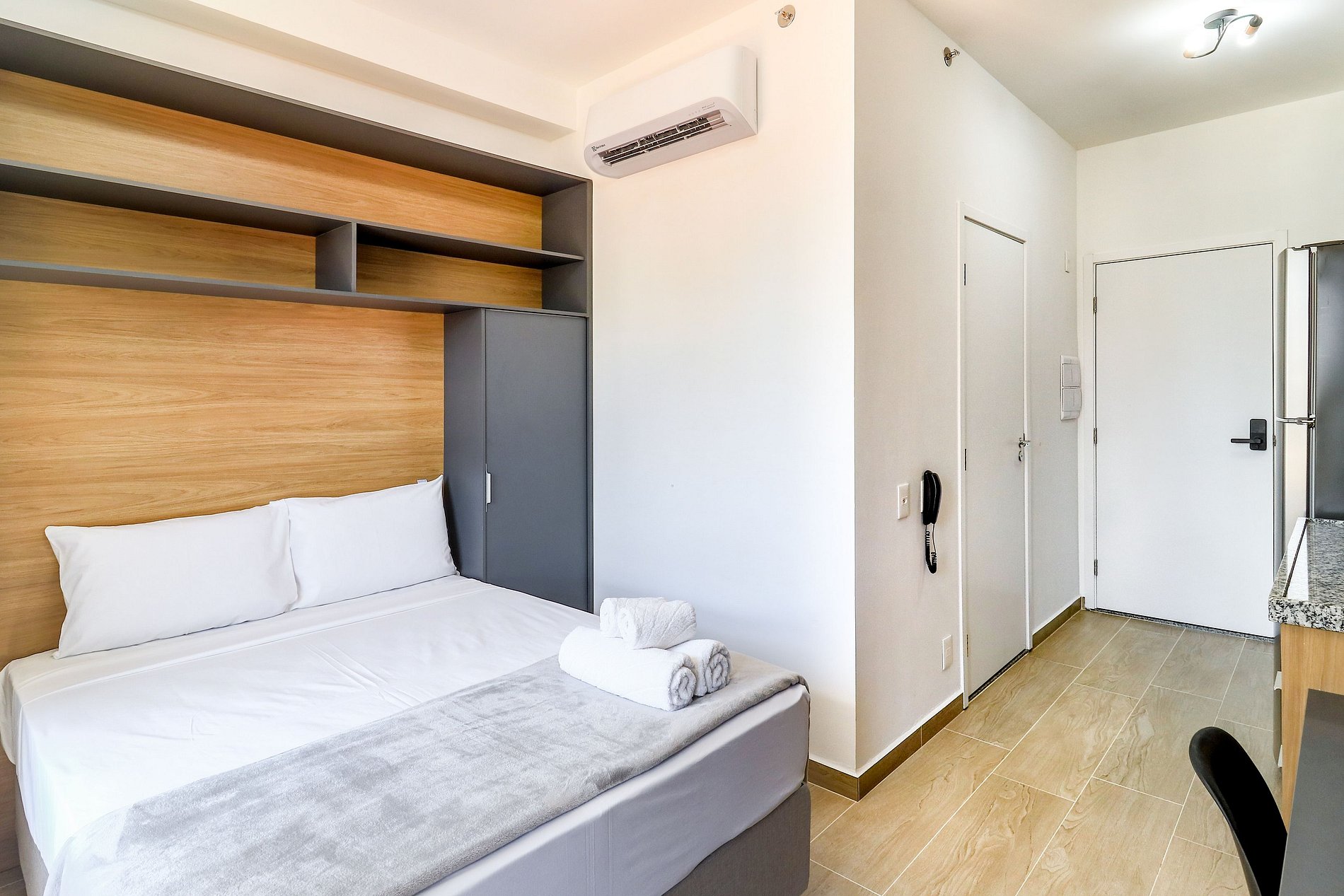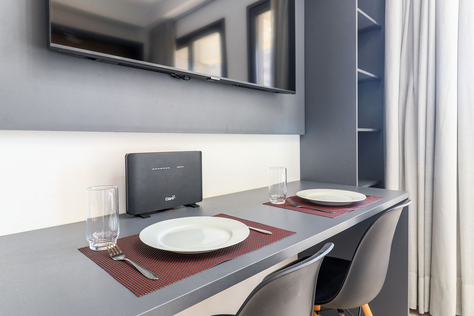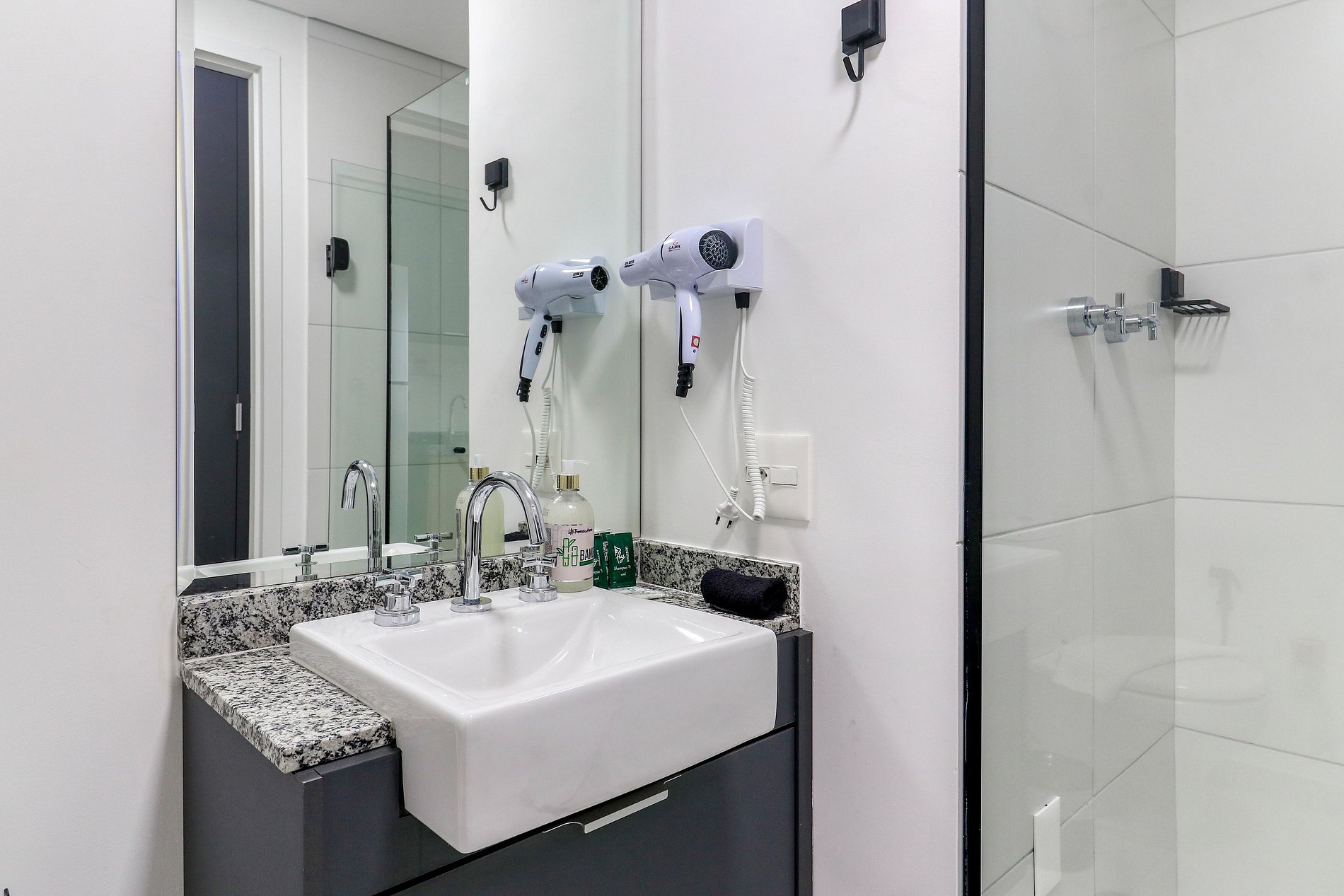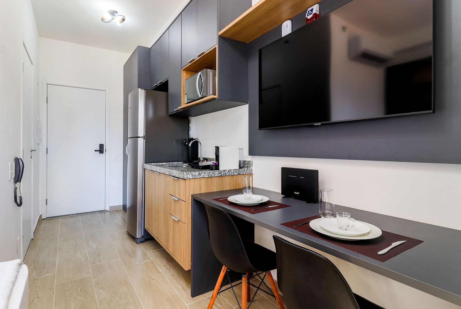 O apartamento possui 1 cama de casal padrão (1,38x1,88). Cozinha completa com geladeira, freezer, micro-ondas, fogão de indução (2 bocas), taças de vinho, cafeteira elétrica de pó para home office, guarda-roupa, Mesa, 1 Cadeira Interna, 2 Cadeiras Externas, TV e banheiro com ótimo chuveiro (água quente e fria). Será fornecido um jogo de enxoval (lençóis, travesseiros, fronhas e toalhas de banho e rosto) por hóspede. Não há trocas durante a permanência. Também é possível deixar um kit de enxovais extra com o pagamento de uma taxa adicional! Outras observações Ao redor do endereço Rua Coronel Lisboa 805 você encontrará uma variedade de opções para tornar sua estadia cada vez mais agradável.