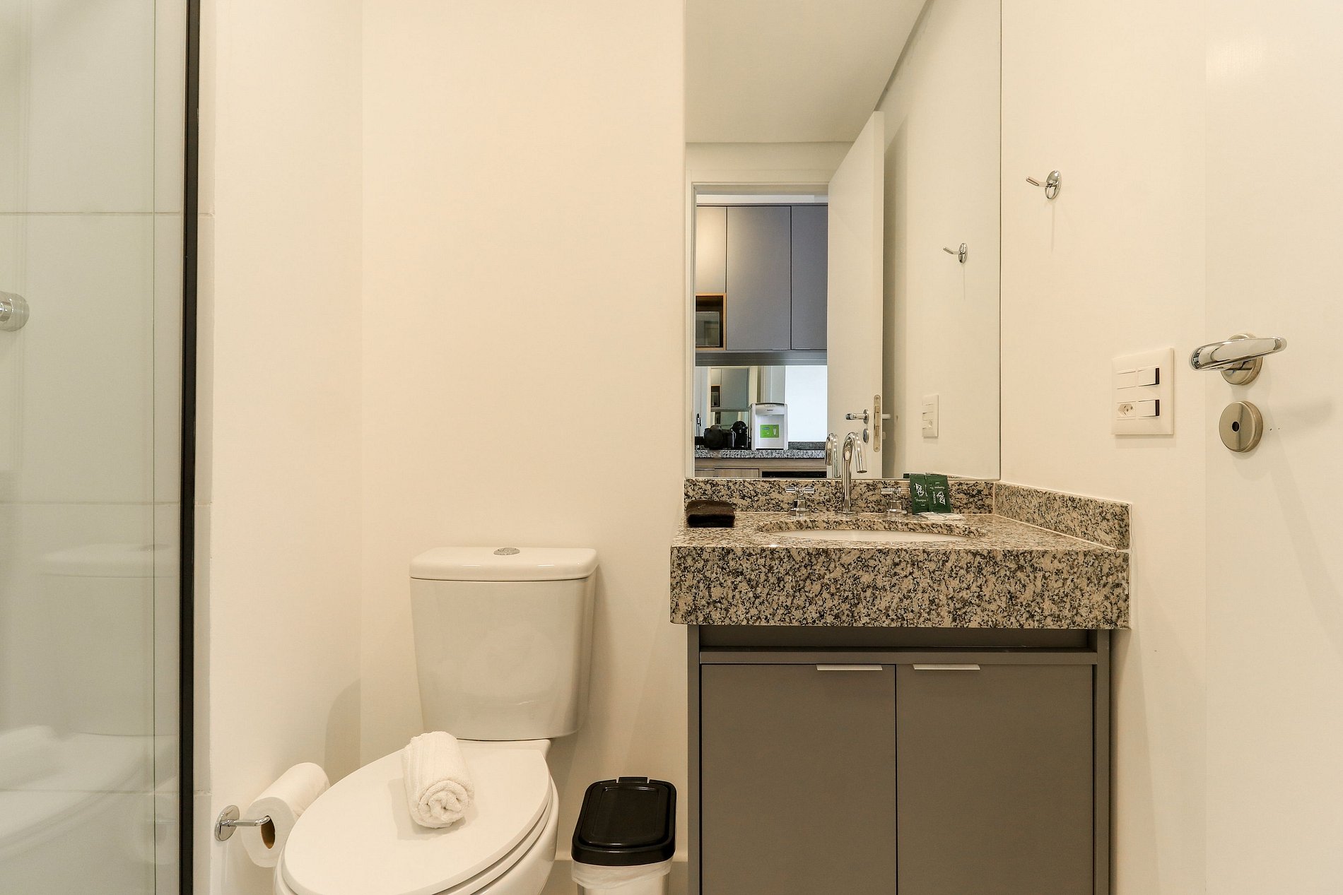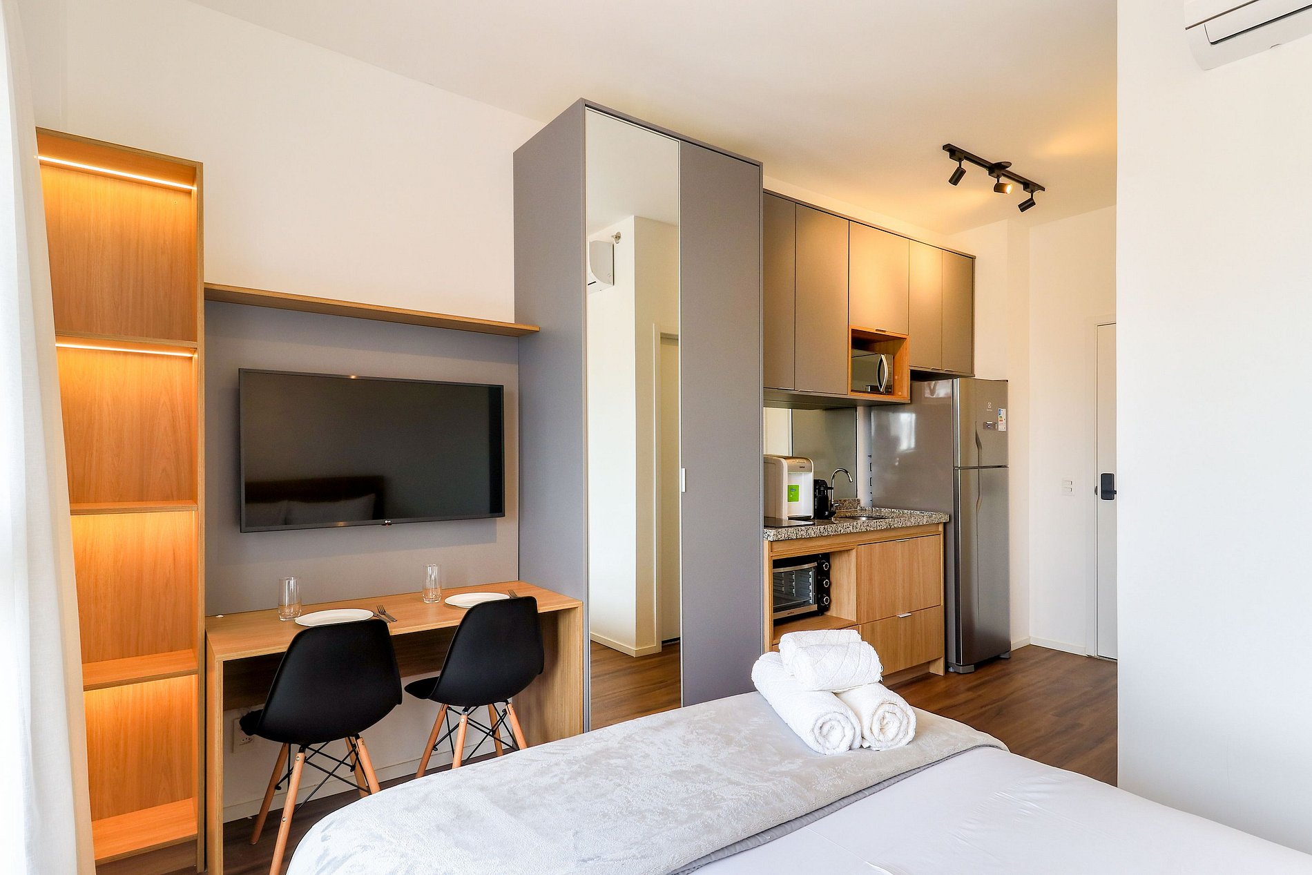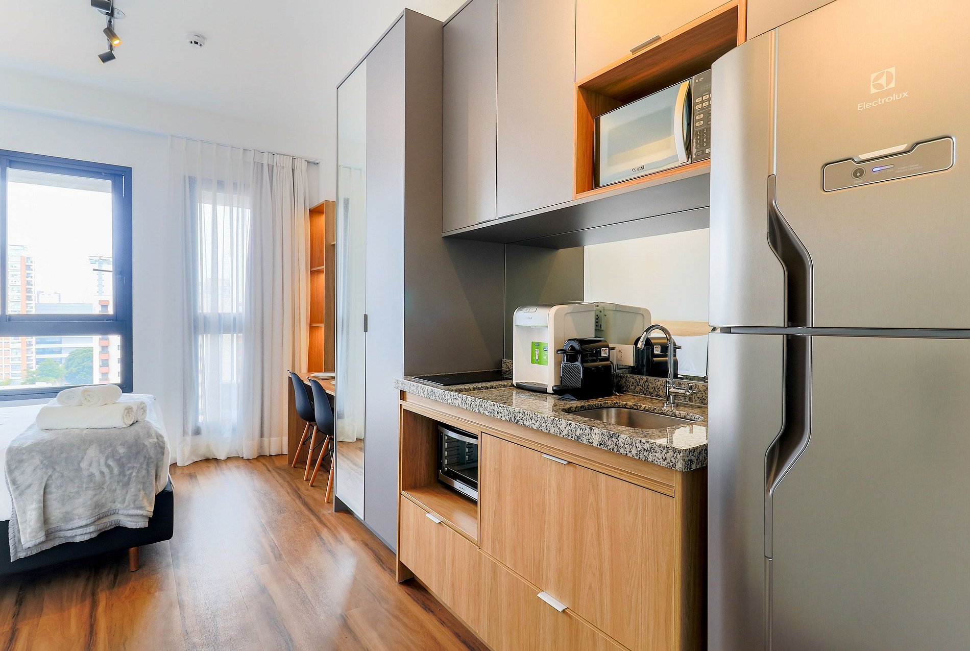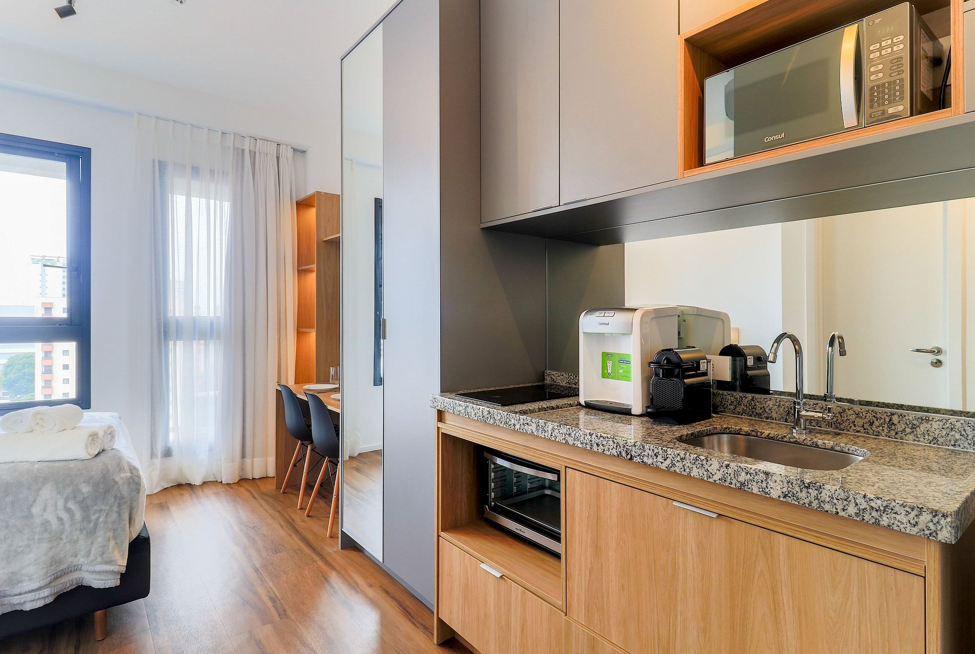 É necessário realizar Cadastrona portaria para garantir a sua segurança. Código de acesso ao studio será enviado 1 dia antes do check in. Acesso a todas áreas do comuns do condomínio, como:, lavanderia coletiva paga , academia e rooftop.