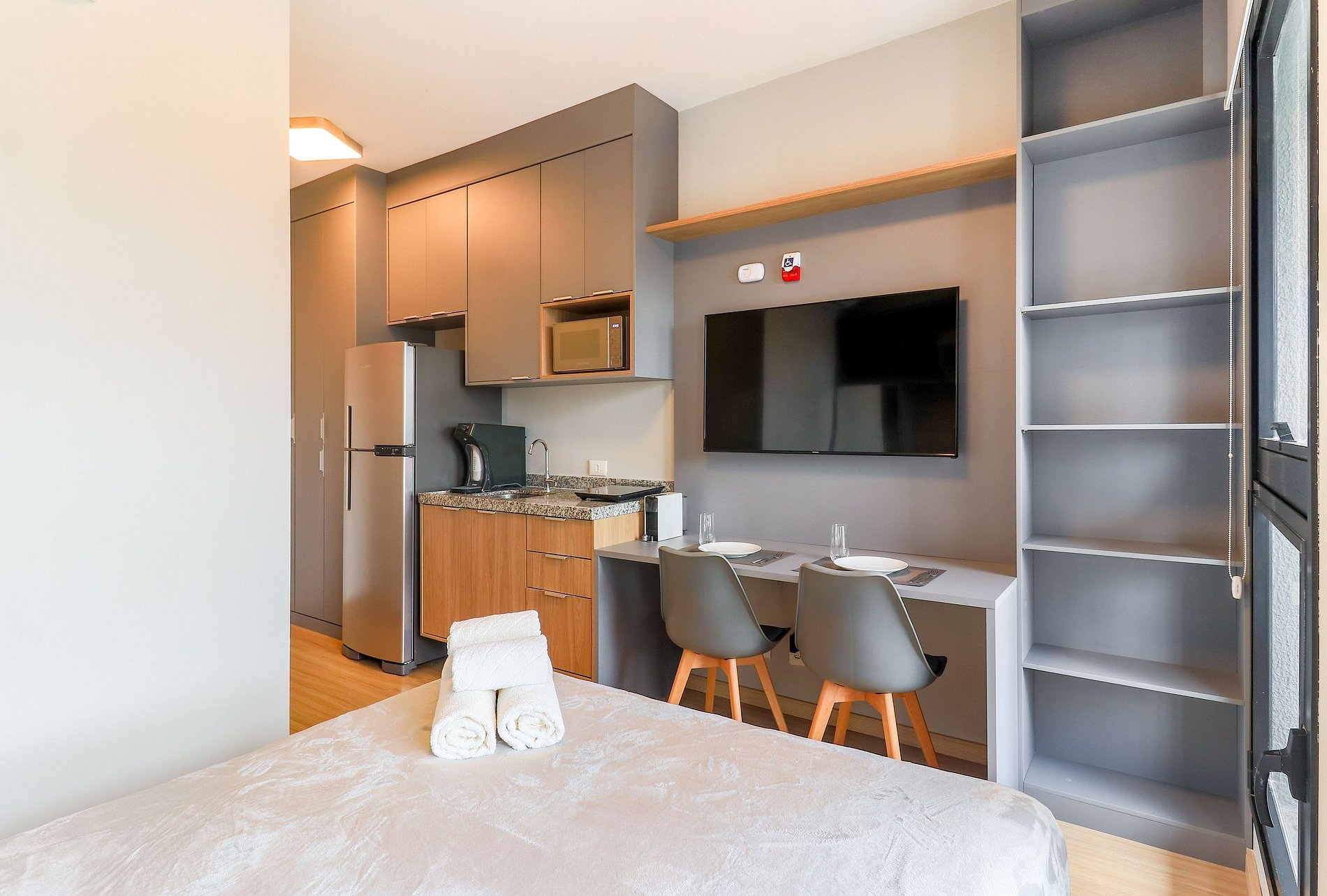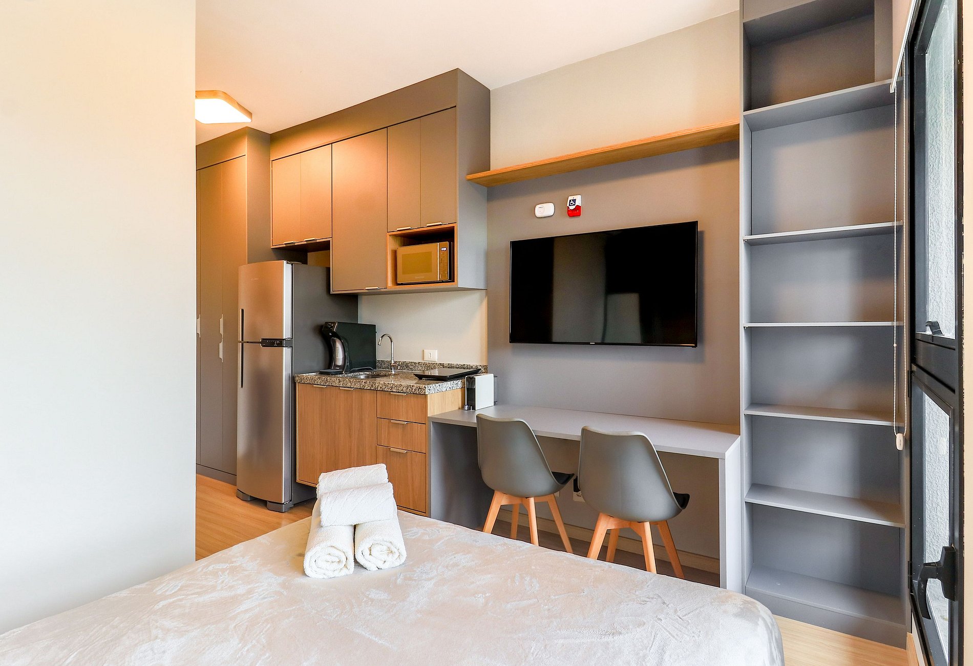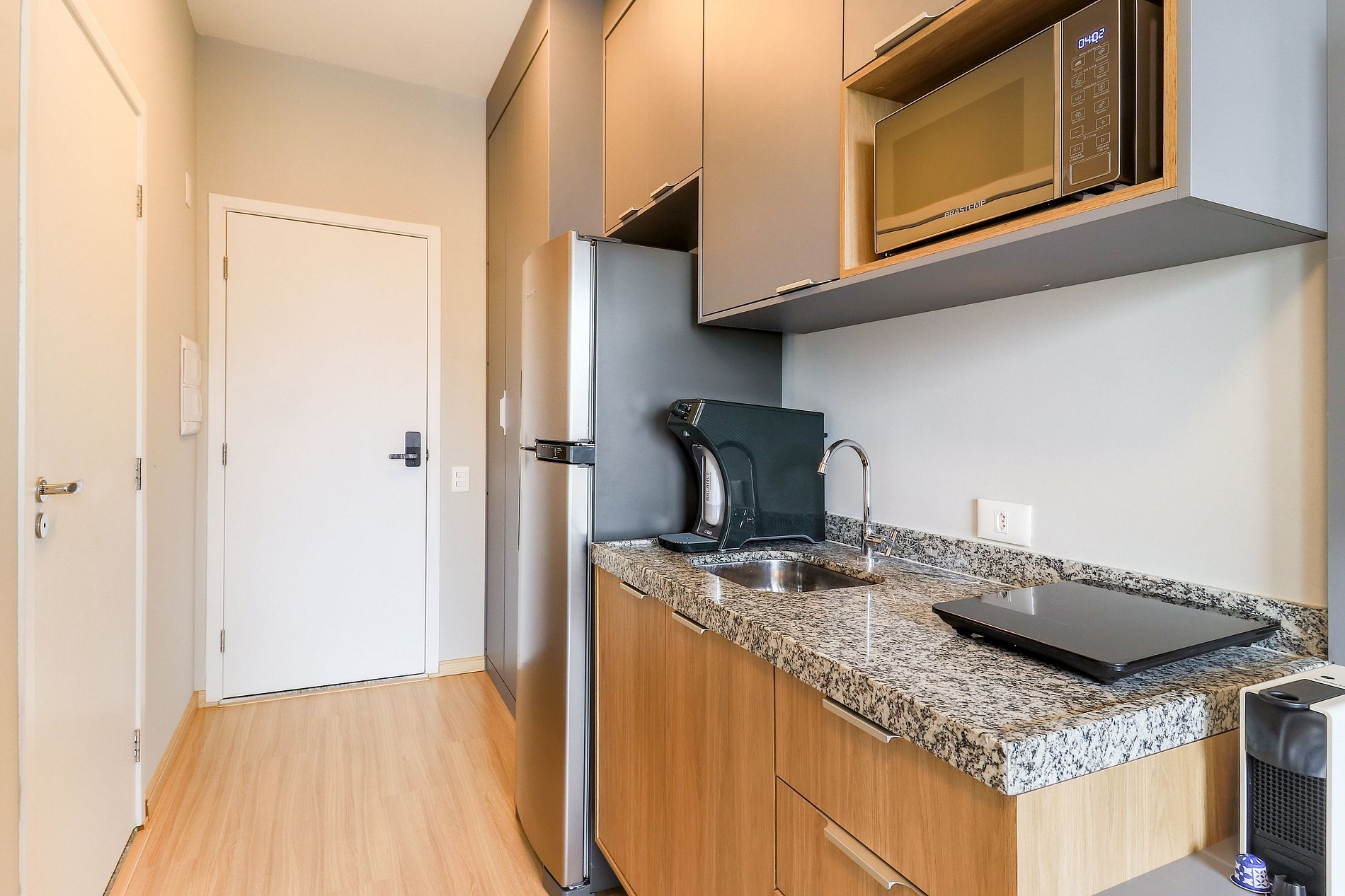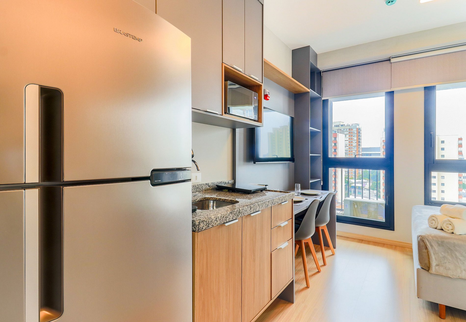 O apartamento possui 1 cama de casal padrão (1,38x1,88). Cozinha completa com geladeira, freezer, micro-ondas, fogão de indução (1 bocas), taças de vinho, cafeteira nespresso para home office, guarda-roupa, Mesa, 2 Cadeira Interna, filtro de agua, forninho, liquidificador , TV e banheiro com ótimo chuveiro (água quente e fria) secador e ferro de passar.. Será fornecido um jogo de enxoval (lençóis, travesseiros, fronhas e toalhas de banho e rosto) por hóspede. Não há trocas durante a permanência. Também é possível deixar um kit de enxovais extra com o pagamento de uma taxa adicional! Outras observações Ao redor do endereço Rua Coronel Lisboa 805 você encontrará uma variedade de opções para tornar sua estadia cada vez mais agradável.