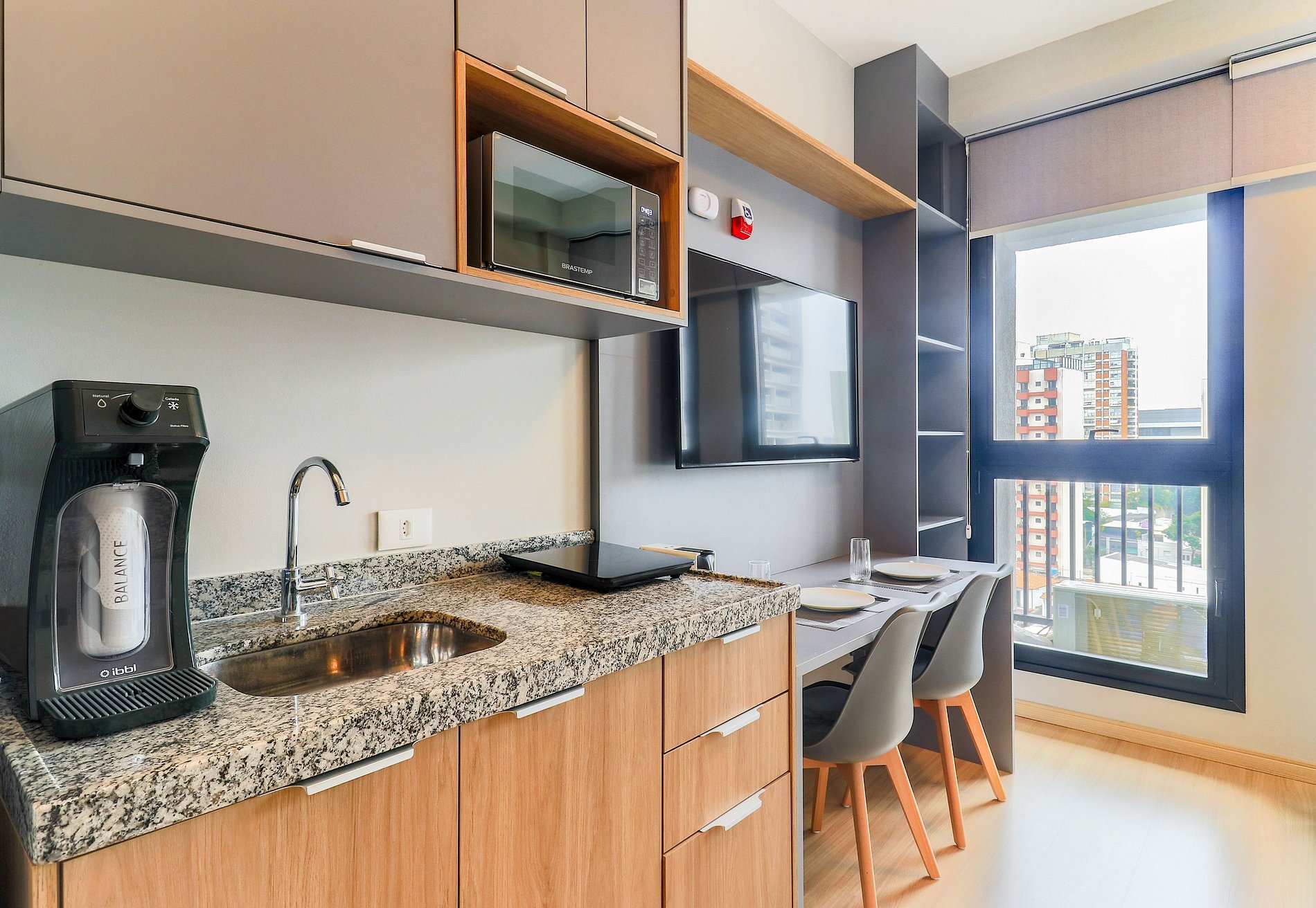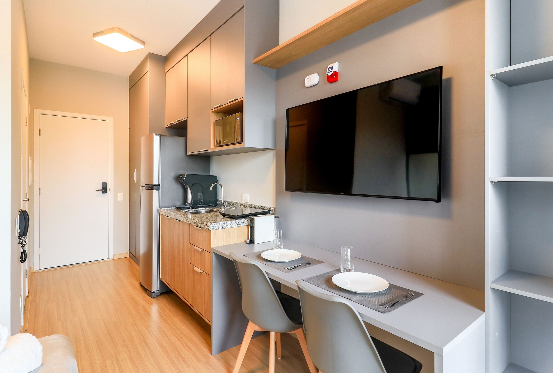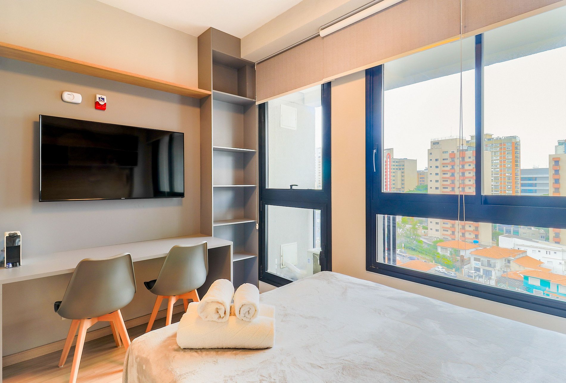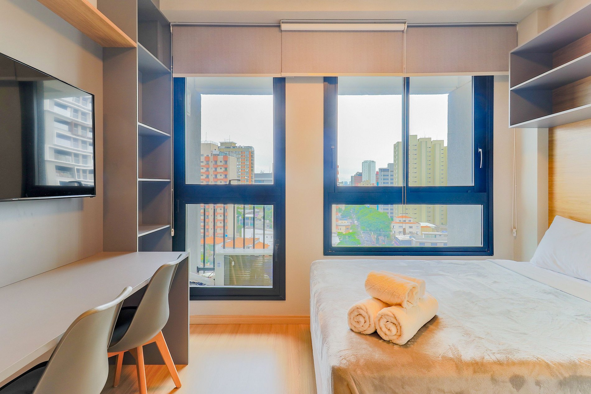 O apartamento possui 1 cama de casal padrão (1,38x1,88). Cozinha completa com geladeira, freezer, micro-ondas, fogão de indução (1 bocas), taças de vinho, cafeteira nespresso para home office, guarda-roupa, Mesa, 2 Cadeira Interna, filtro de agua, forninho, liquidificador , TV e banheiro com ótimo chuveiro (água quente e fria) secador e ferro de passar.. Será fornecido um jogo de enxoval (lençóis, travesseiros, fronhas e toalhas de banho e rosto) por hóspede. Não há trocas durante a permanência. Também é possível deixar um kit de enxovais extra com o pagamento de uma taxa adicional! Outras observações Ao redor do endereço Rua Coronel Lisboa 805 você encontrará uma variedade de opções para tornar sua estadia cada vez mais agradável.