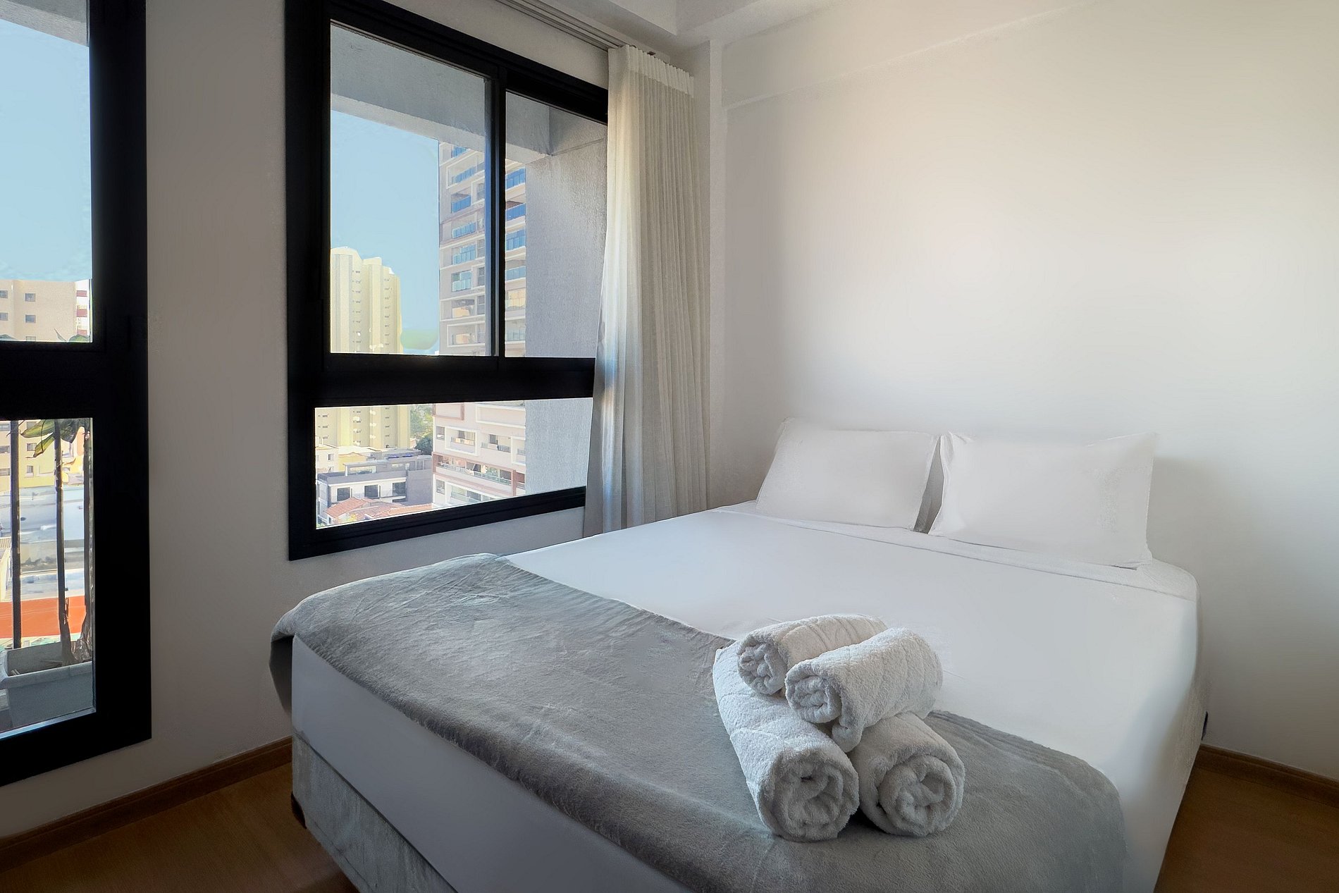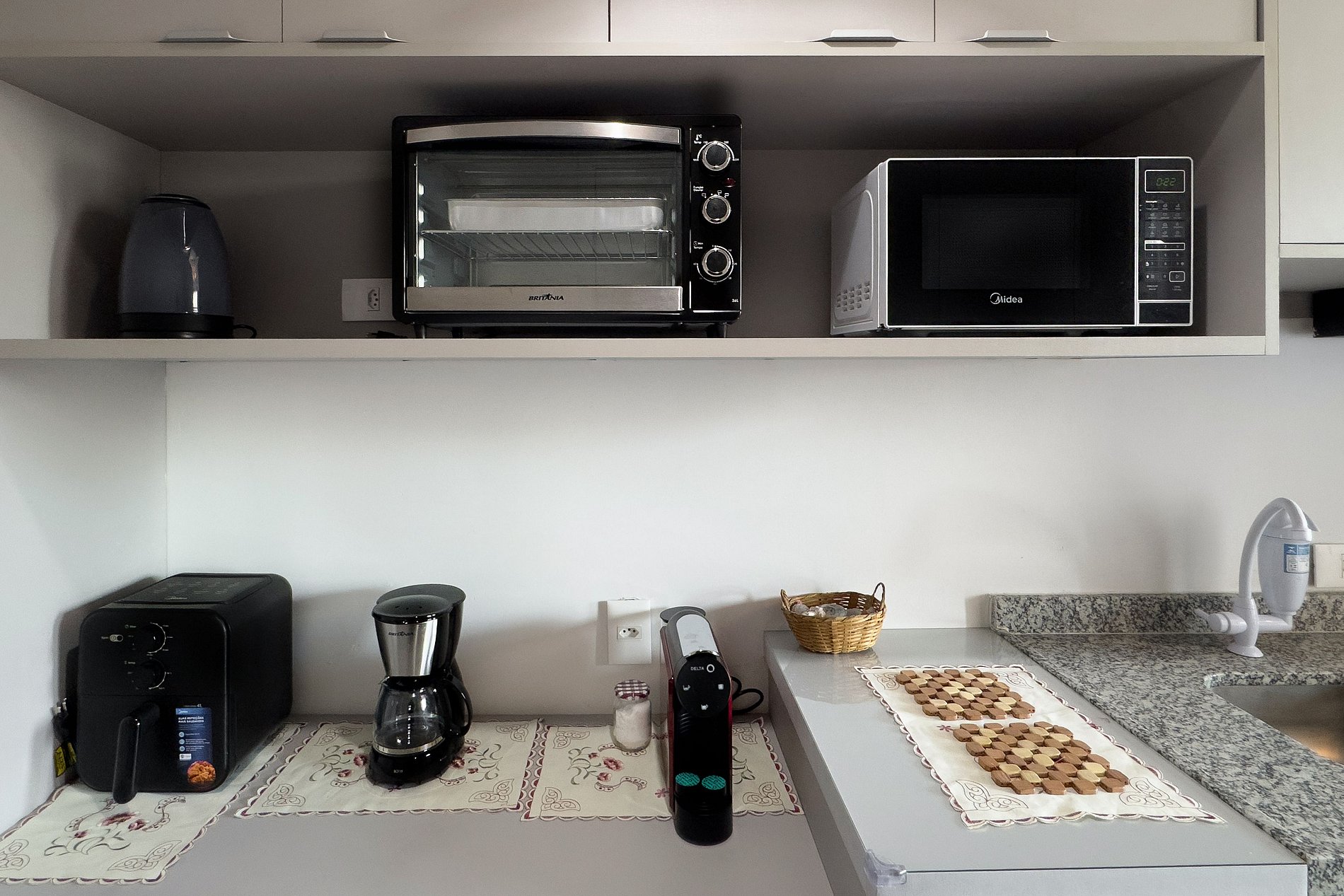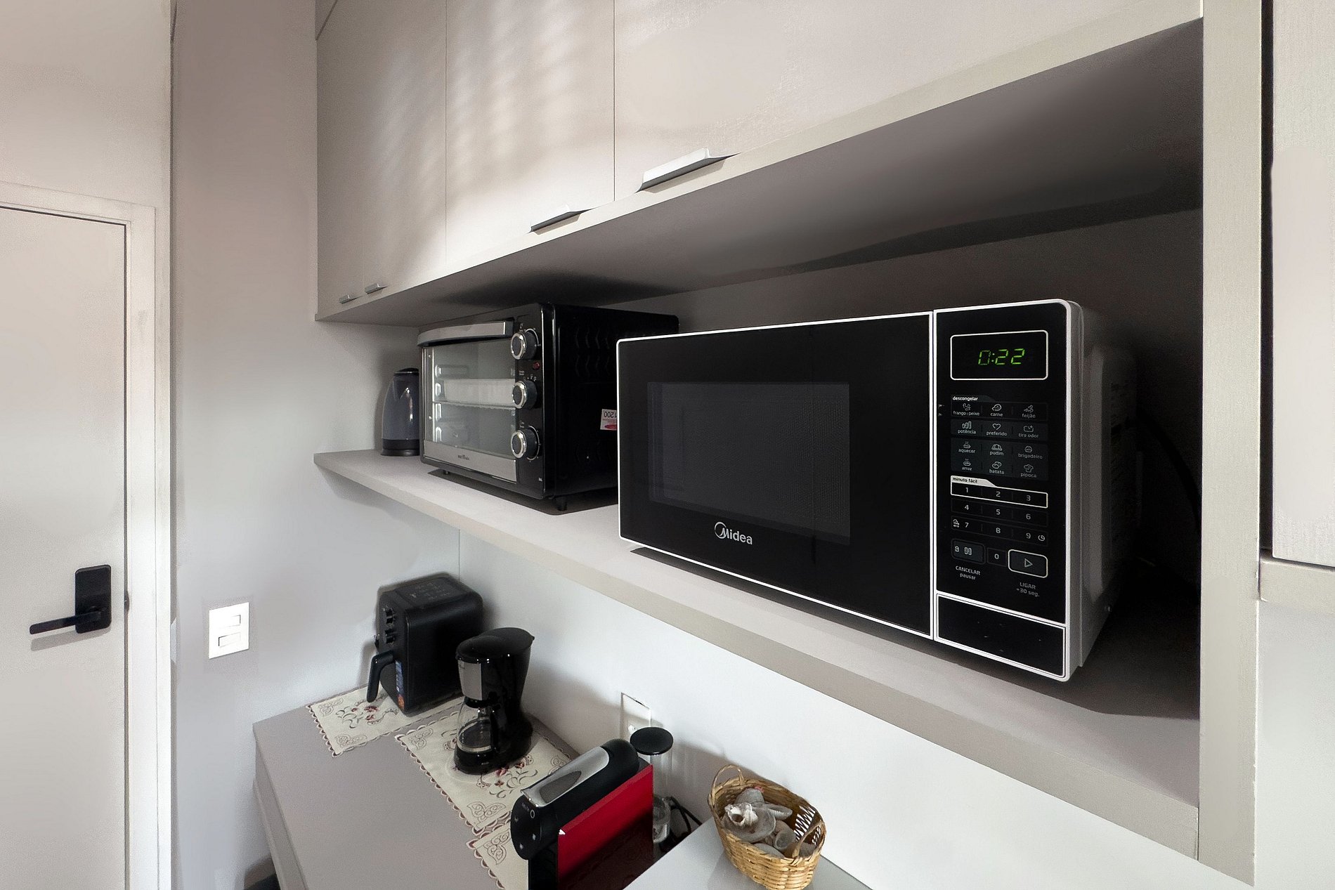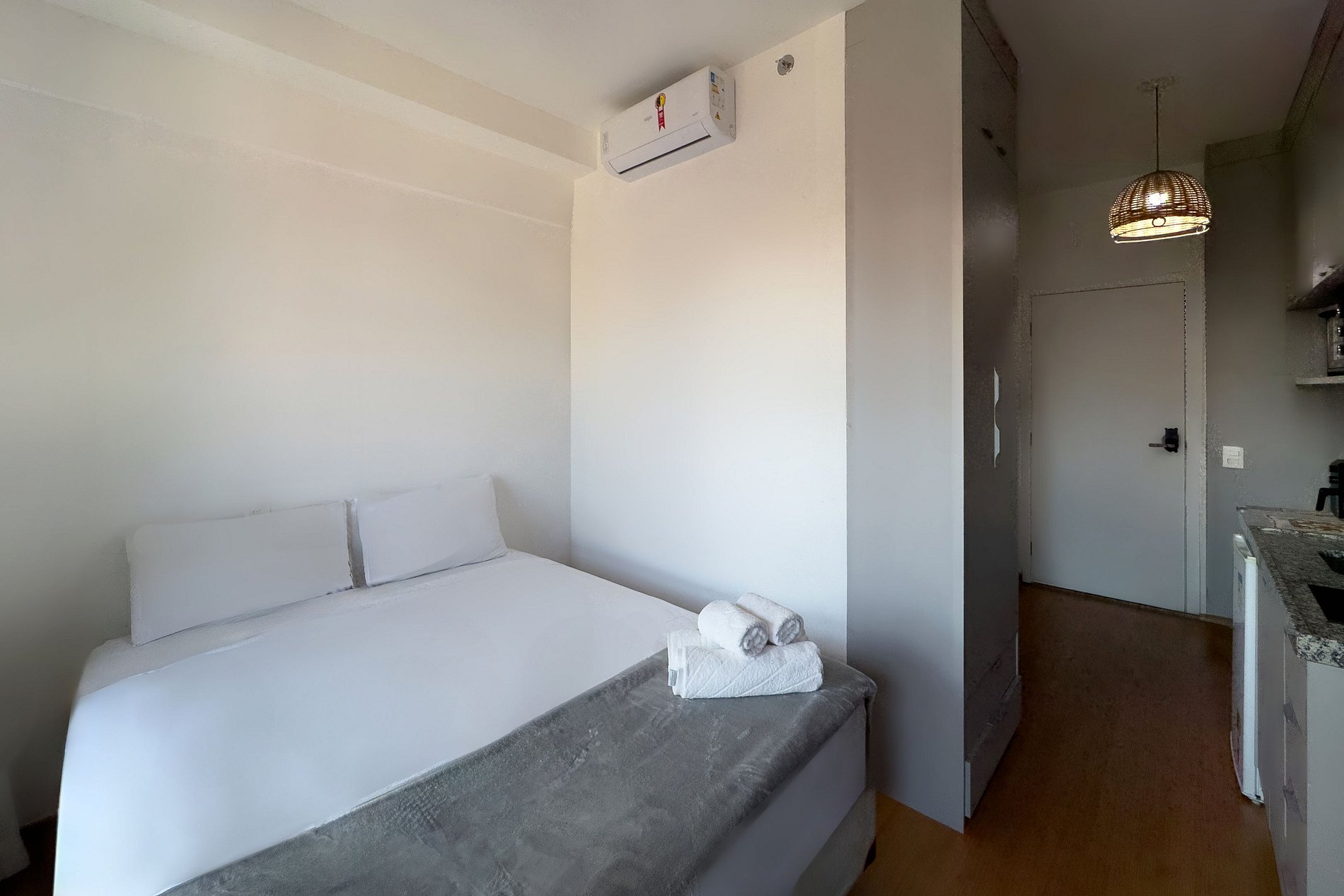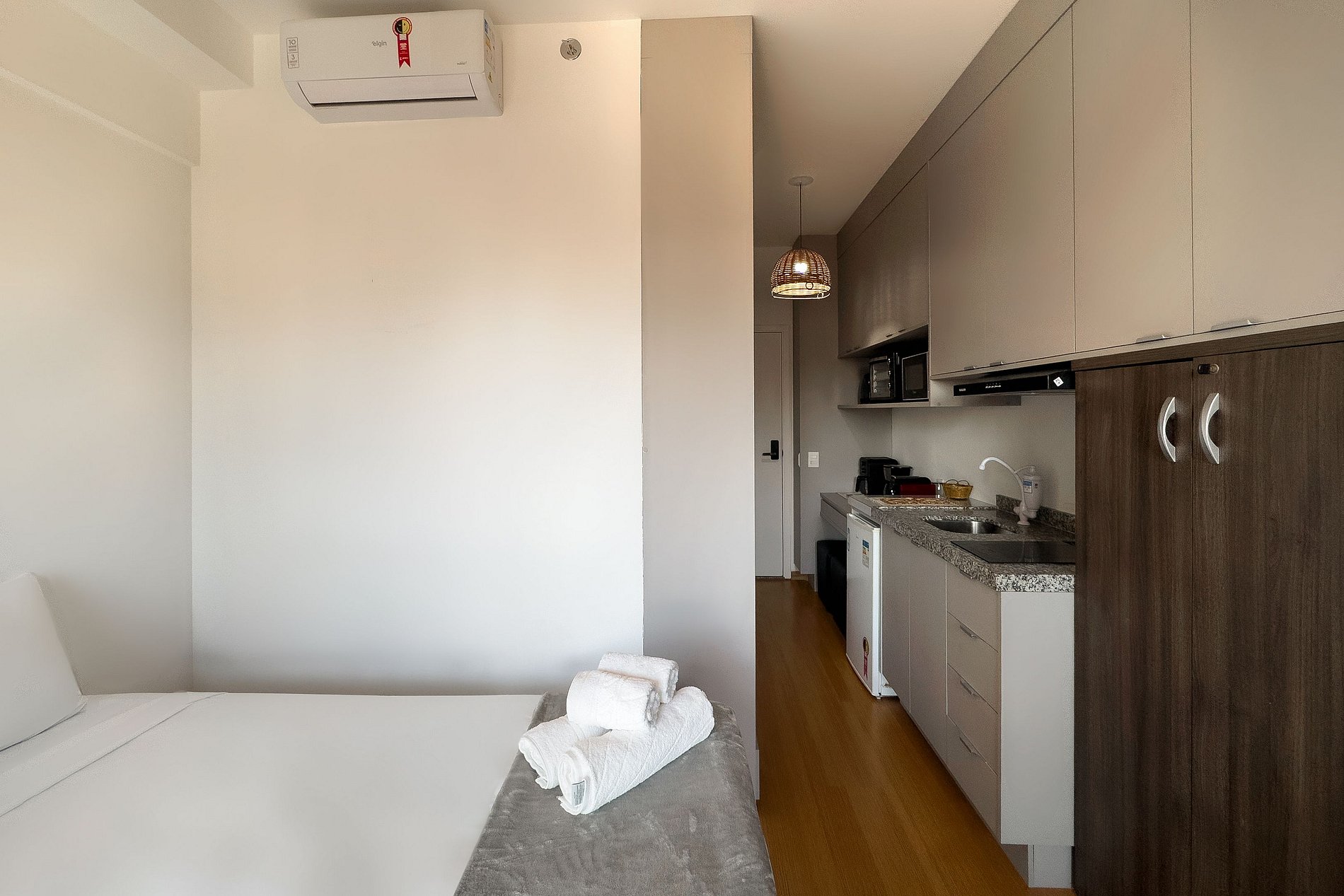 O apartamento possui uma cama de casal, cozinha completa com geladeira, micro-ondas, fogão de indução (2 bocas), air-fryer, forninho, cafeteira nespresso para home office, cafeteira para pó, chaleira elétrica, sanduicheira, liquidificador, utensílios básicos de cozinha, taças de vinho, filtro de água. Mesa com 2 cadeiras internas, guarda-roupa, TV. Banheiro com ótimo chuveiro (água quente e fria). Será fornecido um jogo de enxoval (lençóis, travesseiros, fronhas e toalhas de banho e rosto) por hóspede. Não há trocas durante a permanência. Também é possível deixar um kit de enxovais extra com o pagamento de uma taxa adicional! Outras observações: Ao redor do endereço Rua Coronel Lisboa, 805, você encontrará uma variedade de opções para tornar sua estadia cada vez mais agradável: