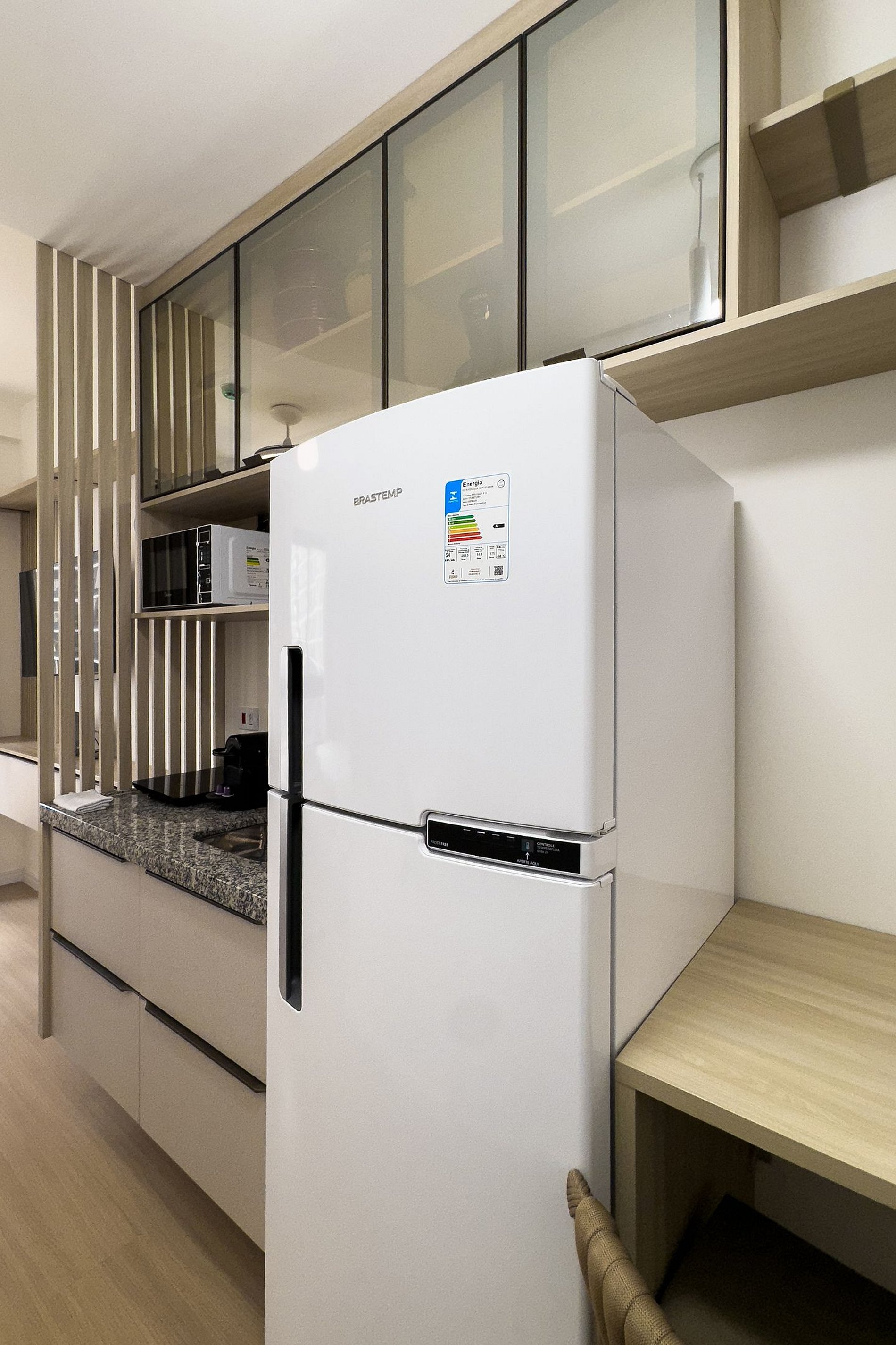 O apartamento dispõe de uma cama casal (1,38m x 1,88m) e uma cozinha completa, equipada com geladeira, freezer, micro-ondas, fogão de indução, taças de vinho, cafeteira nespresso . Além disso, conta com mesa e duas cadeiras internas, guarda-roupa, TV e um banheiro com excelente chuveiro (água quente e fria) alem de ferro de passar roupa e secador de cabelo. Será fornecido um jogo de enxoval por hóspede, incluindo lençóis, travesseiros, fronhas e toalhas de banho e rosto. Não há trocas durante a estadia, porém, é possível disponibilizar um kit de enxoval extra mediante o pagamento de uma taxa adicional. Outras Observações O apartamento está localizado na Rua Coronel Lisboa, 805, em uma região com diversas opções para tornar sua estadia ainda mais agradável: