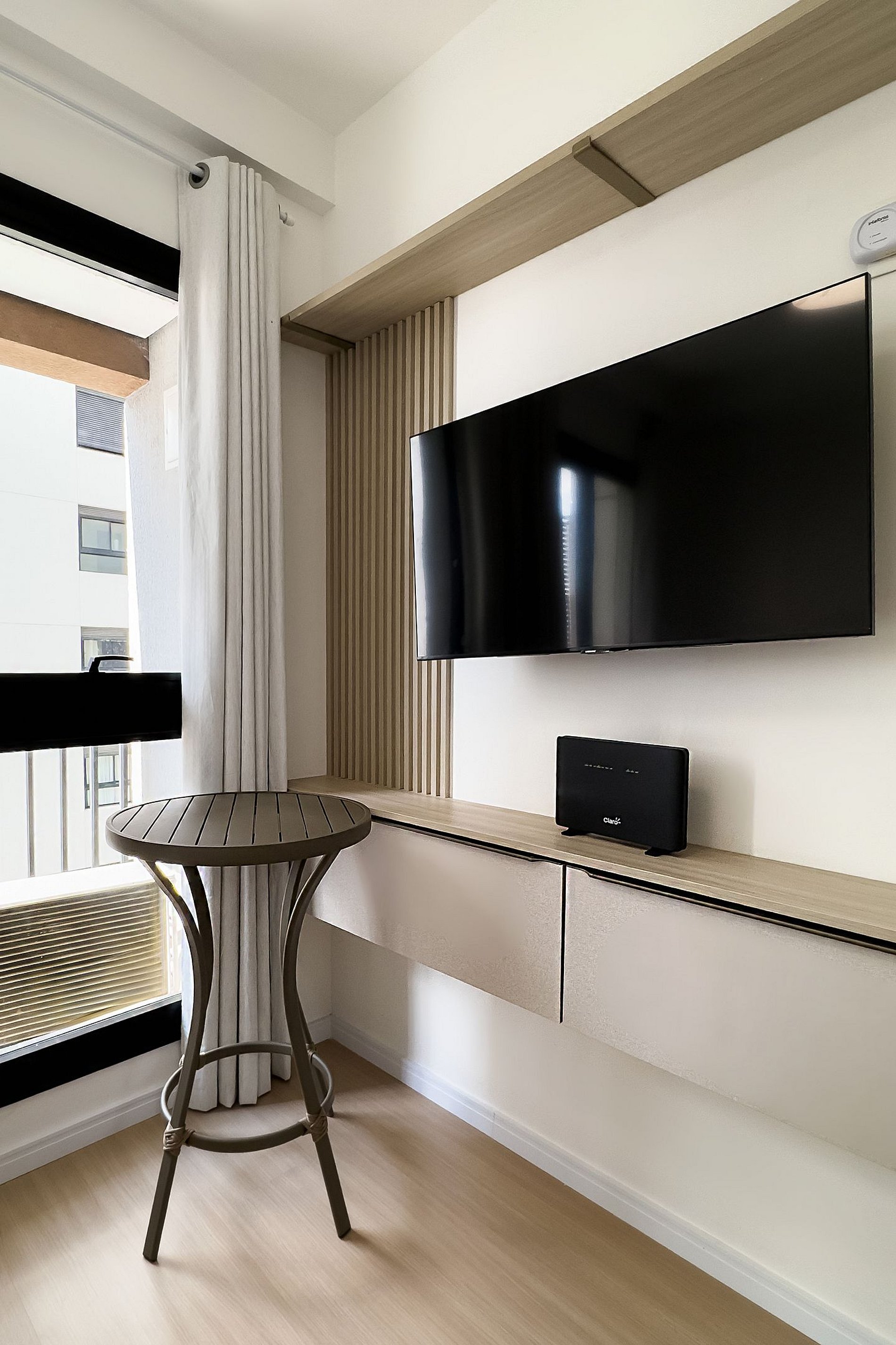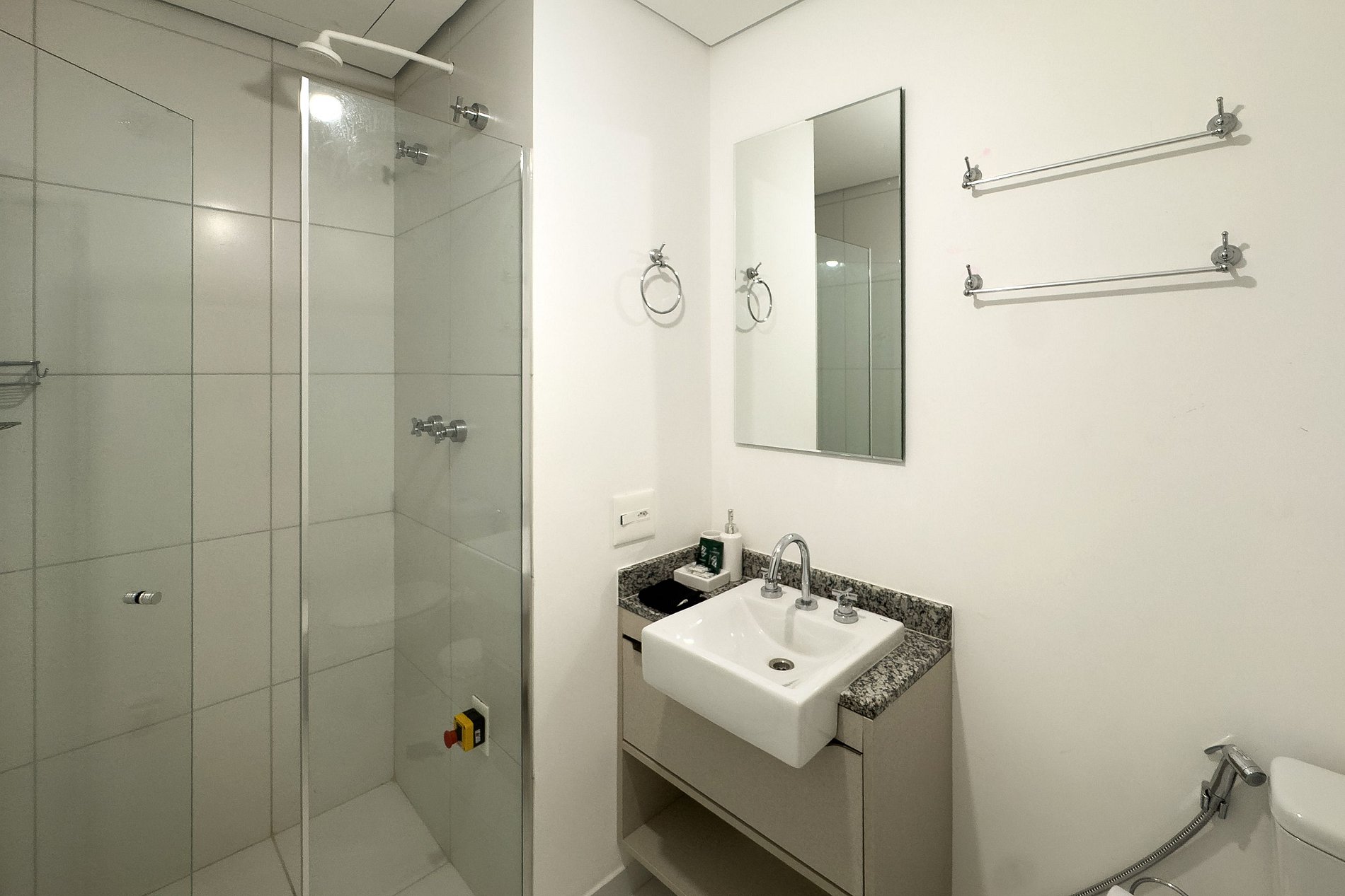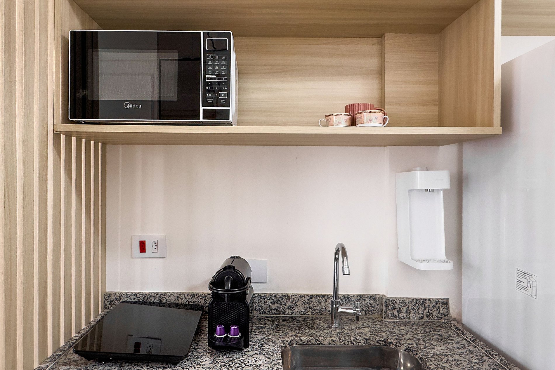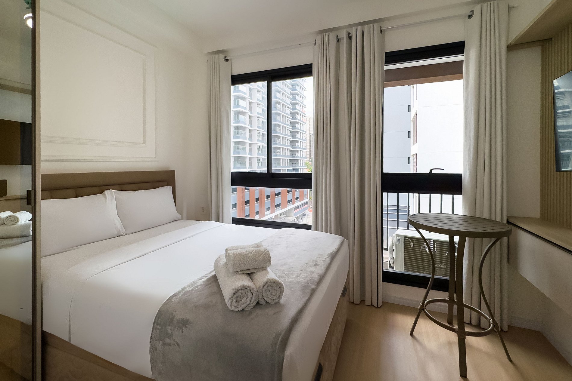 O apartamento dispõe de uma cama casal (1,38m x 1,88m) e uma cozinha completa, equipada com geladeira, freezer, micro-ondas, fogão de indução, taças de vinho, cafeteira nespresso . Além disso, conta com mesa e duas cadeiras internas, guarda-roupa, TV e um banheiro com excelente chuveiro (água quente e fria) alem de ferro de passar roupa e secador de cabelo. Será fornecido um jogo de enxoval por hóspede, incluindo lençóis, travesseiros, fronhas e toalhas de banho e rosto. Não há trocas durante a estadia, porém, é possível disponibilizar um kit de enxoval extra mediante o pagamento de uma taxa adicional. Outras Observações O apartamento está localizado na Rua Coronel Lisboa, 805, em uma região com diversas opções para tornar sua estadia ainda mais agradável: