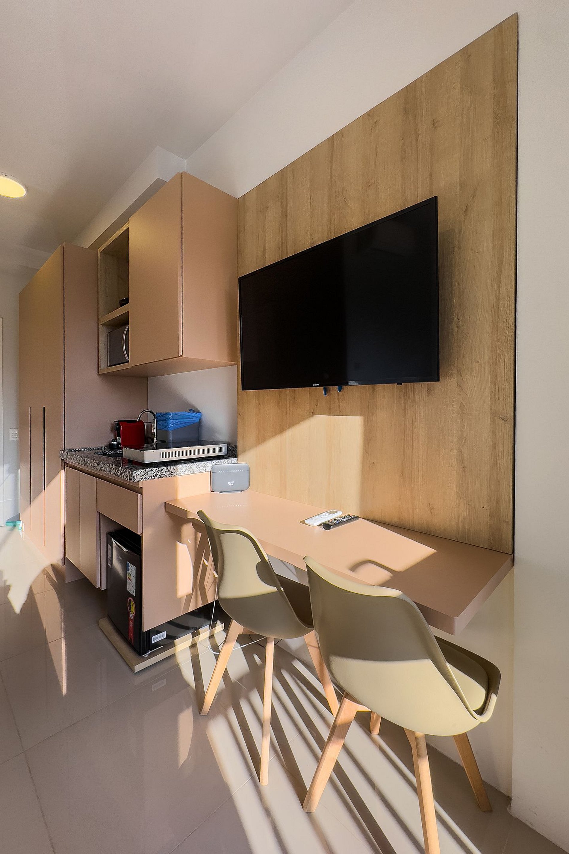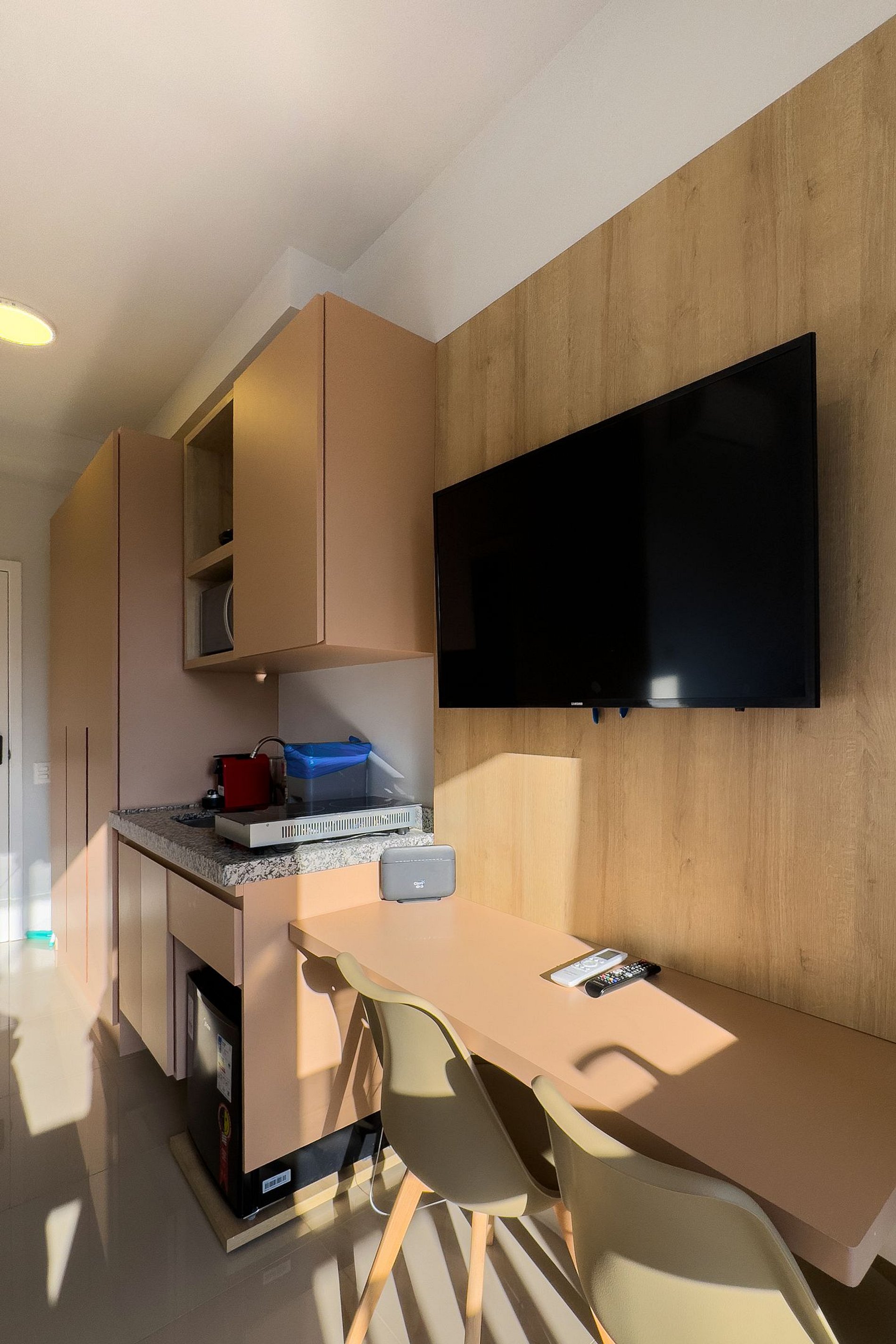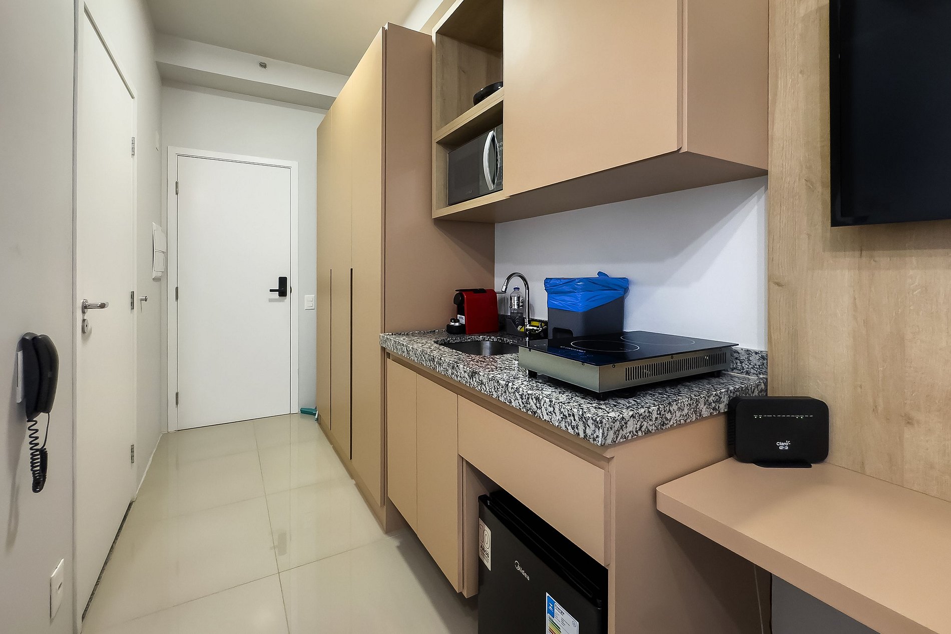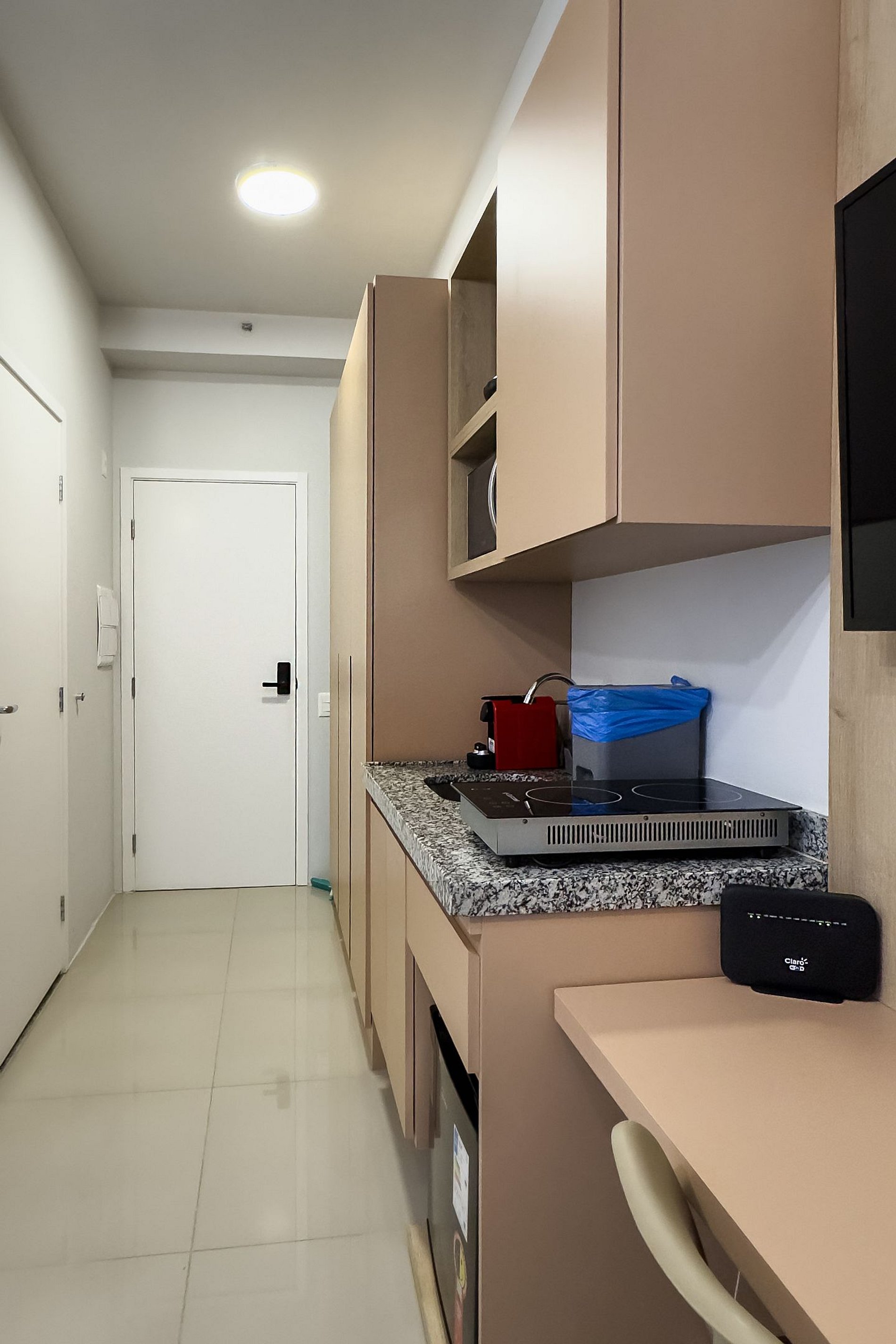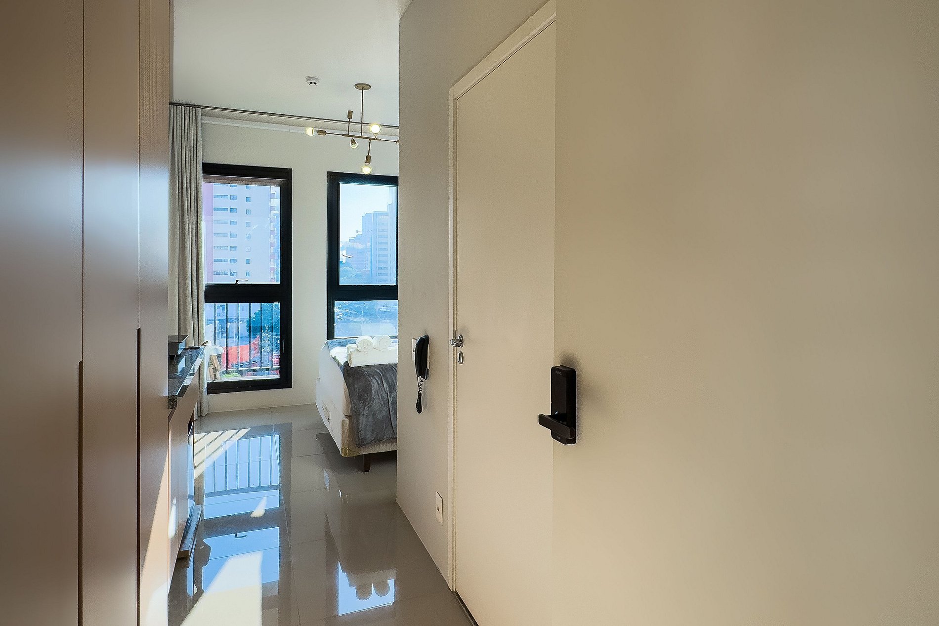É necessário realizar Cadastrona portaria para garantir a sua segurança. Código de acesso ao studio será enviado 1 dia antes do check in. Acesso a todas áreas do comuns do condomínio, como: , lavanderia coletiva paga , academia e rooftop.