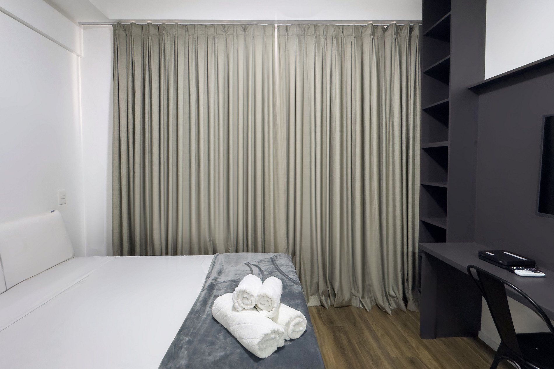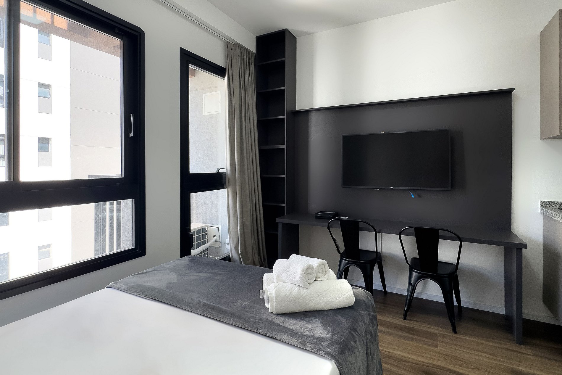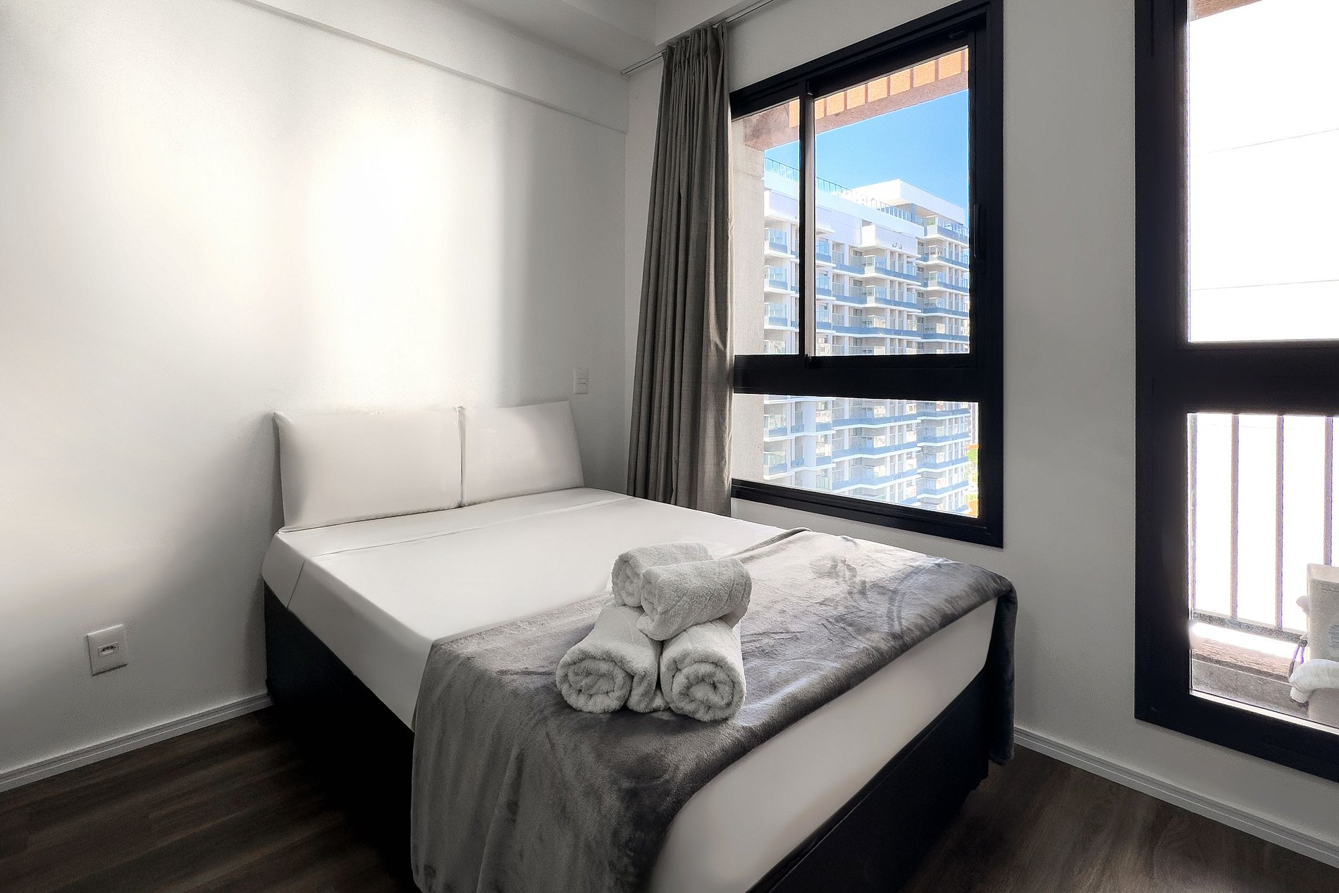O apartamento dispõe de uma cama casal (1,38m x 1,88m) e uma cozinha completa, equipada com geladeira, freezer, micro-ondas, fogão de indução, taças de vinho, cafeteira Dolce Gusto, filtro de água, forno. Além disso, conta com mesa e duas cadeiras internas, guarda-roupa, TV e um banheiro com excelente chuveiro (água quente e fria) alem de ferro de passar roupa e secador de cabelo. Será fornecido um jogo de enxoval por hóspede, incluindo lençóis, travesseiros, fronhas e toalhas de banho e rosto. Não há trocas durante a estadia, porém, é possível disponibilizar um kit de enxoval extra mediante o pagamento de uma taxa adicional. Outras Observações O apartamento está localizado na Rua Coronel Lisboa, 805, em uma região com diversas opções para tornar sua estadia ainda mais agradável: