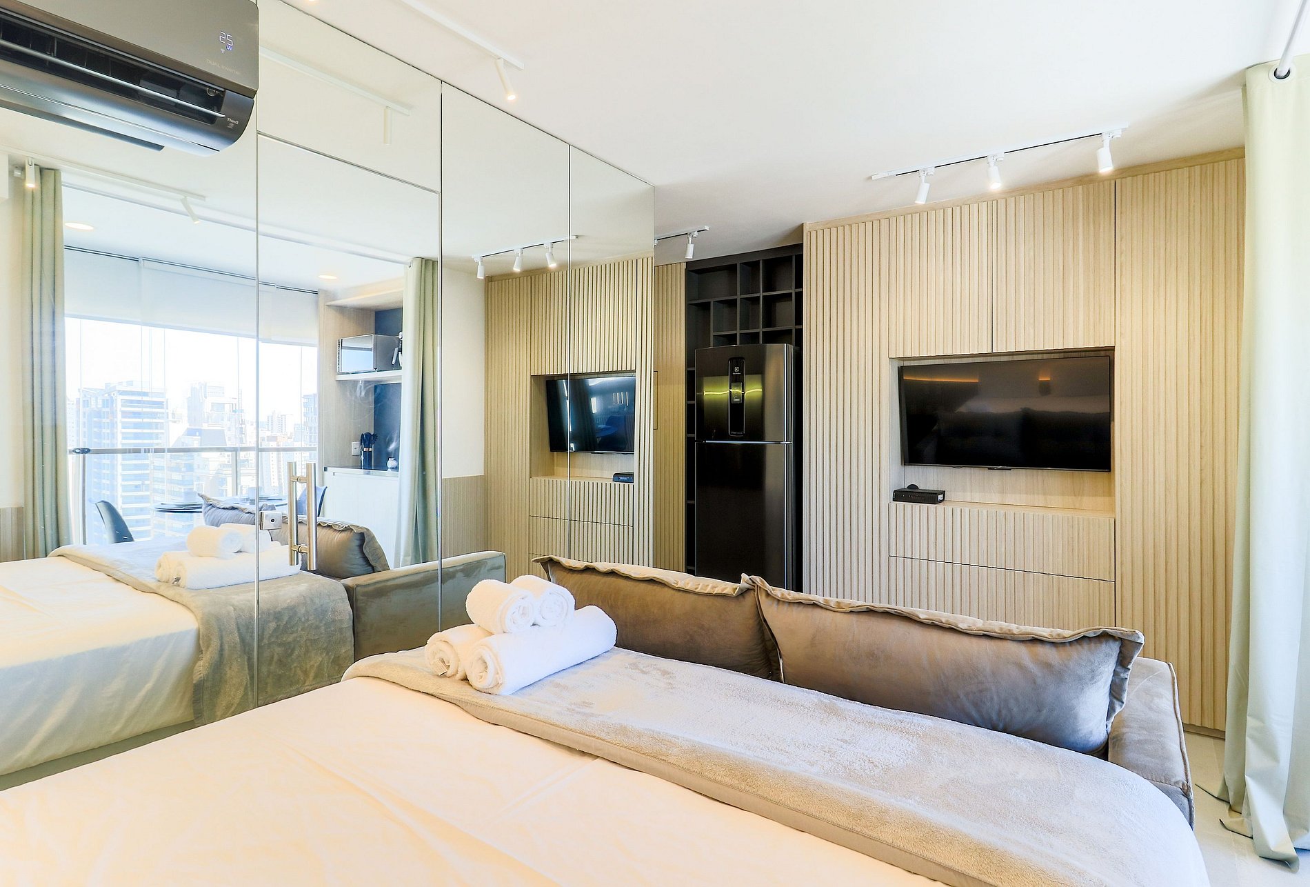 - Parque Ibirapuera: Em torno de 16 minutos de distância caminhando. Pontos positivos: Cartão postal de SP, o parque tem museus, planetário, auditórios e áreas de lazer com ciclovias e quadras.