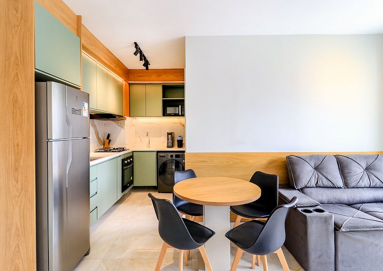 O apartamento possui 1 cama de casal padrão (1,38x1,88) 2 camas de solteiro no quarto 02 para atender um terceiro/quarto hóspede. Cozinha completa com geladeira, freezer, micro-ondas, fogão de (4 bocas), Nespresso, bancada para home office, guarda-roupa, secador de cabelo, ferro de passar, TV e banheiro com ótimo chuveiro (água quente e fria). Será fornecido um jogo de enxoval (lençóis, travesseiros, fronhas e toalhas de banho e rosto) por hóspede. Não há trocas durante a permanência.