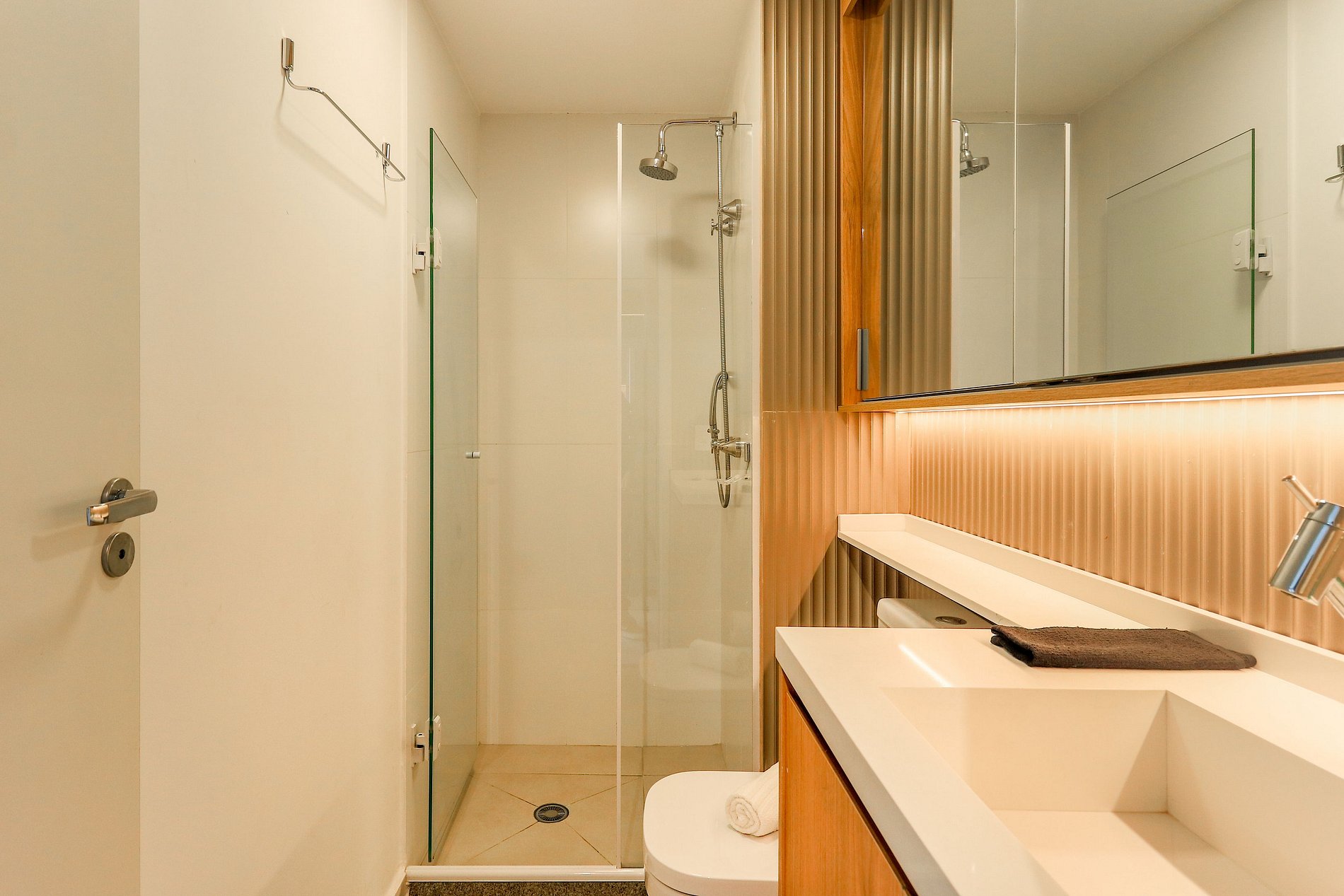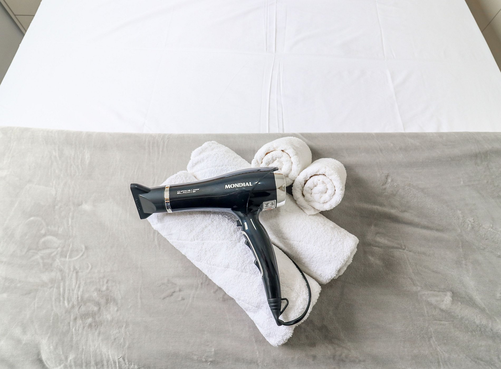O apartamento possui 1 cama de casal padrão (1,38x1,88) 2 camas de solteiro no quarto 02 para atender um terceiro/quarto hóspede. Cozinha completa com geladeira, freezer, micro-ondas, fogão de (4 bocas), Nespresso, bancada para home office, guarda-roupa, secador de cabelo, ferro de passar, TV e banheiro com ótimo chuveiro (água quente e fria). Será fornecido um jogo de enxoval (lençóis, travesseiros, fronhas e toalhas de banho e rosto) por hóspede. Não há trocas durante a permanência.