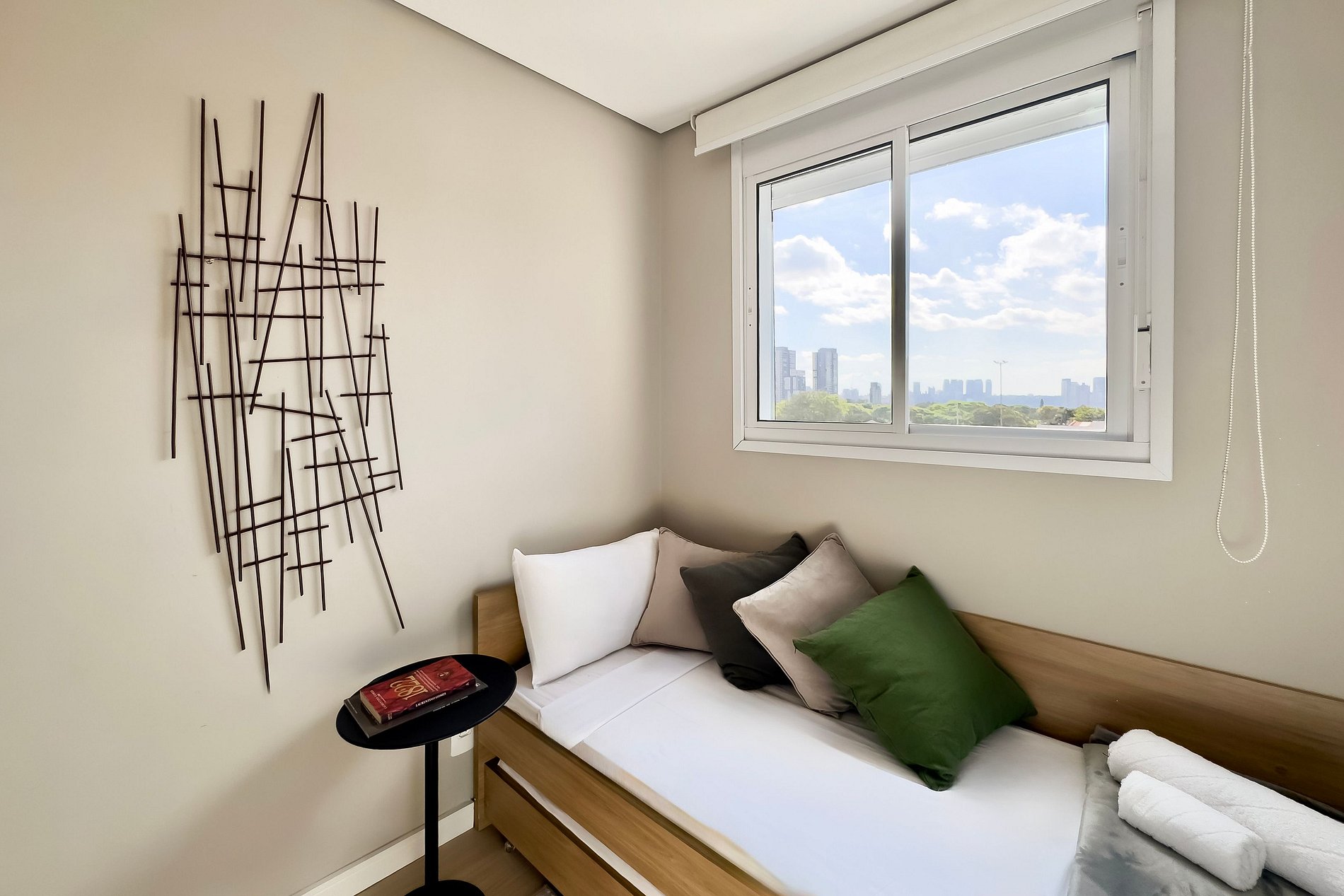Também é possível deixar um kit de enxovais extra com o pagamento de uma taxa adicional. Acesso do hóspede O acesso de hóspedes ocorre pela portaria principal do condomínio. Cadastro realizado por biometria. Código de acesso ao studio será enviado 1 dia antes do check-in. Acesso a todas áreas do comuns do condomínio, como: coworking, lavanderia coletiva, academia e piscina. Outras observações Ao redor do endereço Av. dos Carinás, 64 - Moema, em Moema, você encontrará uma variedade de opções para tornar sua estadia mais agradável.