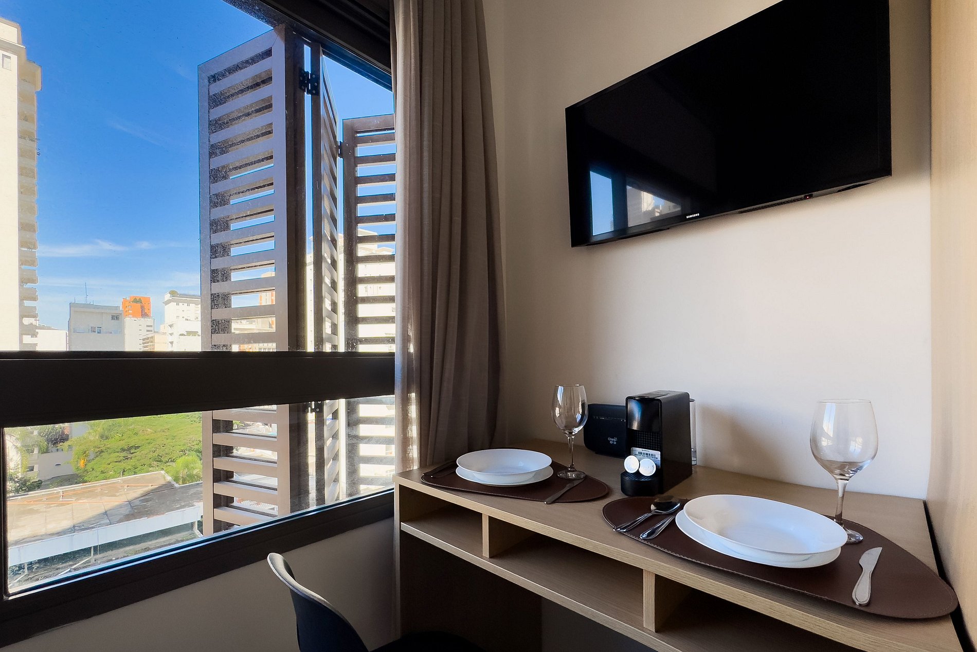 O apartamento conta com uma confortável cama de casal (1,38 x 1,88) e uma cama de solteiro ao lado (bicama), ar-condicionado duo (quente e frio) e uma cozinha completa equipada com geladeira, freezer, micro-ondas, fogão de indução, forno elétrico ,jogo de talheres e cafeteira Nespresso. Ideal para home office, o espaço dispõe de guarda-roupa, mesa de trabalho com dois banco. Também estão disponíveis secador de cabelo, ferro de passar, TV e um banheiro com ótimo chuveiro (com água quente e fria). Será fornecido um jogo de enxoval por hóspede, incluindo lençóis, travesseiros, fronhas e toalhas de banho. Outras Observações Localizado na Rua Augusta 2854, o apartamento está cercado por uma ampla variedade de opções que tornam a estadia ainda mais agradável:
