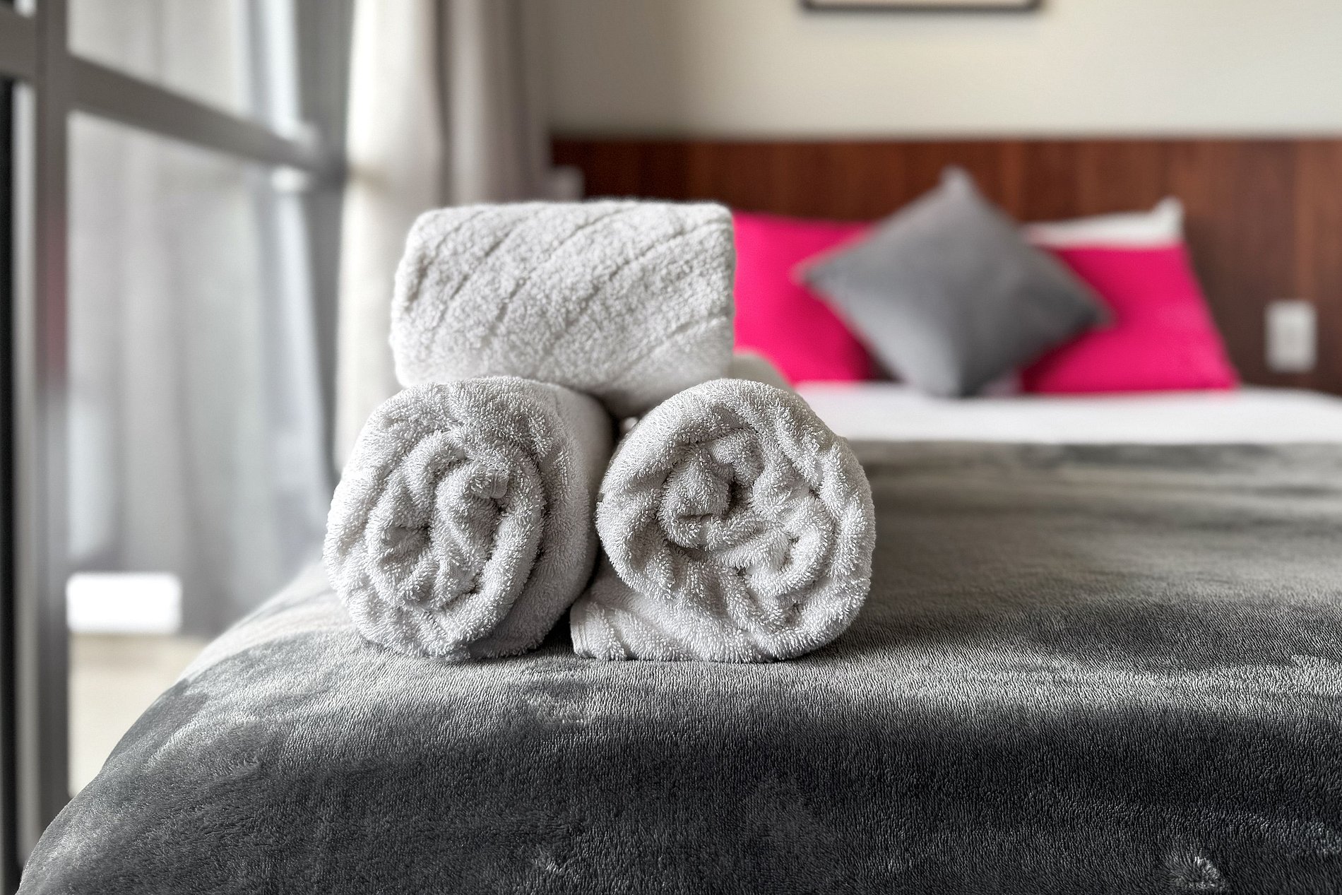 É fornecido um jogo de enxoval por hóspede, incluindo lençóis, travesseiros, fronhas e toalhas de banho.