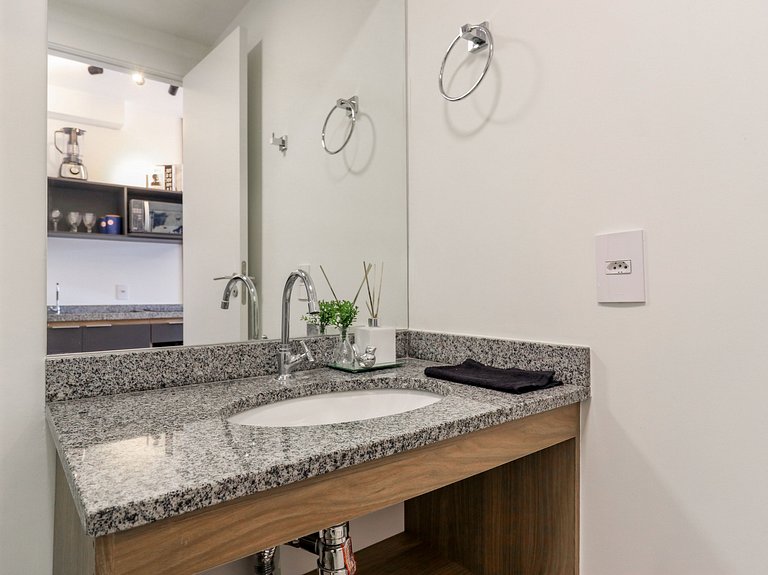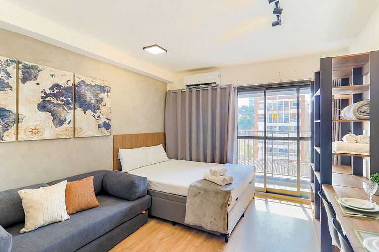 O apartamento possui 1 cama de casal (1,38x1,88), sofá cama e ar-condicionado. Cozinha completa com geladeira, freezer, micro-ondas, fogão de indução, jogo de talheres, air fryer, cafeteira elétrica para home office, liquidificador, guarda-roupa, mesa, 2 Cadeira Internas, TV e banheiro com ótimo chuveiro (água quente e fria). Será fornecido um jogo de enxoval (lençóis, travesseiros, fronhas e toalhas de banho) por hóspede. A região de Pinheiros é rica em opções gastronômicas e de conveniência, tornando-a ideal para quem busca variedade e qualidade próximas à Rua Cristiano Viana 1216 . alem disso alguns pontos próximo como :