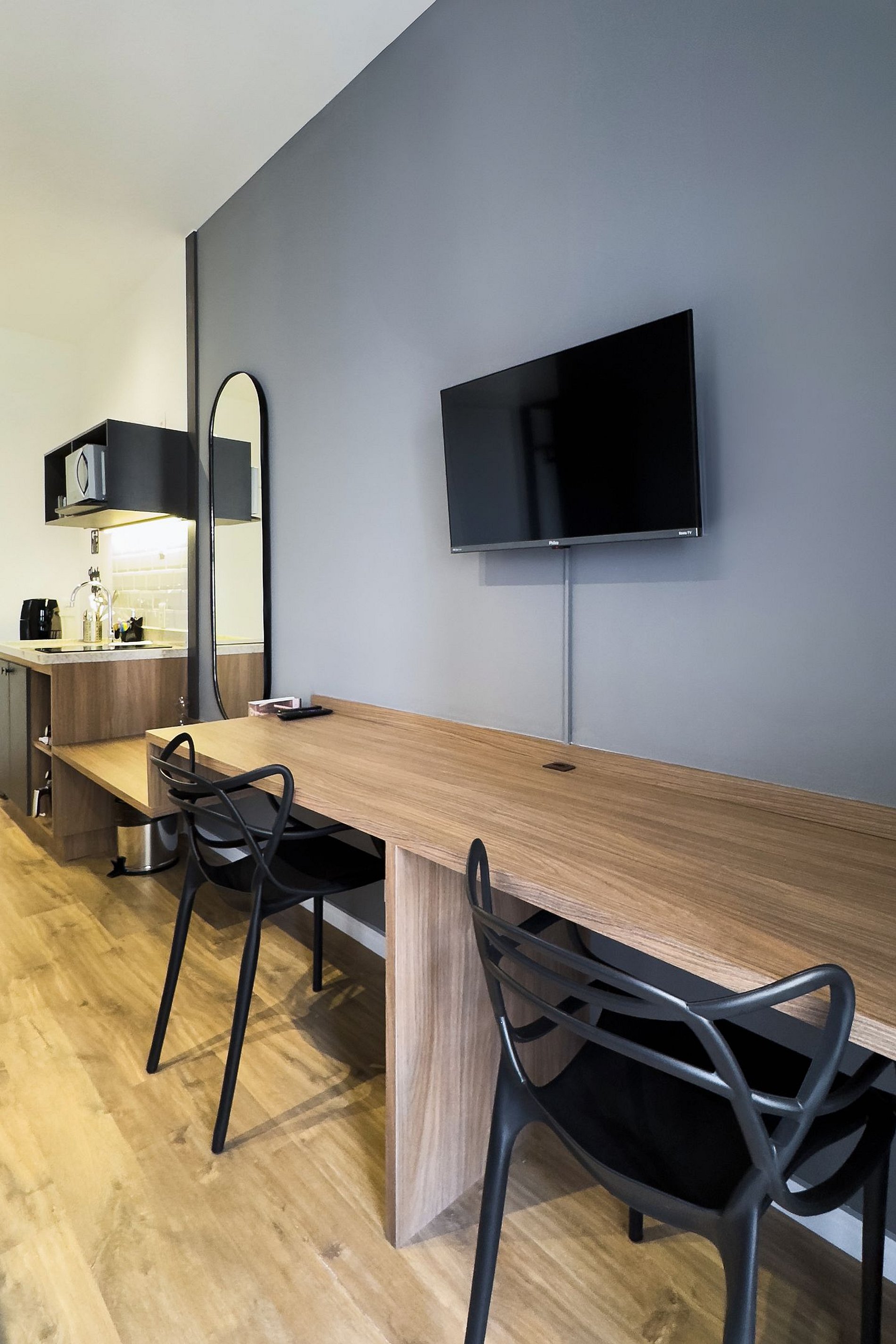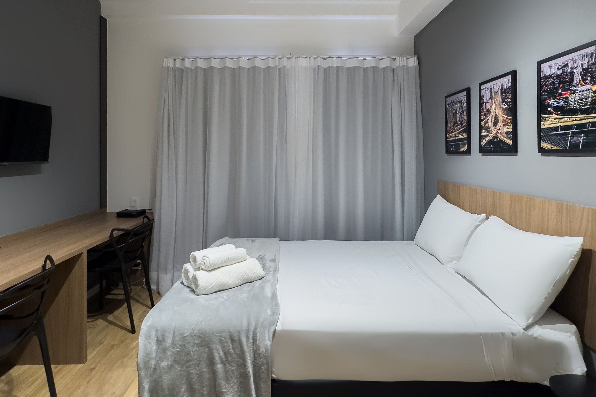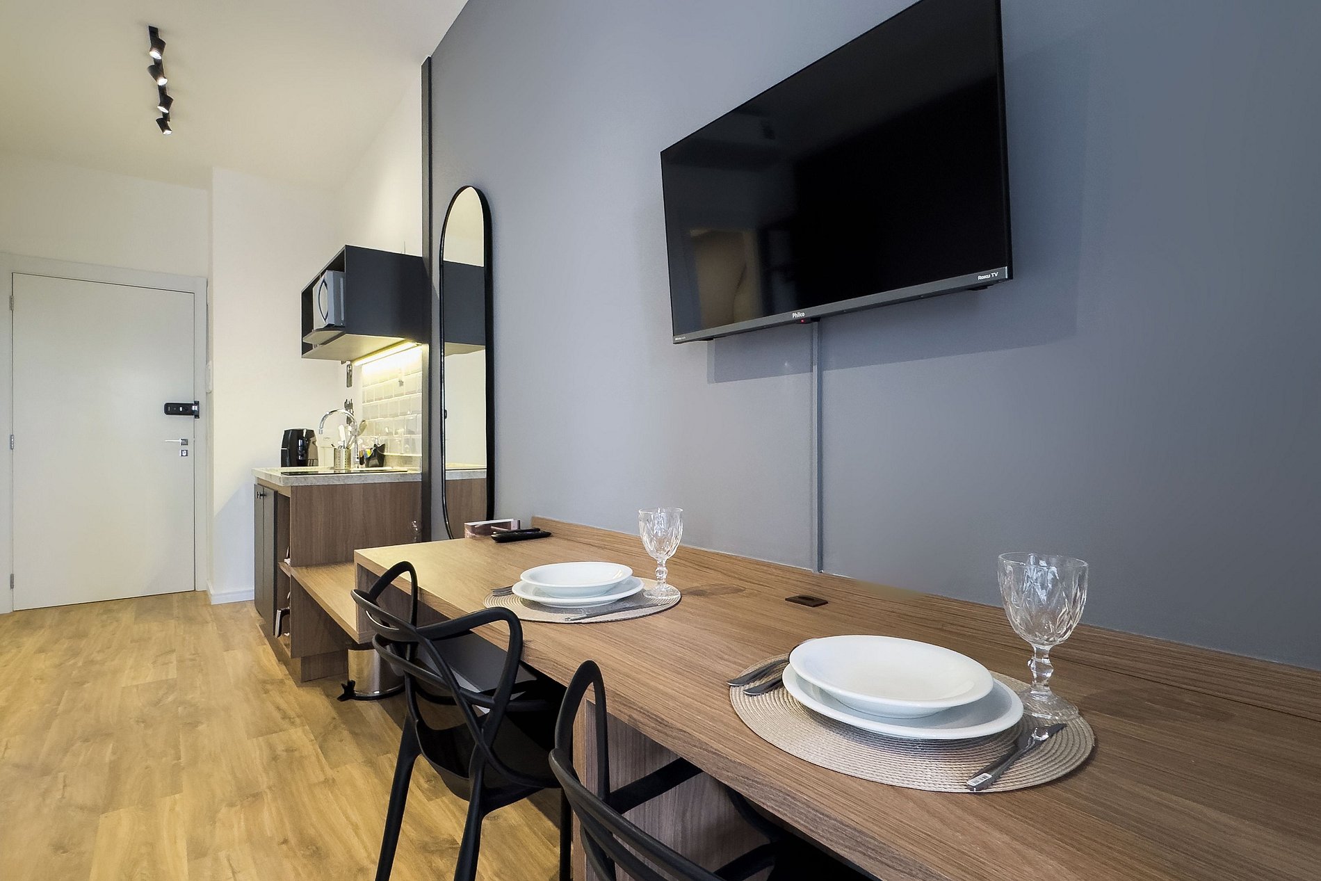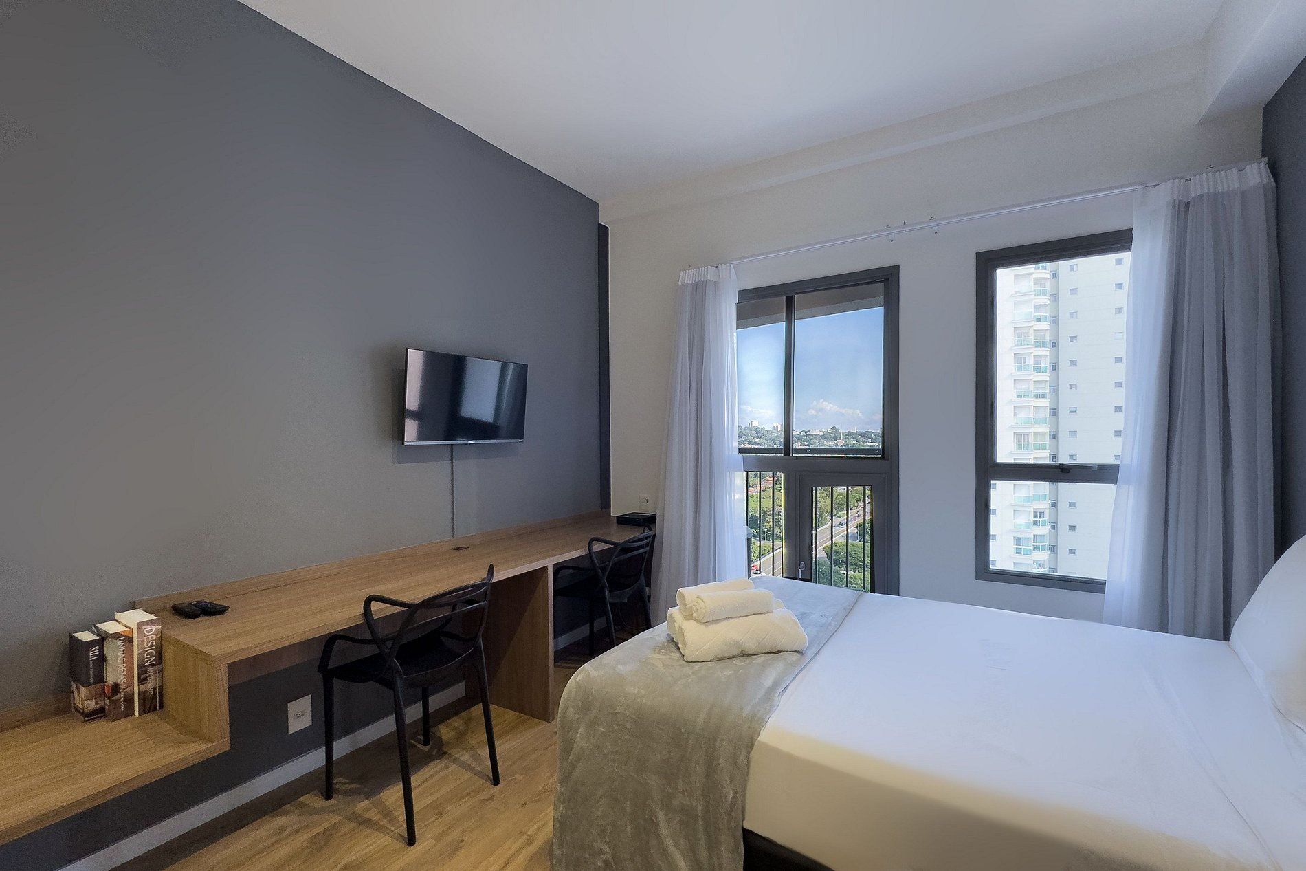O apartamento possui 1 cama casal padrão (1,38x1,88), e ar-condicionado. Cozinha completa com frigobar, micro-ondas, fogão de indução, jogo de talheres, cafeteira Dulce gusto para home office, filtro de agua potável, Liquidificador guarda-roupa, mesa, 2 Cadeira Interna, Cortina Black out TV com 2 cadeiras , AirFrier, banheiro com ótimo chuveiro (água quente e fria). Será fornecido um jogo de enxoval (lençóis, travesseiros, fronhas e toalhas de banho) por hóspede. Outras observações Ao redor do endereço R. Sebastião Gomes, 71 você encontrará uma variedade de opções para tornar sua estadia cada vez mais agradável;