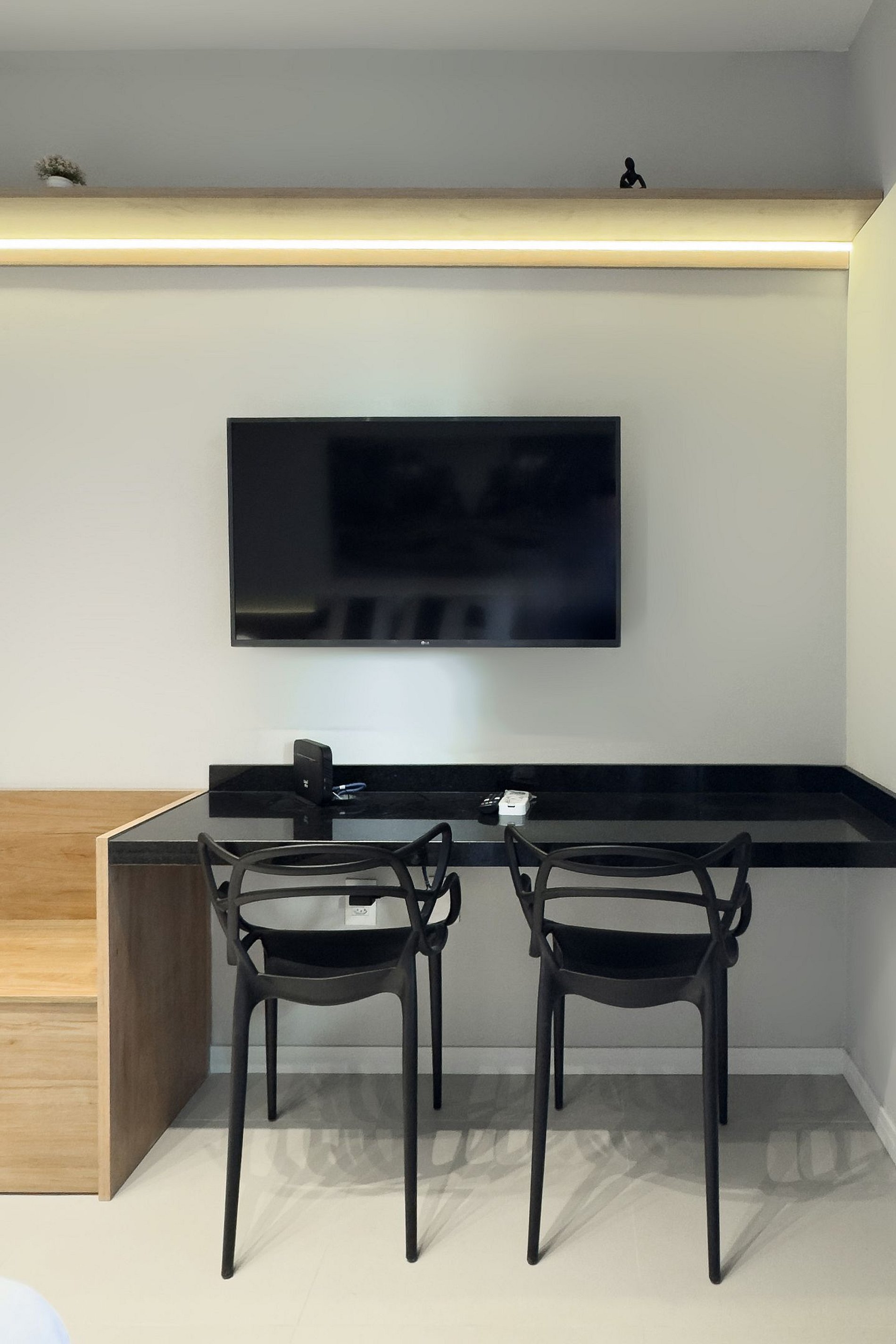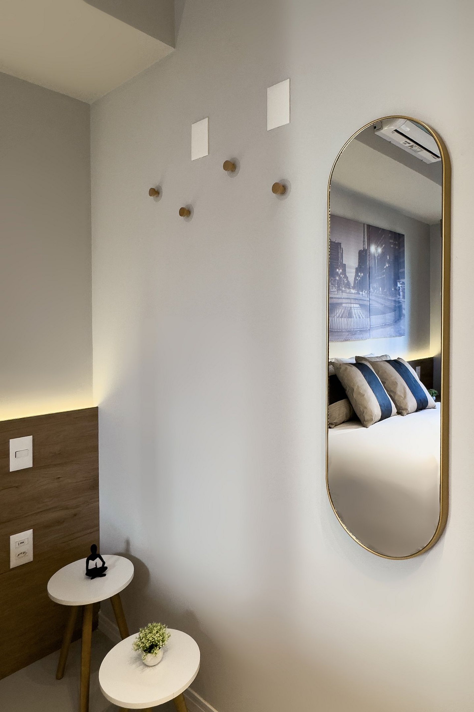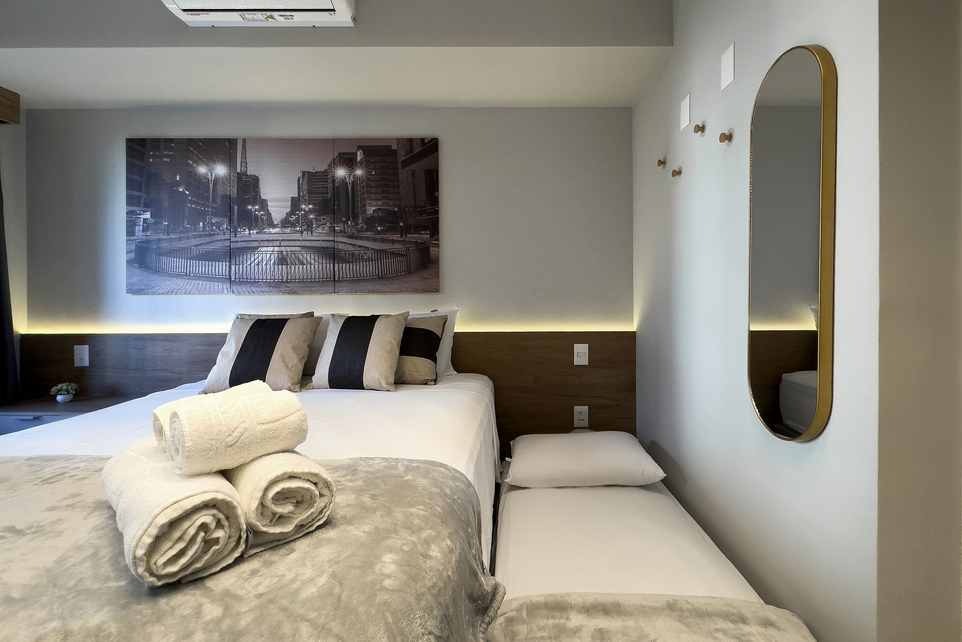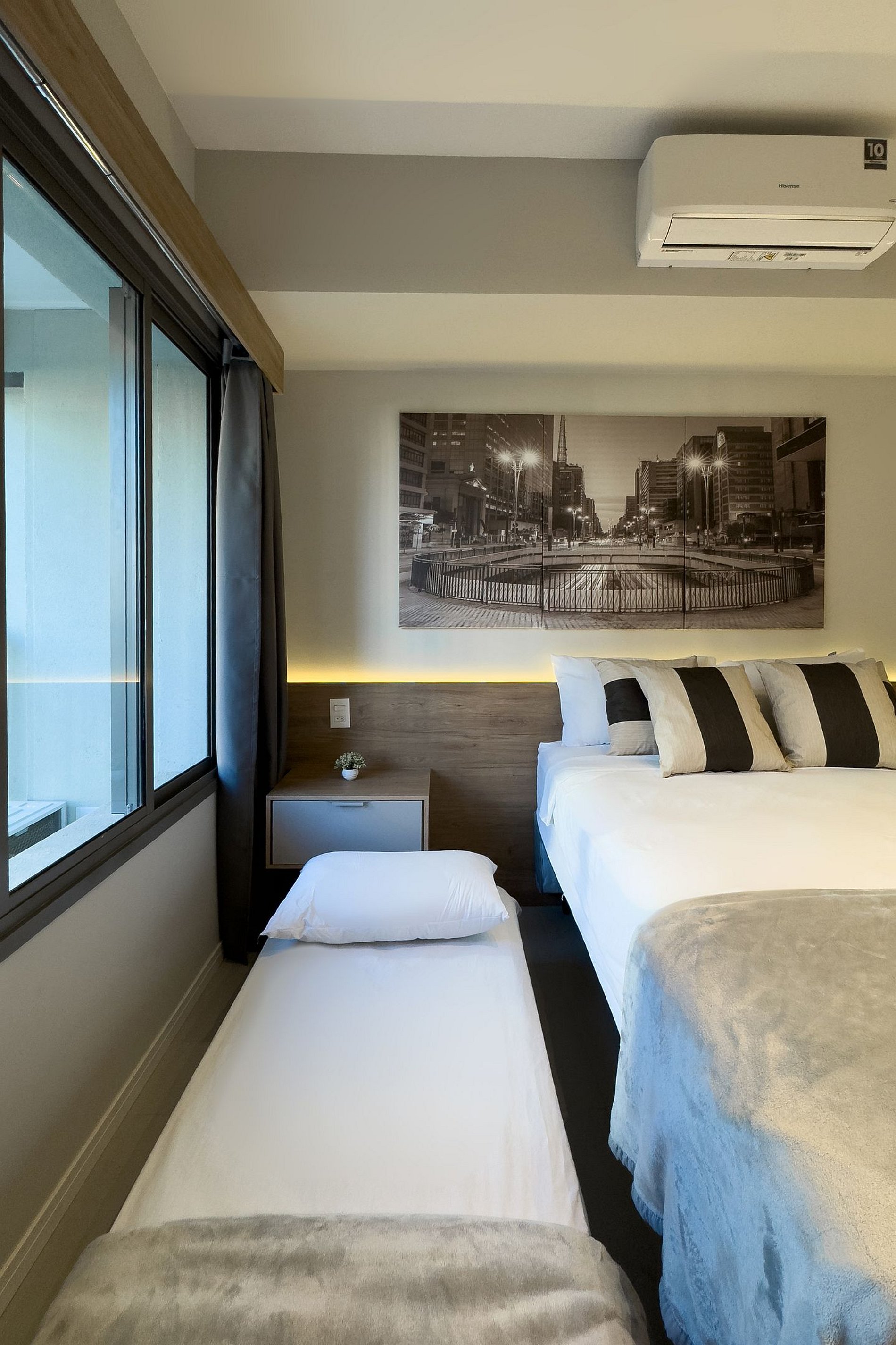 O apartamento possui 1 cama de casal Queen (1,58x1,98), 2 camas bi-camas de solteiro e ar-condicionado. Cozinha completa com geladeira, freezer, micro-ondas, fogão de indução, jogo de talheres, air fryer, cafeteira elétrica para home office, guarda-roupa, mesa, 2 Cadeira Interna, TV e banheiro com ótimo chuveiro (água quente e fria). Será fornecido um jogo de enxoval (lençóis, travesseiros, fronhas e toalhas de banho) por hóspede. Outras observações Ao redor do Edidício você encontrará uma variedade de opções para tornar sua estadia cada vez mais agradável;