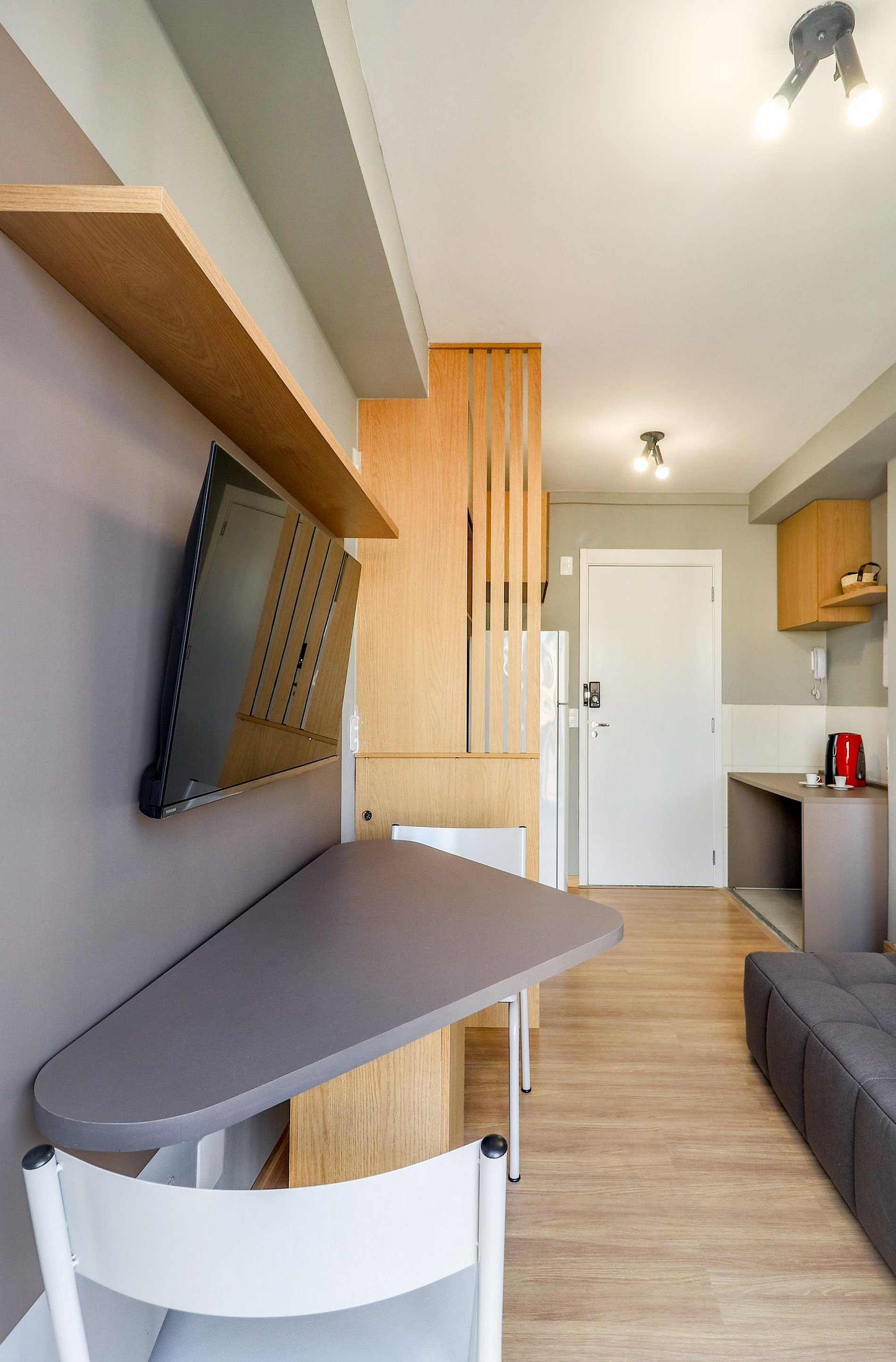 O apartamento possui 1 cama de casal padrão (1,38x1,88), ar-condicionado. Cozinha completa com geladeira, freezer, micro-ondas, fogão de indução, jogo de talheres, cafeteira nespresso para home office, guarda-roupa, mesa, 2 Cadeira Interna, TV na sala e quarto. banheiro com ótimo chuveiro (água quente e fria). Será fornecido um jogo de enxoval (lençóis, travesseiros, fronhas e toalhas de banho) por hóspede. Outras observações Ao redor do endereço você encontrará uma variedade de opções para tornar sua estadia cada vez mais agradável;