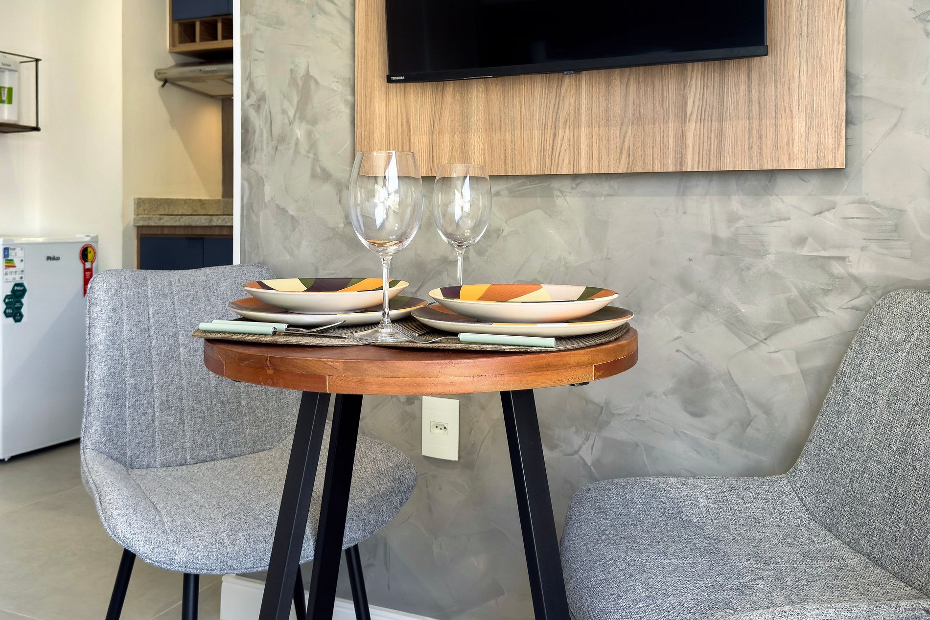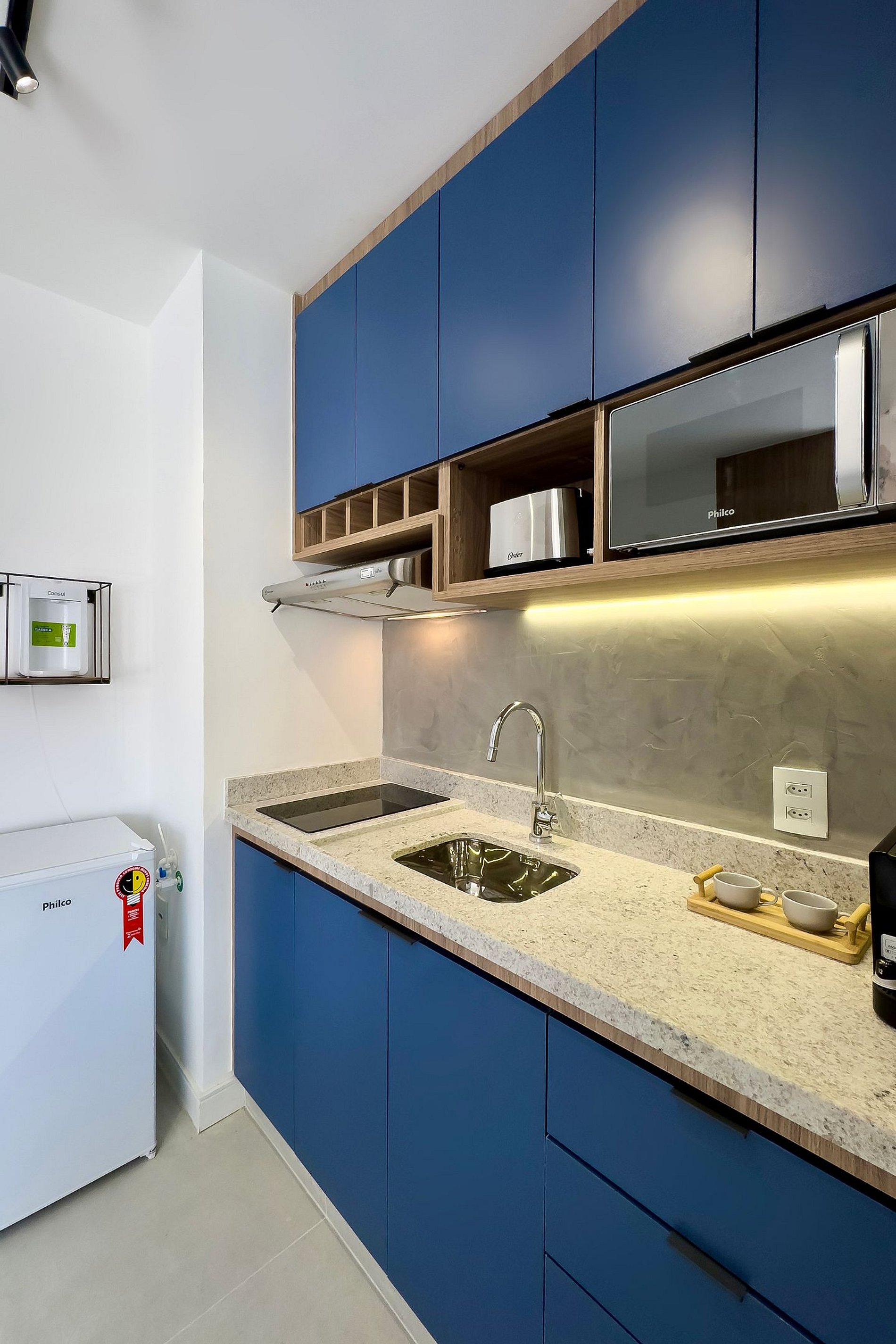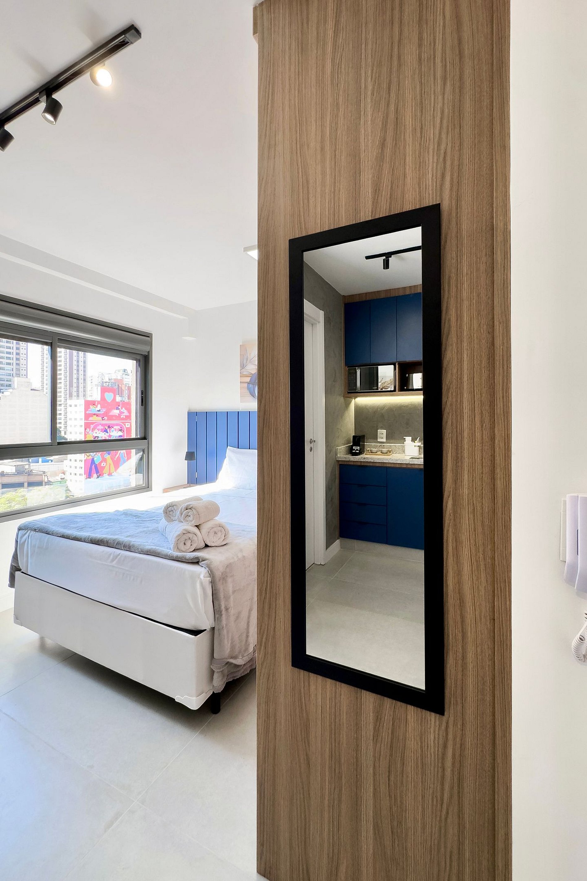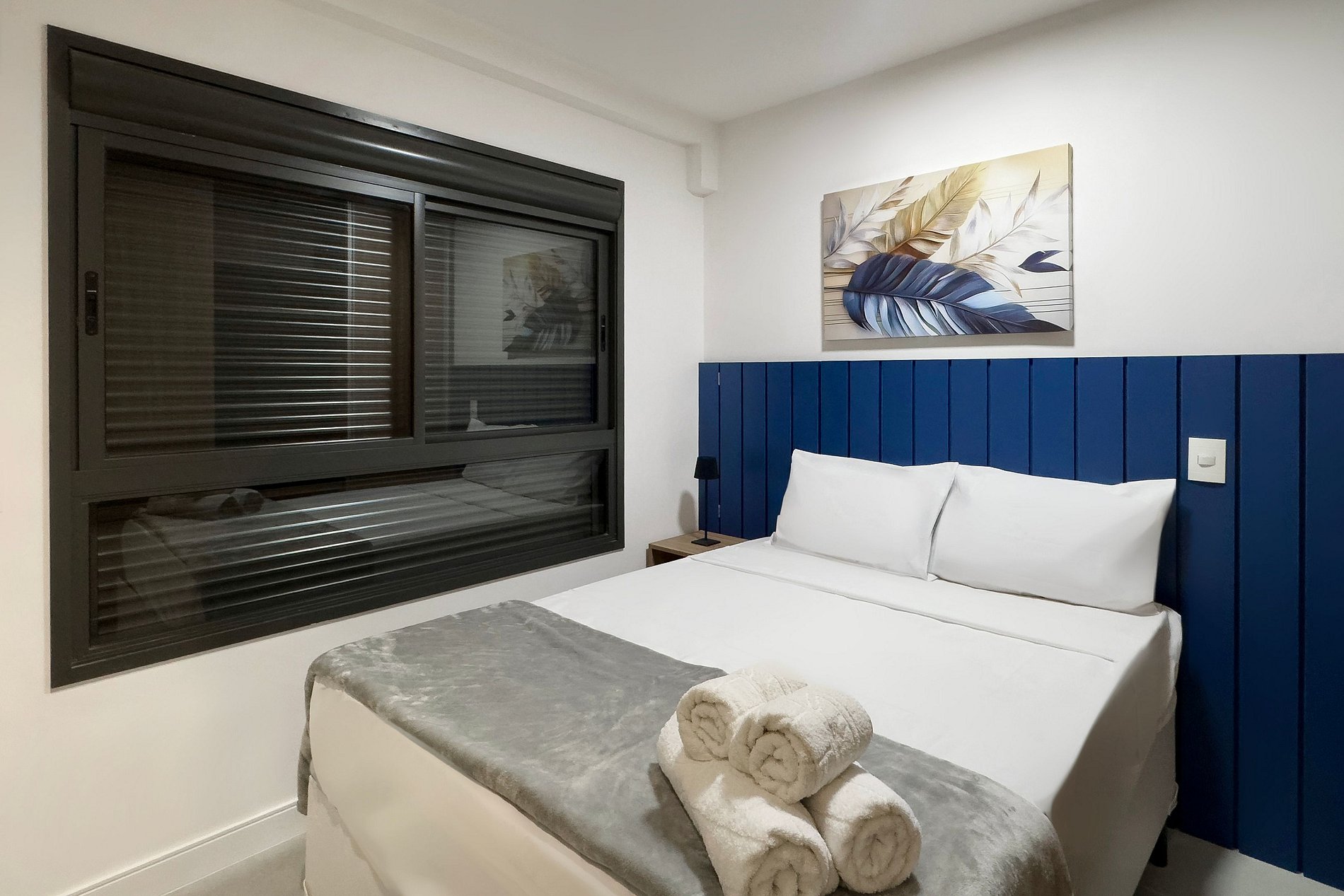 O apartamento possui 1 cama de casal (1,38x1,88), e ar-condicionado. Cozinha completa com frigobar , freezer, micro-ondas, fogão de indução, jogo de talheres, cafeteira nespresso para home office, Misteira , filtro de agua potável, Liquidificador guarda-roupa, secador de cabelo, ferro de passar ,mesa, 2 Cadeira Interna, Cortina Black out TV com 2 banquetas , banheiro com ótimo chuveiro (água quente e fria). Será fornecido um jogo de enxoval (lençóis, travesseiros, fronhas e toalhas de banho) por hóspede. Outras observações Ao redor do endereço R. Iperoig você encontrará uma variedade de opções para tornar sua estadia cada vez mais agradável;