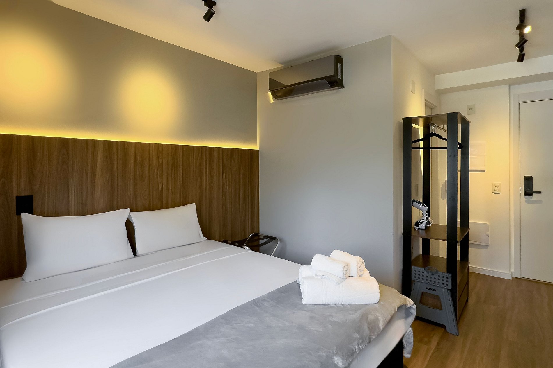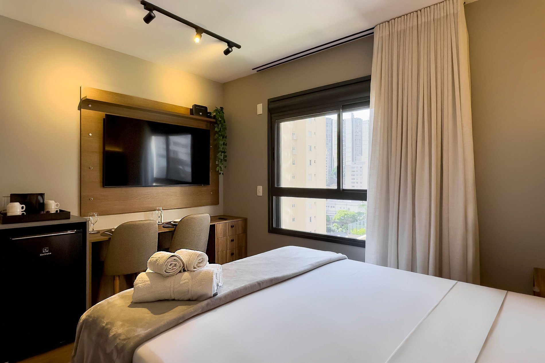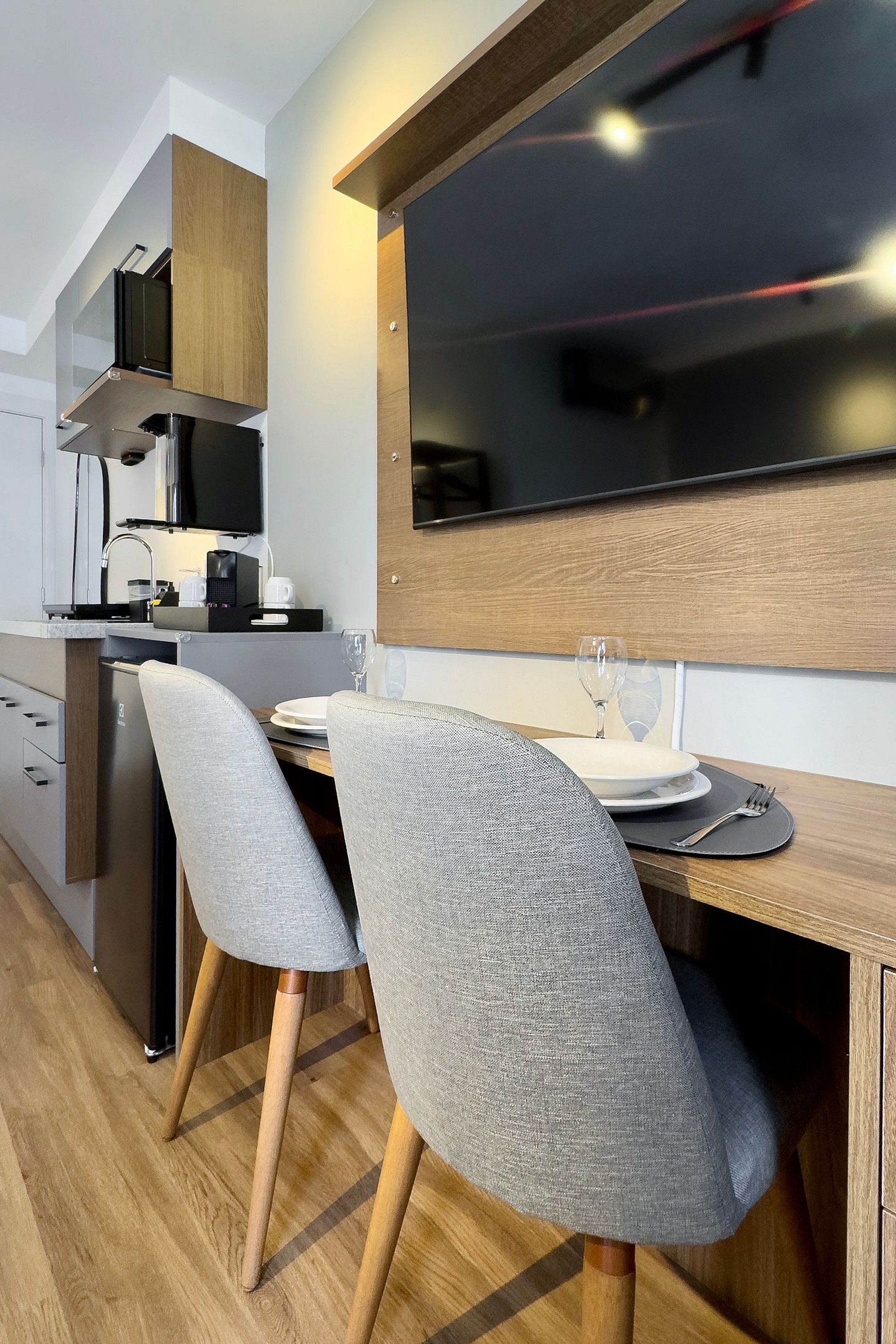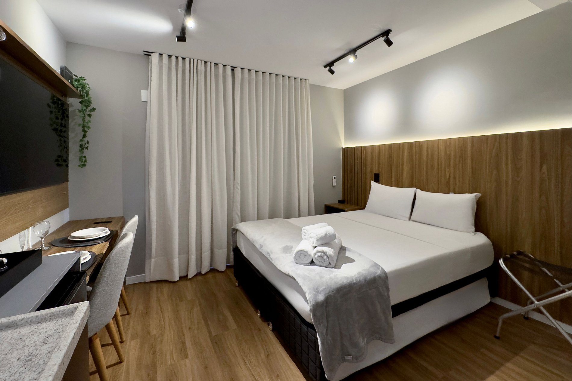 O apartamento possui 1 cama de casal Queen (1,58x1,98) e uma bi cama de solteiro alem ar-condicionado. Cozinha completa com frigobar , freezer, micro-ondas, fogão de indução, jogo de talheres, cafeteira nespresso para home office, sanduicheira , filtro de agua potável, Airfrier , guarda-roupa, secador de cabelo, ferro de passar , mesa, 2 Cadeiras , Cortina Black out TV , banheiro com ótimo chuveiro (água quente e fria).O apartamento é automatizado com Alexa para maior conforto. Será fornecido um jogo de enxoval (lençóis, travesseiros, fronhas e toalhas de banho) por hóspede. Outras observações Ao redor do endereço R. Iperoig você encontrará uma variedade de opções para tornar sua estadia cada vez mais agradável;