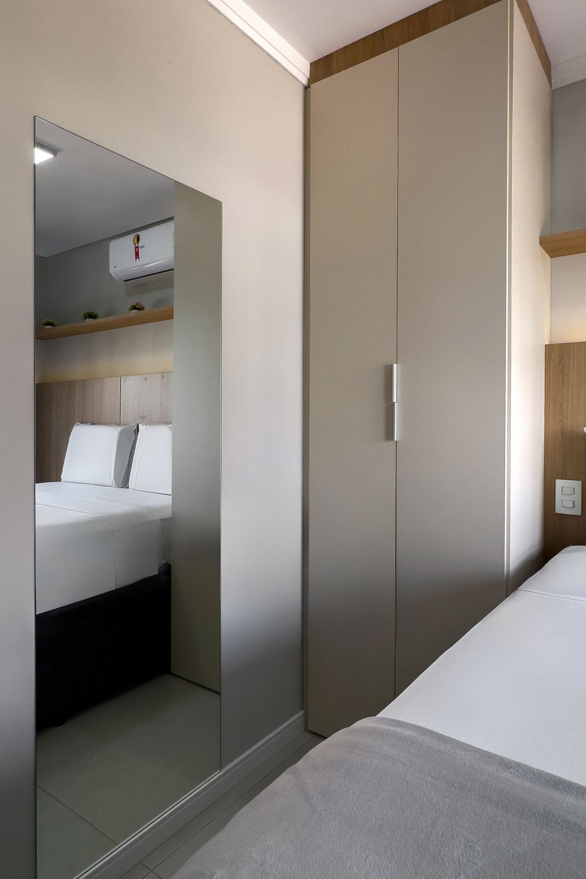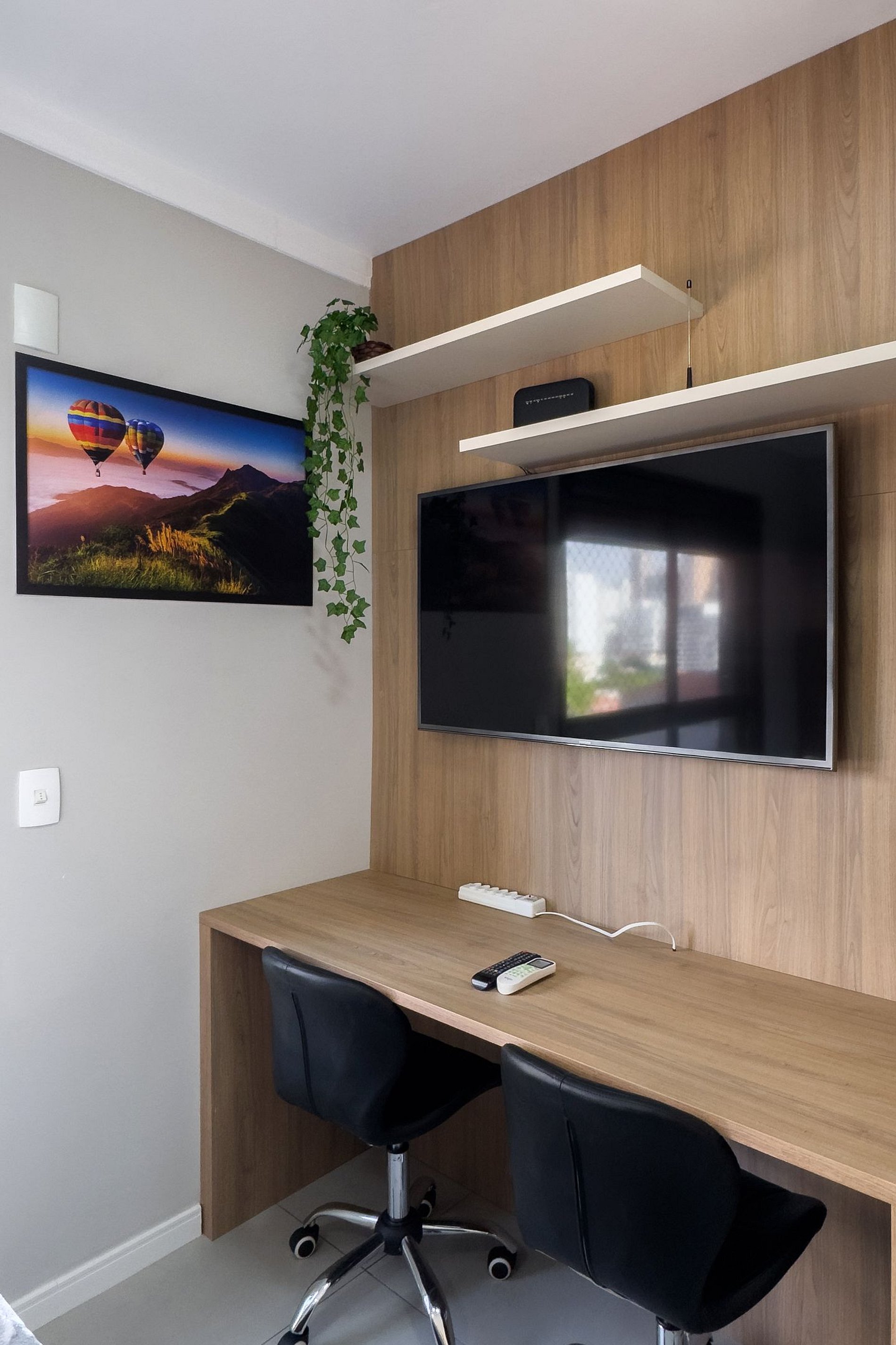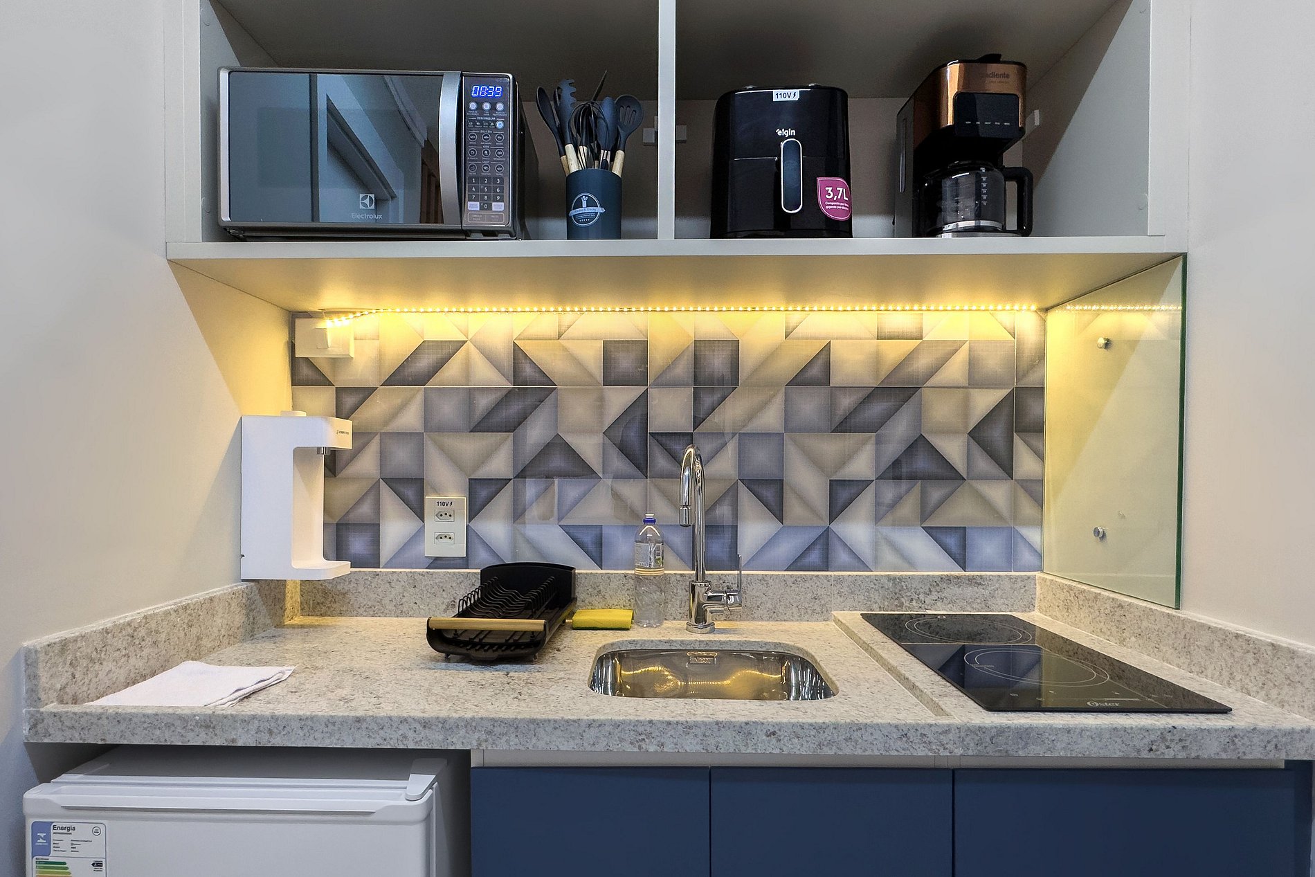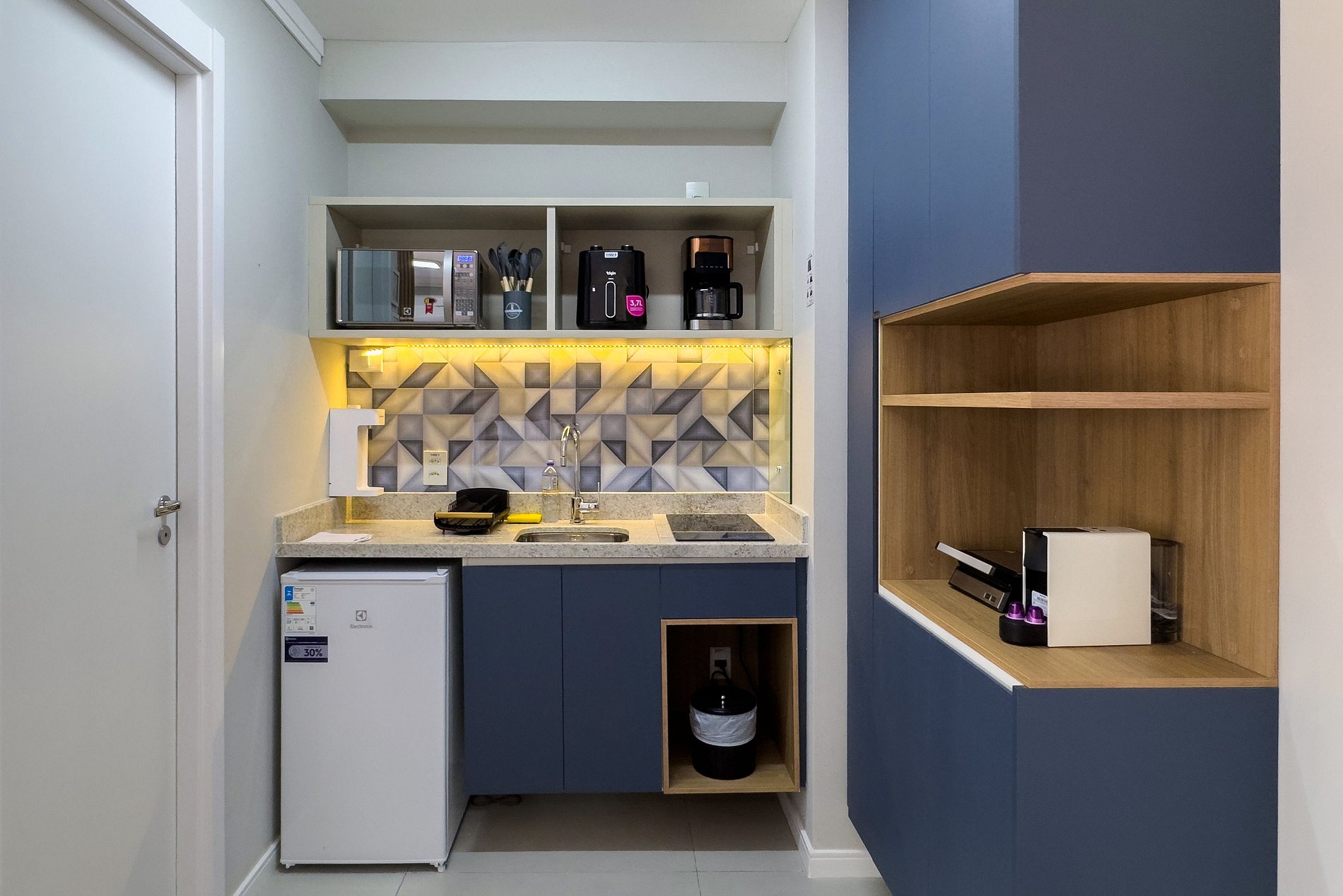 O apartamento possui 1 cama de casal Queen (1,58x1,98), e ar-condicionado. Cozinha completa com frigobar , freezer, micro-ondas, fogão de indução, jogo de talheres, cafeteira nespresso para home office, sanduicheira , filtro de agua potável, guarda-roupa, secador de cabelo, ferro de passar , Airfrier, mesa, 2 Cadeiras , Cortina Black out TV , banheiro com ótimo chuveiro (água quente e fria).O apartamento é automatizado com Alexa para maior conforto. Será fornecido um jogo de enxoval (lençóis, travesseiros, fronhas e toalhas de banho) por hóspede. Outras observações Ao redor do endereço R. Iperoig você encontrará uma variedade de opções para tornar sua estadia cada vez mais agradável;