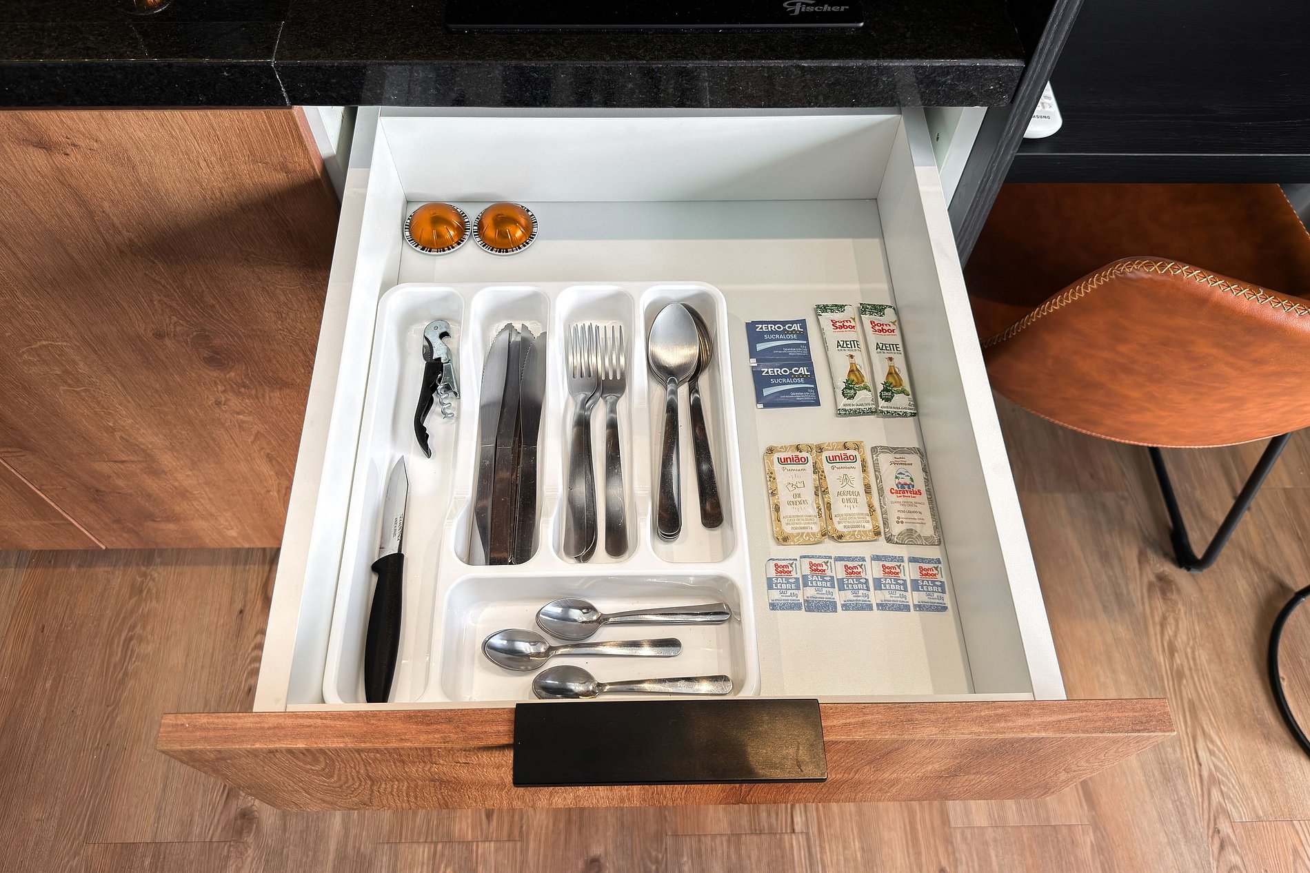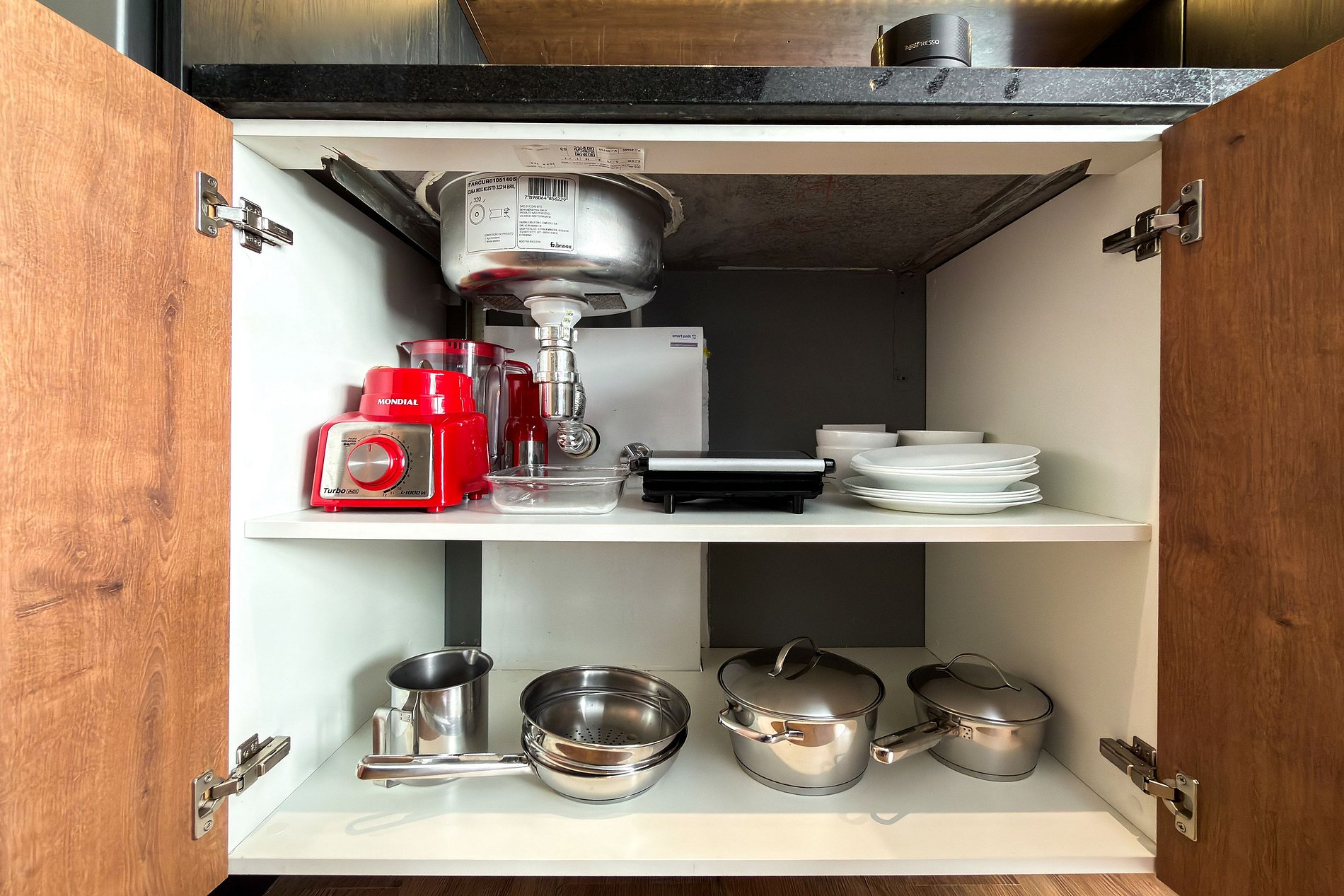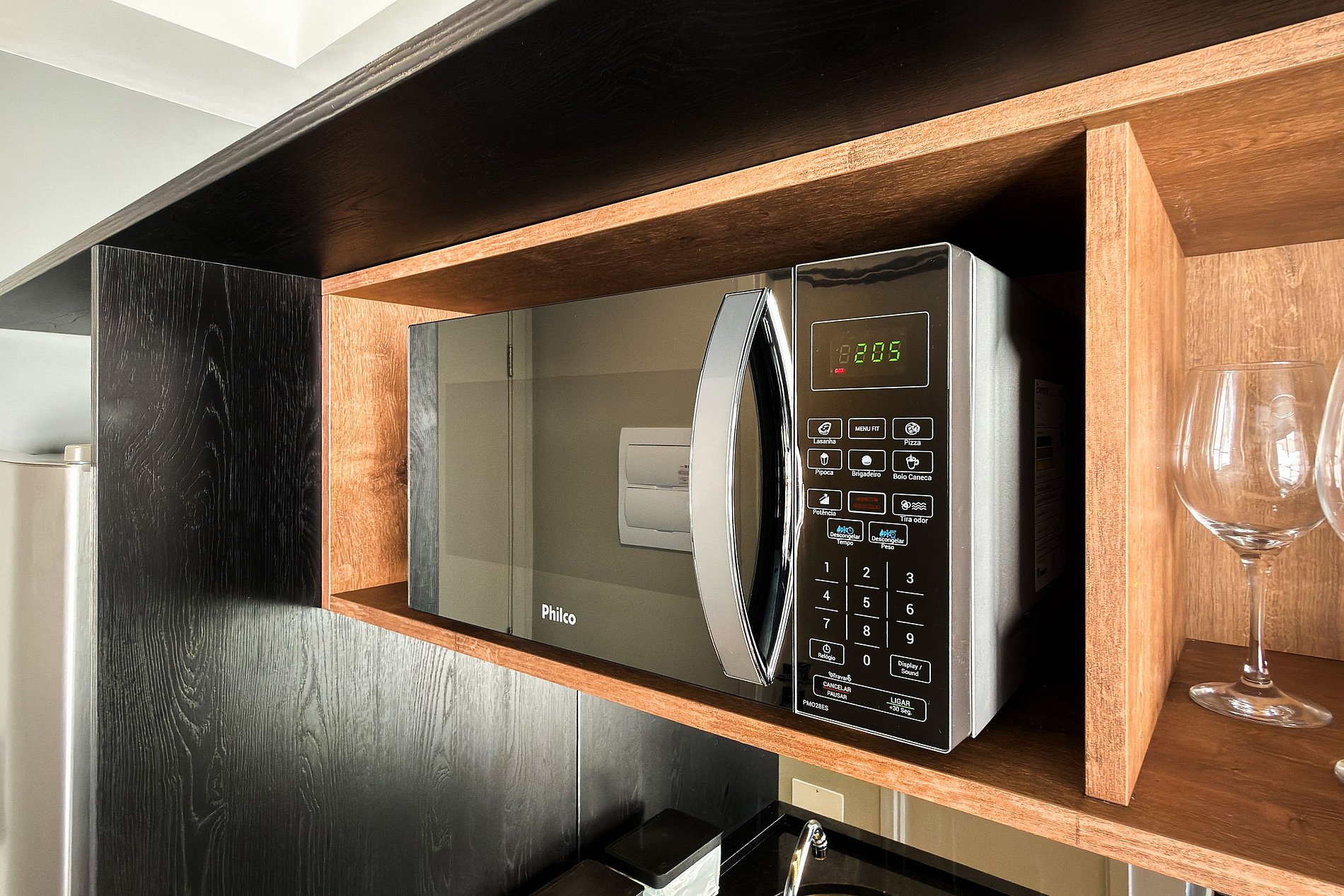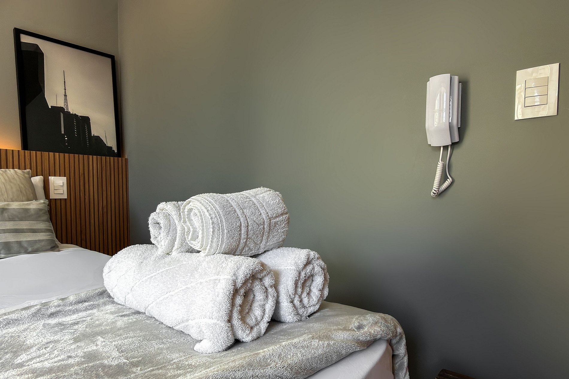 O apartamento possui 1 cama de casal padrão (1,38x1,88) Cozinha completa com geladeira, freezer, micro-ondas, fogão de, Dolce Gusto, bancada para home office, com 2 cadeiras guarda-roupa, secador de cabelo, ferro de passar, TV e banheiro com ótimo chuveiro (água quente e fria) e ar condicionado (quente/frio). Será fornecido um jogo de enxoval (lençóis, travesseiros, fronhas e toalhas de banho e rosto) por hóspede. Não há trocas durante a permanência.